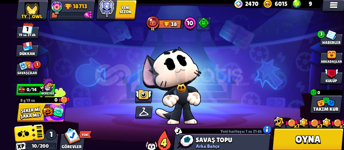 14874 güç puanı / 6015 altın / 9 elmas vardır