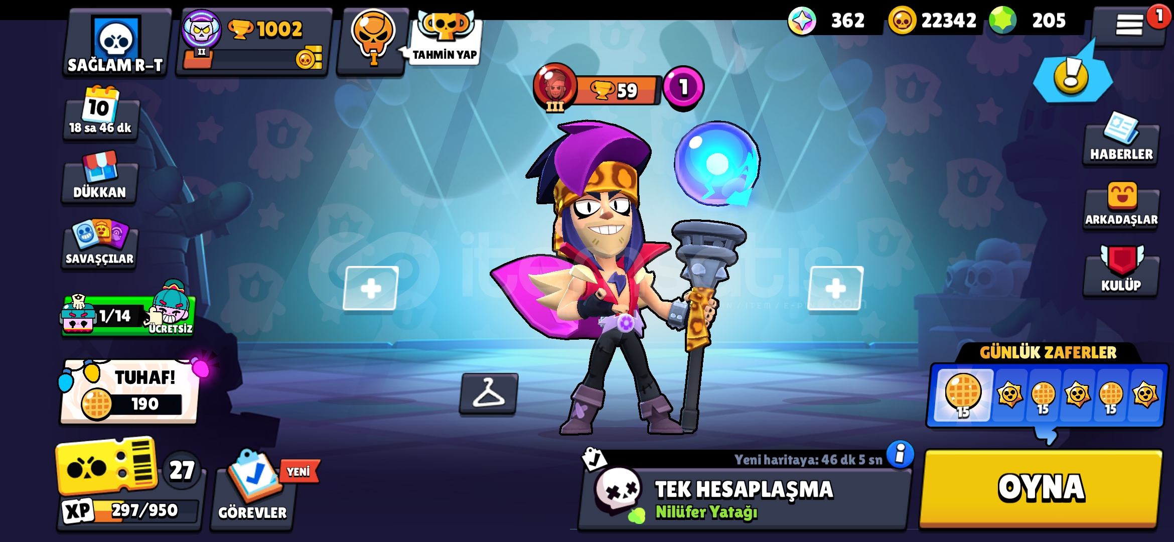 ●EFSANE SHOP'A HOŞGELDİNİZ.☠️●1002 KUPA🏆●18 KARAKTER👈●15 KOSTÜM🔥●205 ELMAS🟢●22342 ALTIN🟡●362 MÜCEVHER🟣●NOT: AKTİF OLMAMI BEKLEMENİZE GEREK YOK SATIN ALDIKTAN SONRA GELEN MESAJ̌LA ANINDA AKTİF OLURUM SATIN ALDIKTAN SONRA SÜPERCELL İD DEĞİŞECEKTİR.