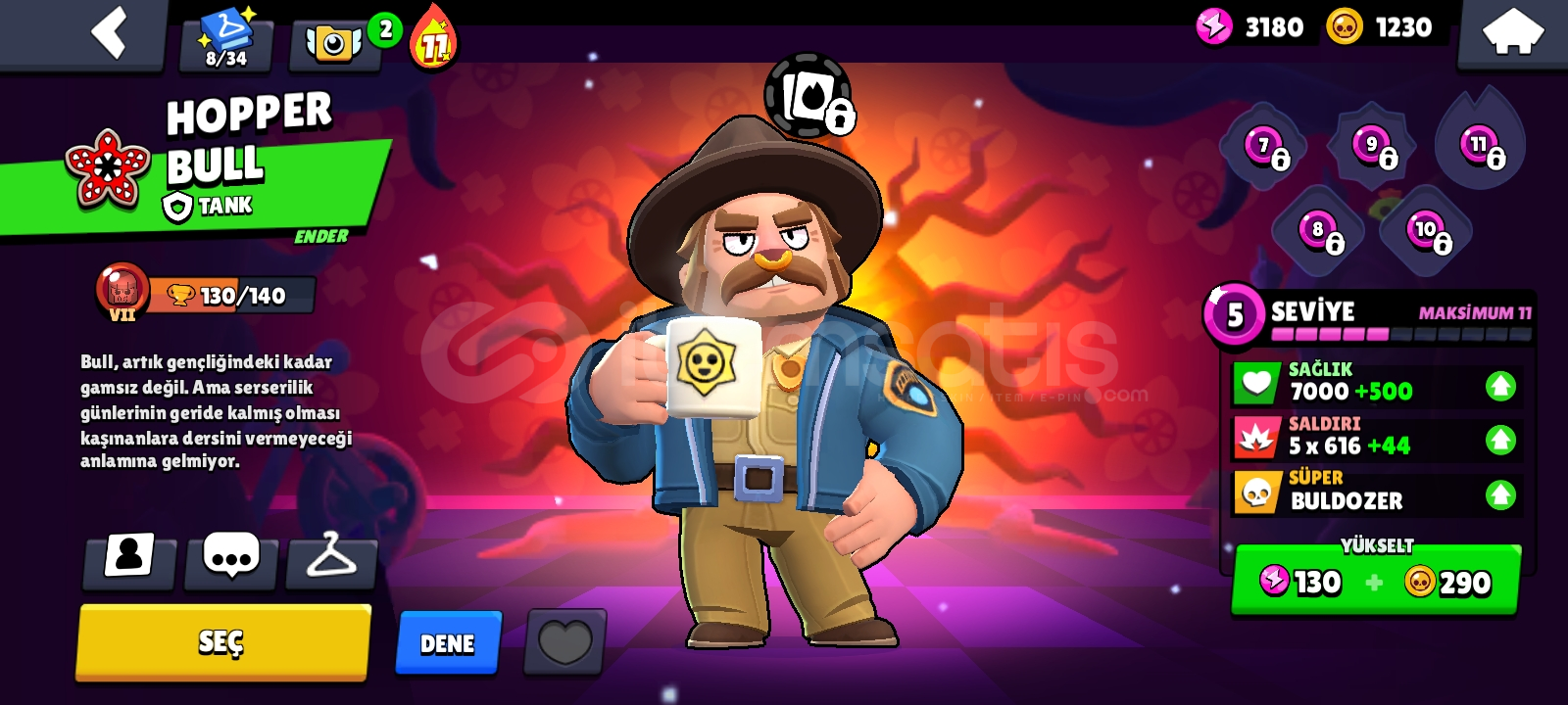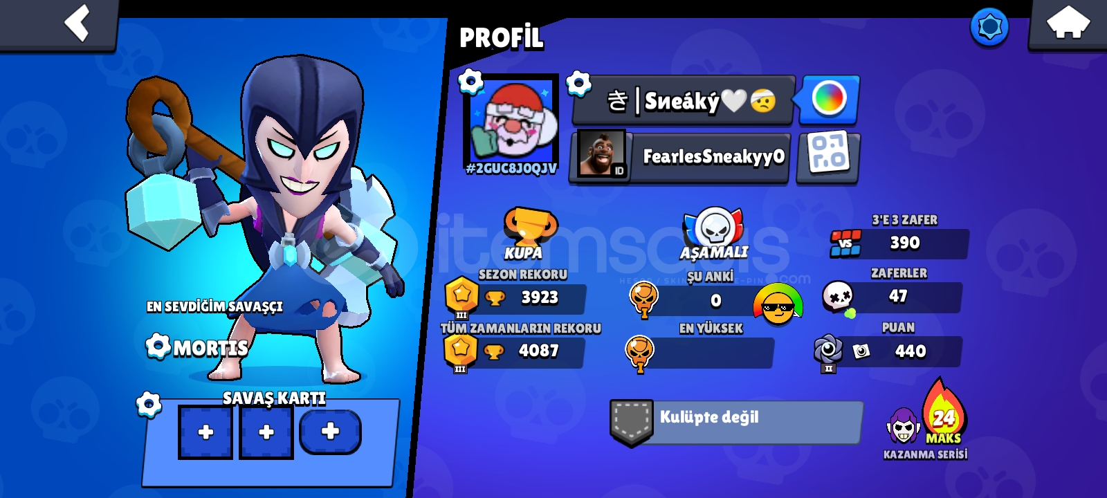 Hesapta 1 k mortis vardırKesmalık hesaptır4k kupası vardırYeni Bull kostümü vardır96 elmas mevcuttur4 k mucevher vardırAlana h.o