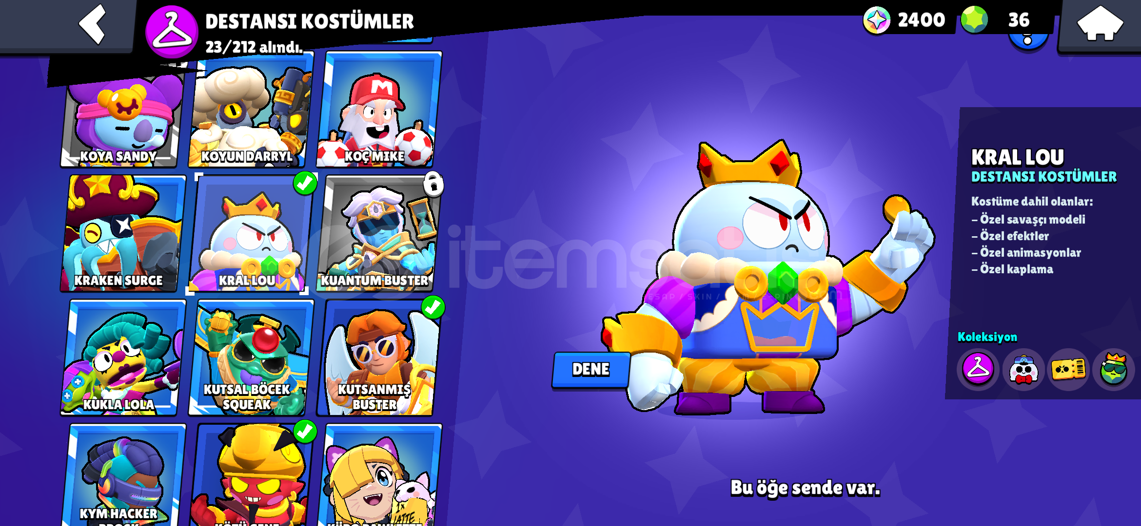 1.BS HESABI 23.121 KUPA2018 HESABI YILDIZ SHELLY VE BİNBAŞI ROSA4 ESKİ BP AÇILMIŞ KRAL LOU, ALTIN EL BELLE, NİNJA ASH, ÖFKELİ FANG VE 1.KADEME KOSTÜMLERİ12 ENDER, 20 SÜPER ENDER, 23 DESTANSI, 3 EFSANEVİ KOSTÜM 63 KARAKTER VARDIRHESABİN YANİNDA 8K CR HESABİ VARDİR SAĞLAM HESAPTIR 2.BS HESABI 41968 KUPA95 KARAKTER 87 ENDER, 81 SÜPER ENDER, 75 DESTANSI, 7 GİZEMLİ, 5 EFSANEVİ, 1 HİPER...