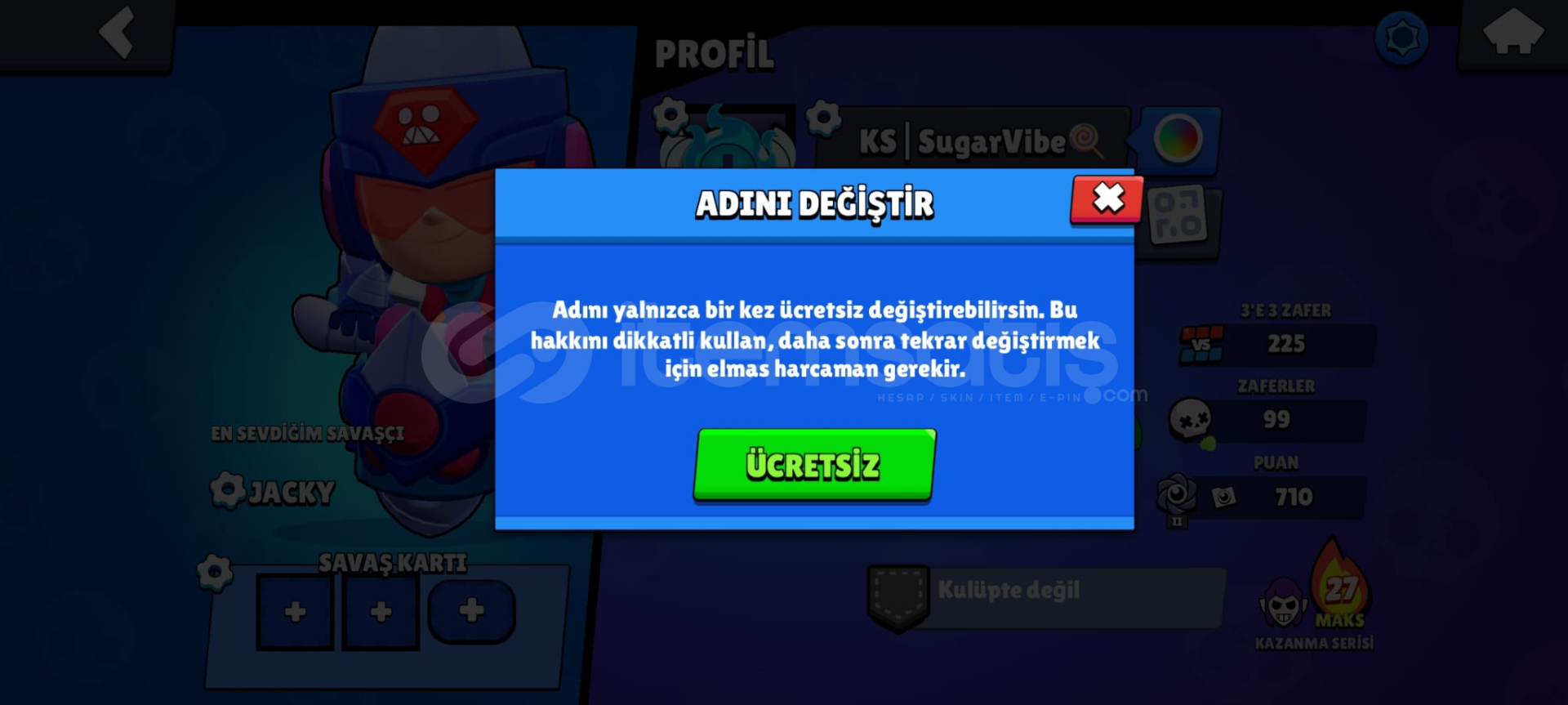Hesapta 35 Karakter MevcutturGüzel Kostümler BulunurÜcretsiz İsim Değiştirme Hakkı VarKupa Kasmalık Güzel Hesaptır Alana Hayırlı Olsun