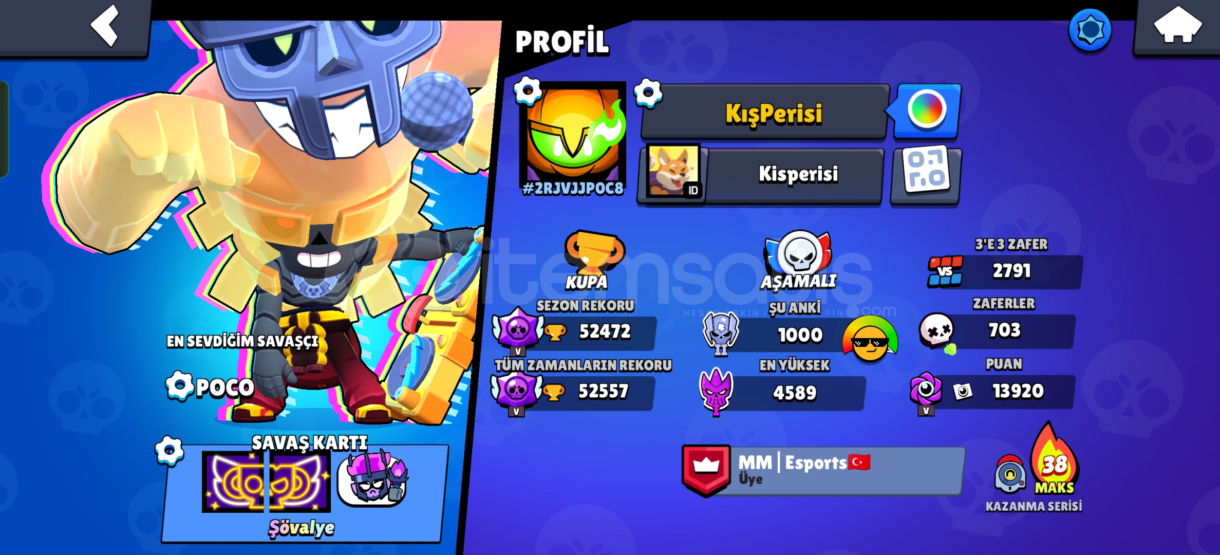 Hesabın ismi ücretsiz değişir.Hesabın id ismi ücretsiz değişir.2 kere brawl pâss plus açılmıştır. (800₺)İlanı aldığınız zaman hesabın gmail ve şifresi Otomatik Olarak size gelecektir.Hesabın takım sohbeti açıktır.Hesap teslim edildikten sonra hesaptan çıkış videosu atılır.Hesabı...