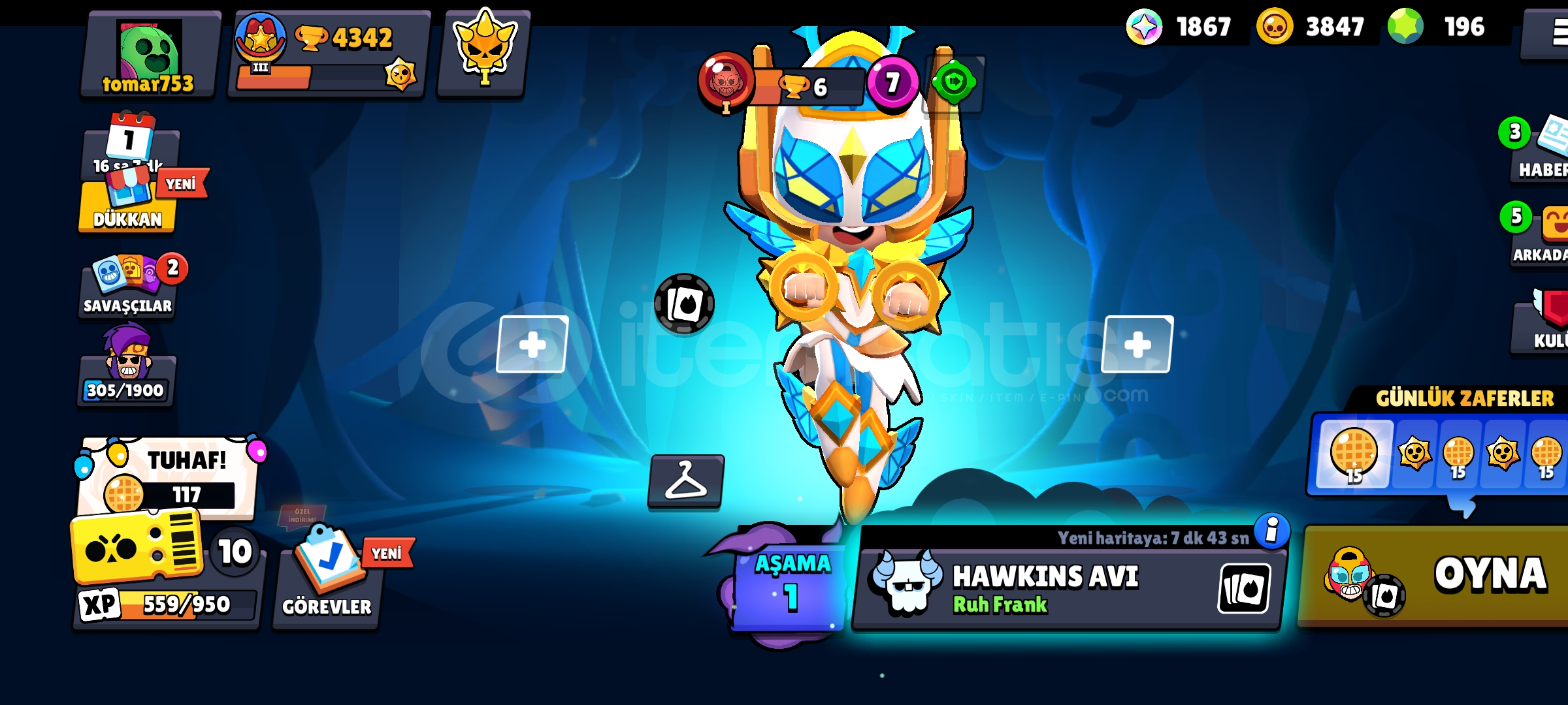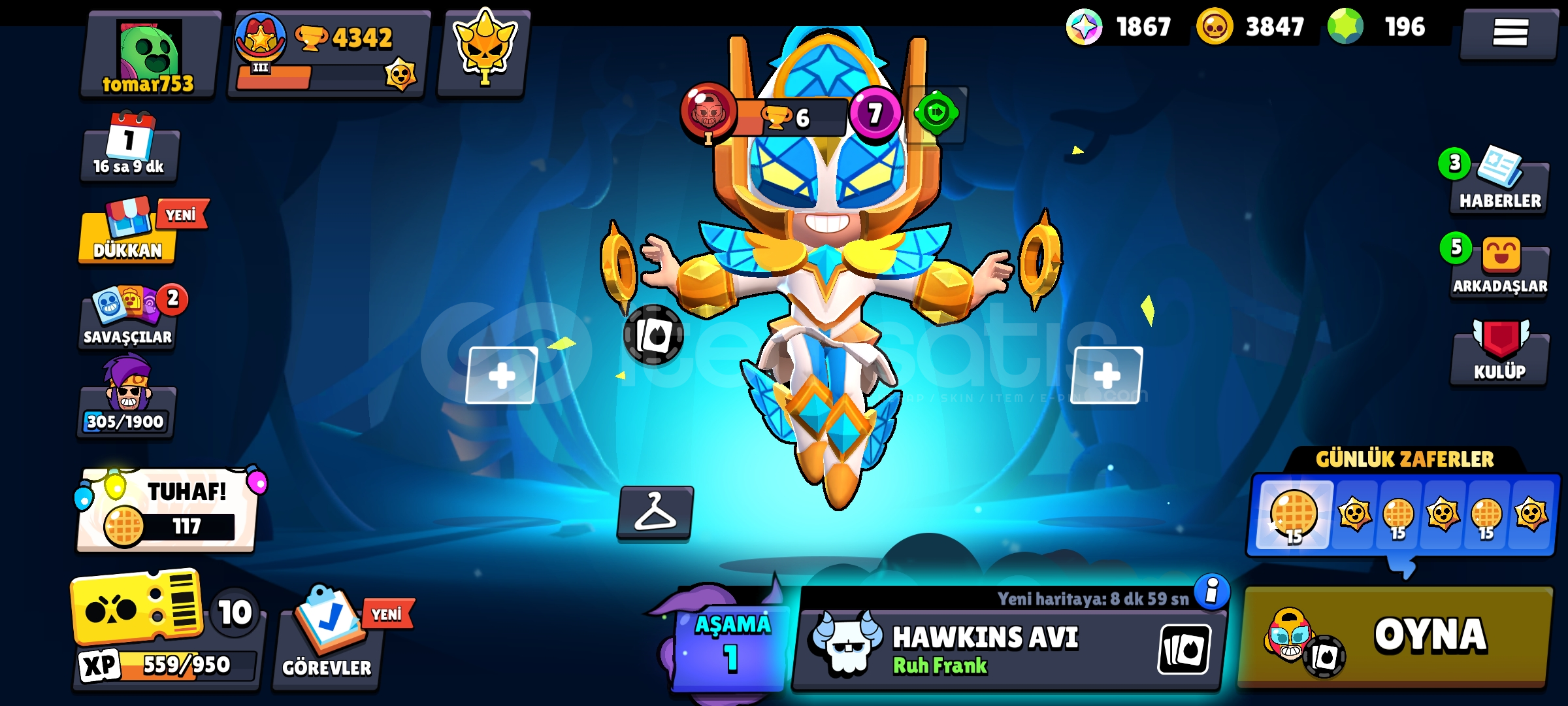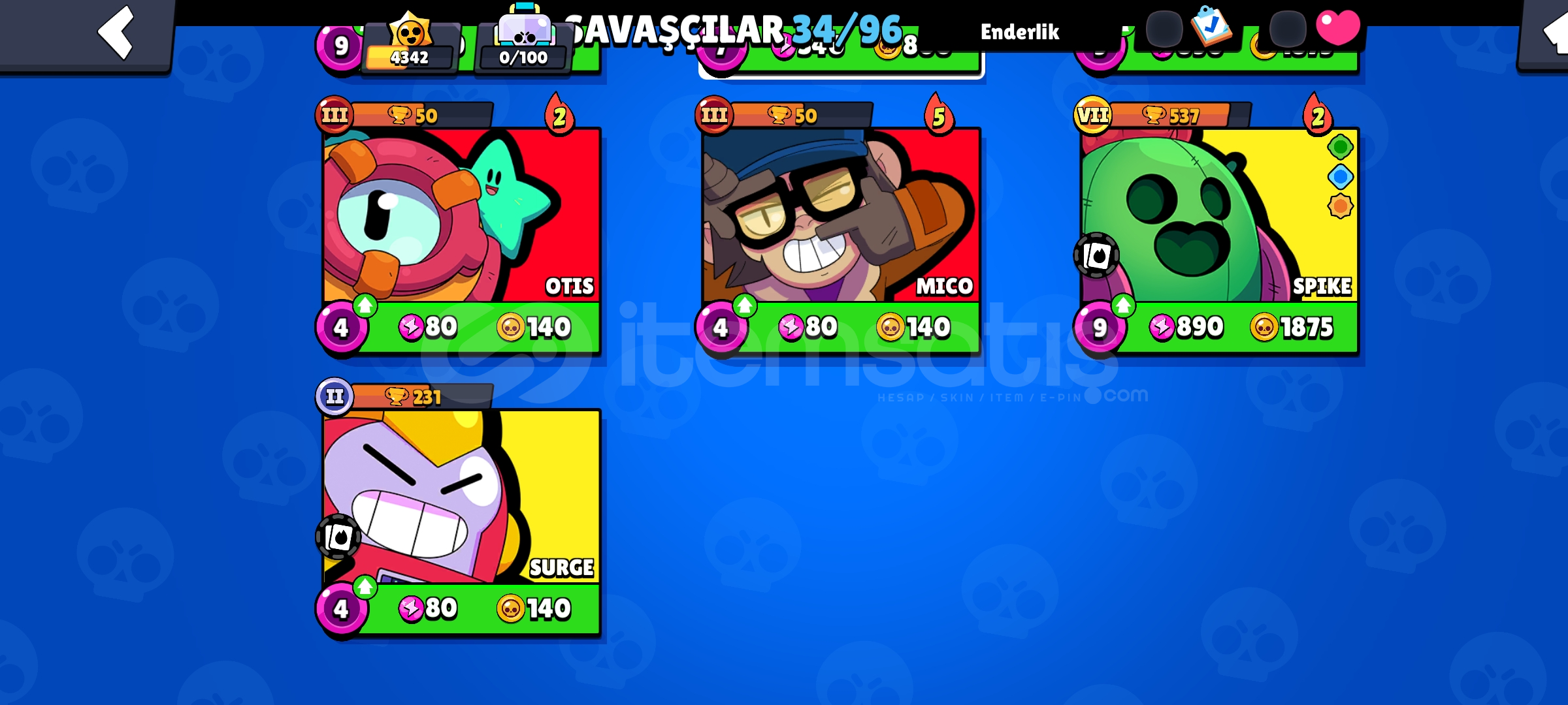Hesabımızda 34 karakter 4300 kupa ve 24 kostüm vardır ucuzdur ciddi alıcılar yazsın
