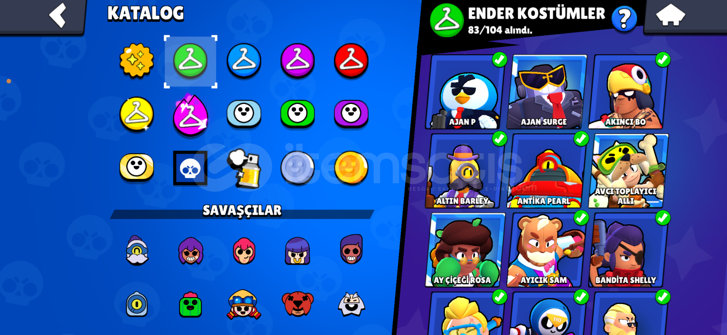 Yıldız Shelly ve bunun gibi biir çok değerli kostüm mevcuttur55k kupadadırMeka crowların 3’üde mevcutMeka piper 2 tanesi mevcutMatcherino destek pinlerinin 2’side mevcutSon şampiyona maçında dağıtılan janet pin mevcutBuzz Işıkyılı pinleri mevcutturKAÇIRMAYIN DERİM ALANA HAYIRLI OLSUN.HESAP KORUMASI VARDIR FAKAT KİMLİK ONAYLI SATICIYIZ HERHANGİ BİR GİR...