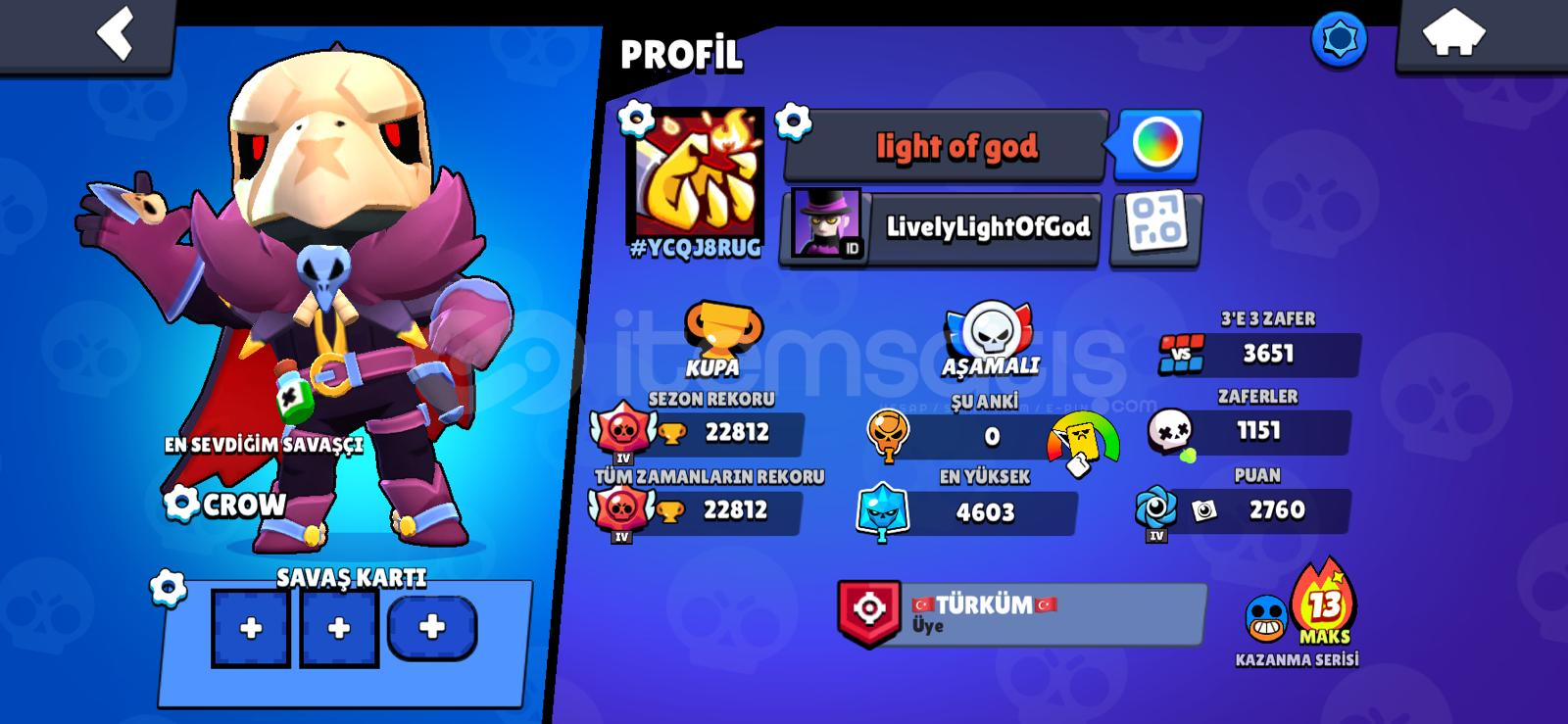 Bu hesap güçlü kupaları, yüksek zafer sayıları ve uzun geçmişi ile aktif oyuncuların hayal ettiği hesap profilini sunar. Benzersiz geçmişi sayesinde alıcıların dikkatini çeker ve satış ilanlarında öne çıkar. Hesap.com.tr