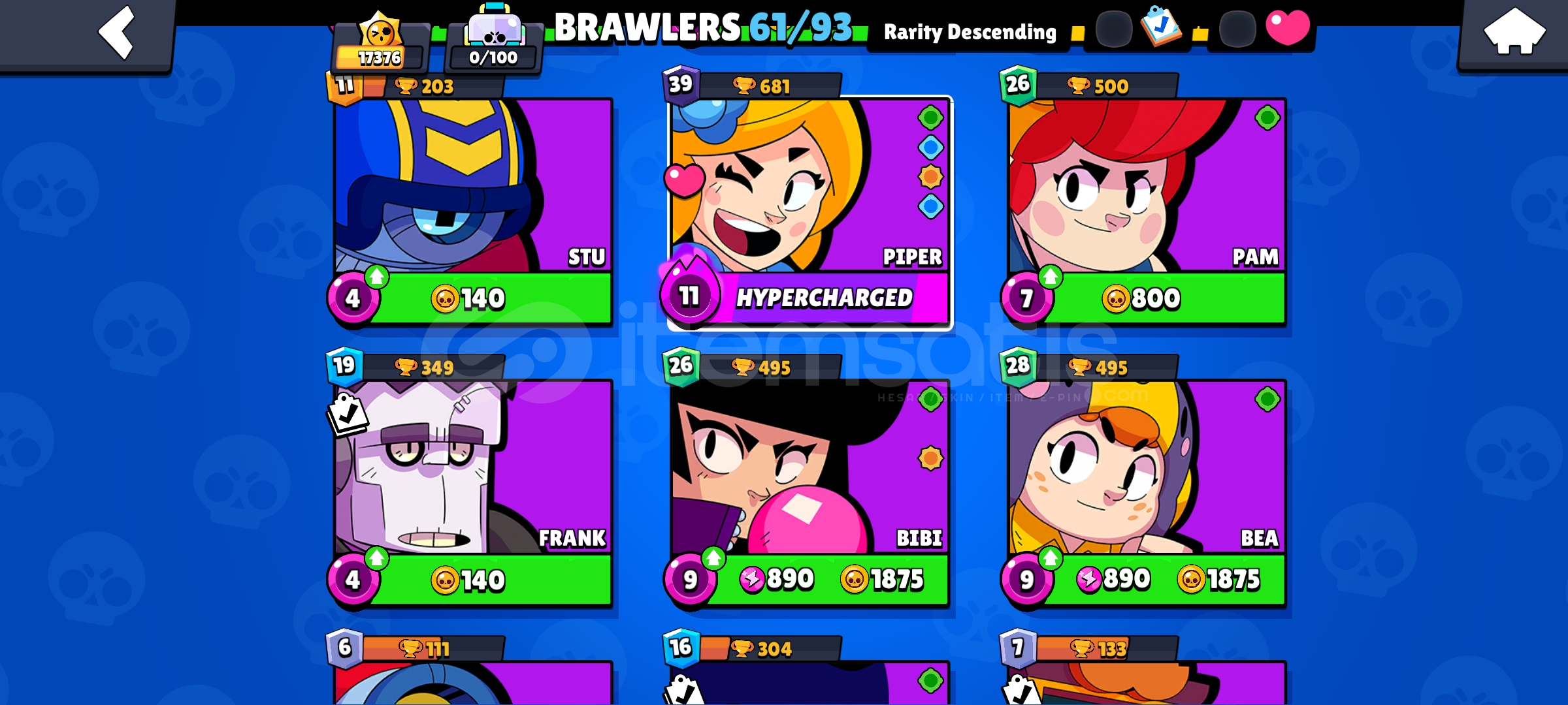 hesapta 65 kostüm ve 61 karakter var, karakterlerin neredeyse tamamı en az 7 seviye ve bayağı 10-11 seviye var, piper ve shelly hypercharge var ancak 11 seviye yapmadığım için aktif olmayan hyperchargeler de var,mail değişir, satın alım yapıldıktan sonra sorun çıkarsa destek çıkılır