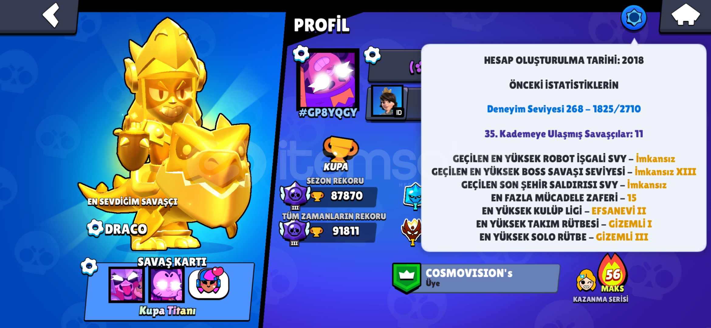 Kesinlikle tavsiye etmiyorum dediği dediğine tutmuyor Brawl Stars hesabı aldım 1g sonra hesap geri çekildi