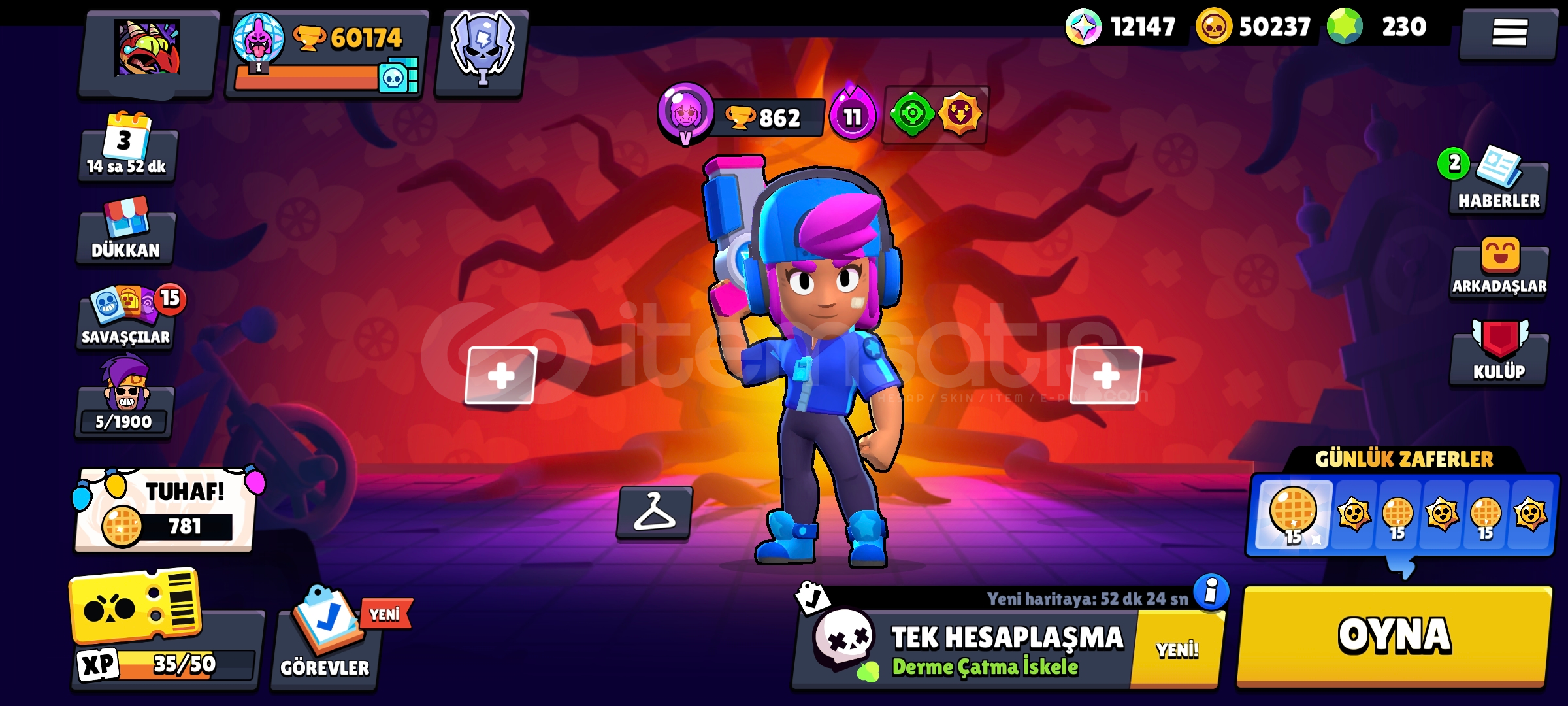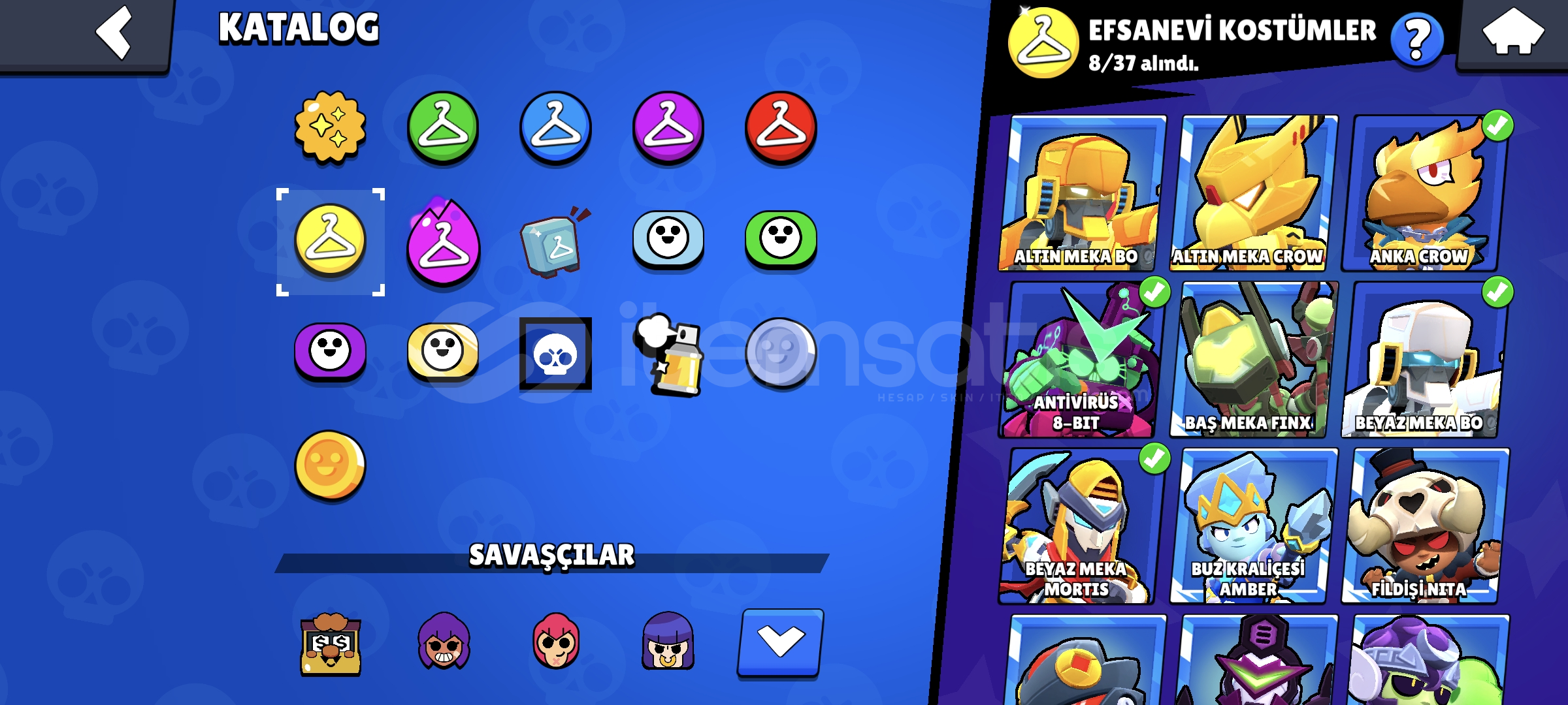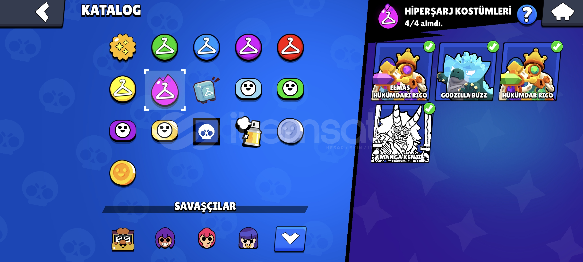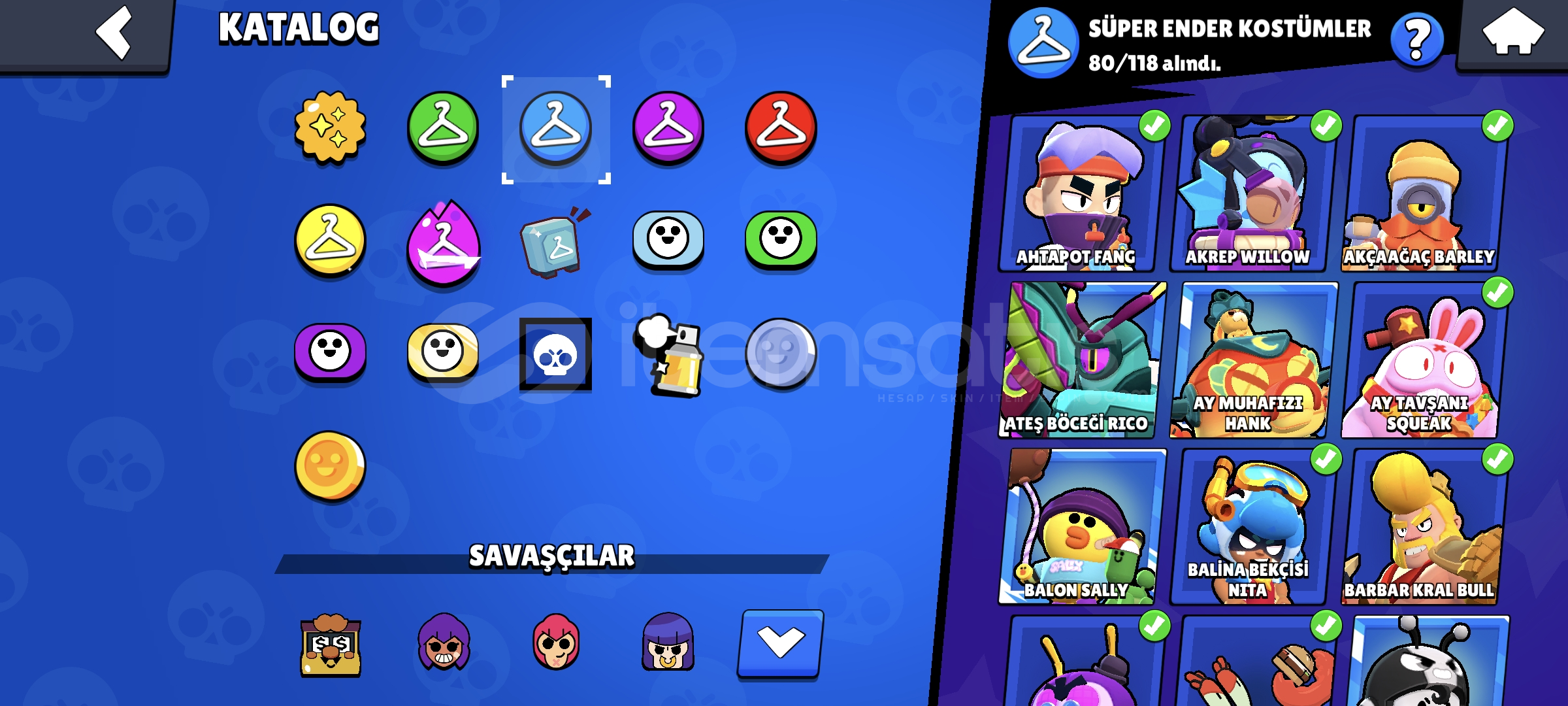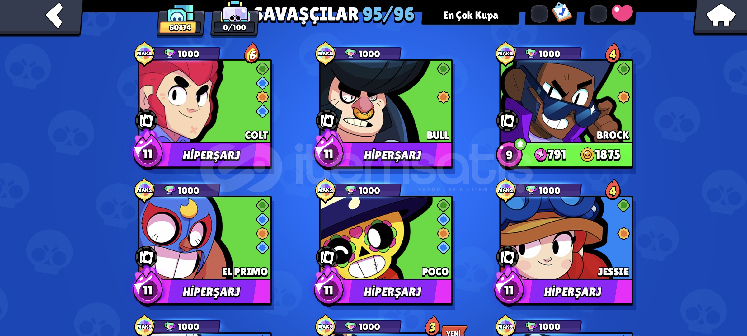 !!|SİTENİN EN ESKİ VE EN DEĞERLİ KOSTÜMÜNE SAHİP HESABI|!!BU HESABI NEDEN ALMALISINIZHesap 60K KupadırHesapta 95 Karakter Vardır12K Mücevher 50K Altın ve 230 Elmas Vardır; Bu kadar Fazla İtemle Hayalinizdeki tüm kostümleri alabilirsiniz!!!!35 Tane Max Rank Vardır!!!!36 Max Level Vardır 30 Tanesi Hiperşarjlı!!Hesapta 20K 3v3 Vardır (3v3 Canavarı Hesap)Mars Şöhretli Hesaptır...
