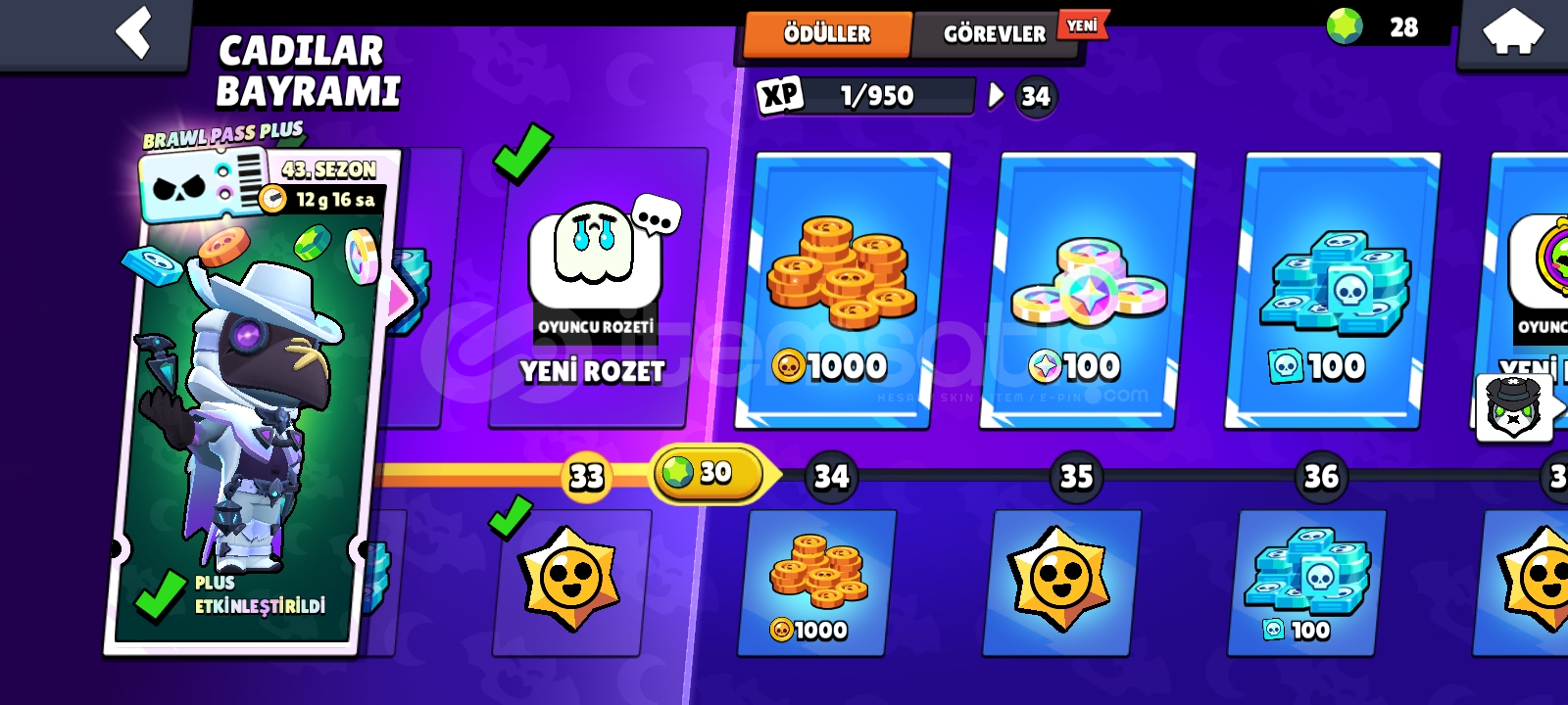 Hesapta Brawl Pass Açıktır Lakin Fullenmemiştir. Hesap başka maile aktarılacak olup, bağlı olduğu mail ...