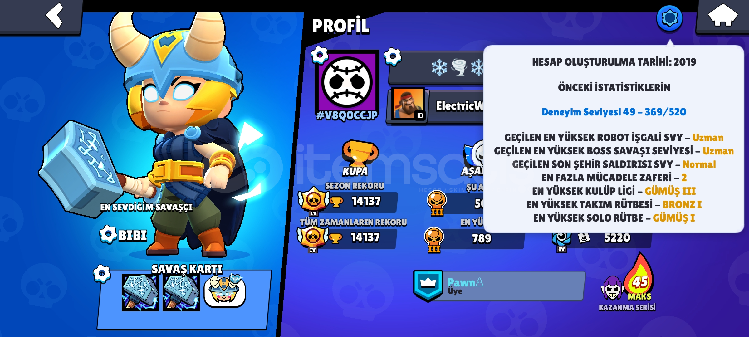 Güzel hesap mortis sevenler için1215 kupaya çıkmış gibi1002 kupa MortisVirüs CharlieAlıcıya hayırlı olsun.Bana gmail verip devir işlemlerini hallediyorum.