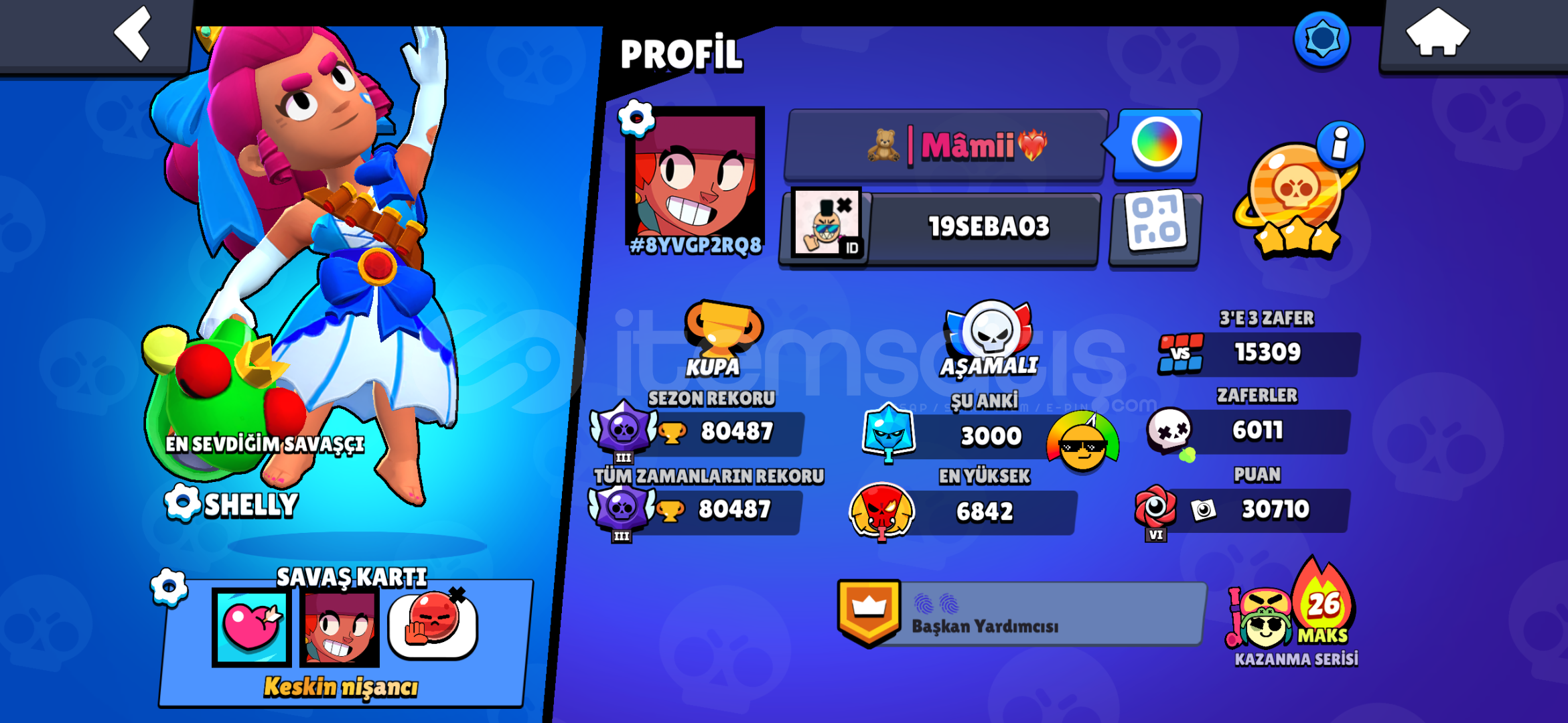 Merhaba Arkadaşlar Hesap Satürn 3 Şöhretinde GÜNEŞE 3.7K KALDI 2019 Kurulumlu Efsanevi Rankına Ulaşmıştır Minanın Hiperşarj Paketi Vardır Dynamikenin Pro Passi Açılıp Fulldur 17 Ünvan Vardır 45 Adet 1k kupalı Karakter VarHesap Sitenin En Nadir Hesaplarından18-19 Civarı Eski Bpp Kostümü Mevcuttur Fotolarda MevcutturBunlar;Prenses ShellySilahşör ColtB-800 BullSüp...
