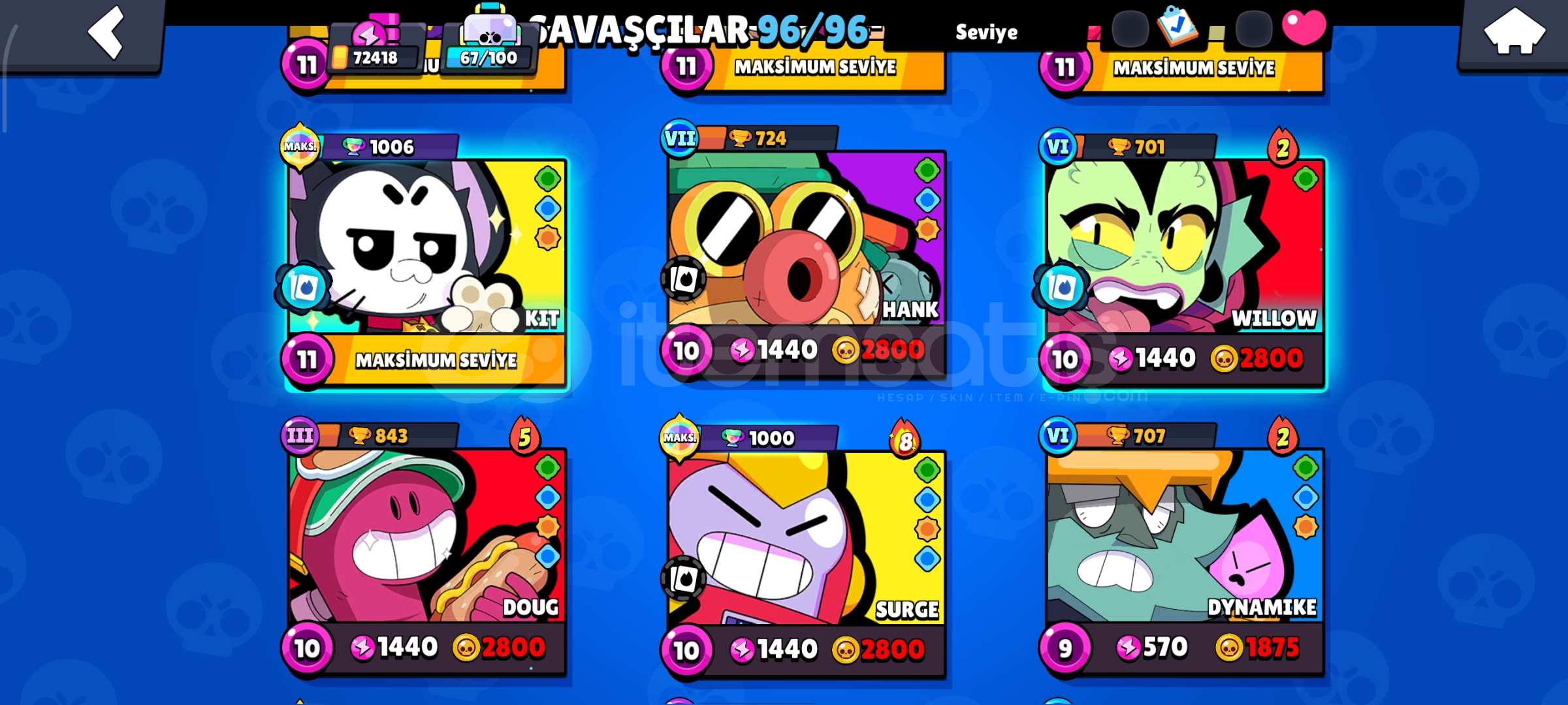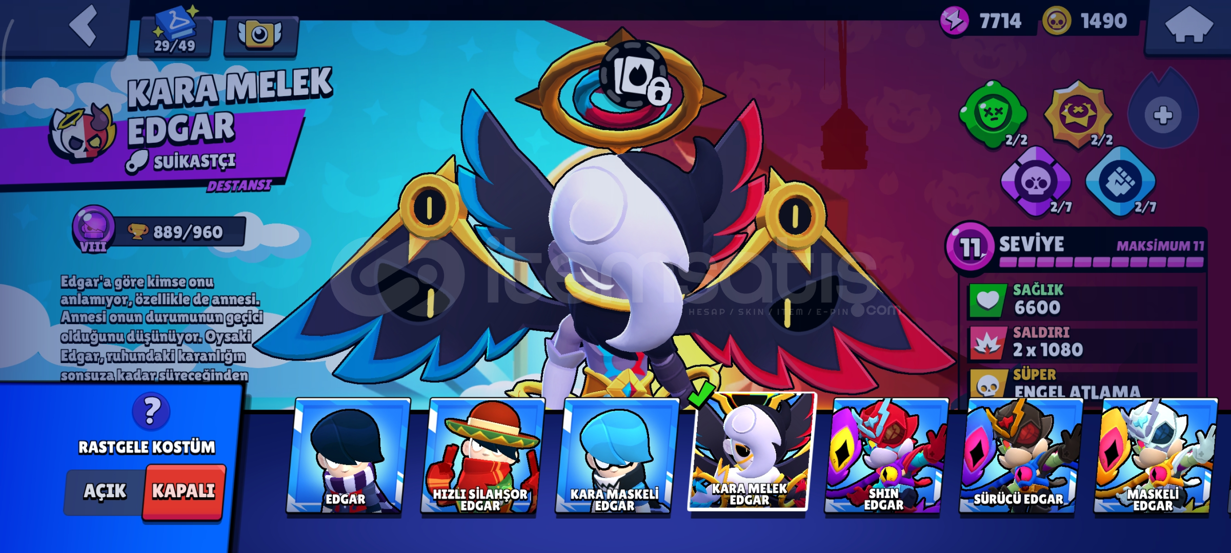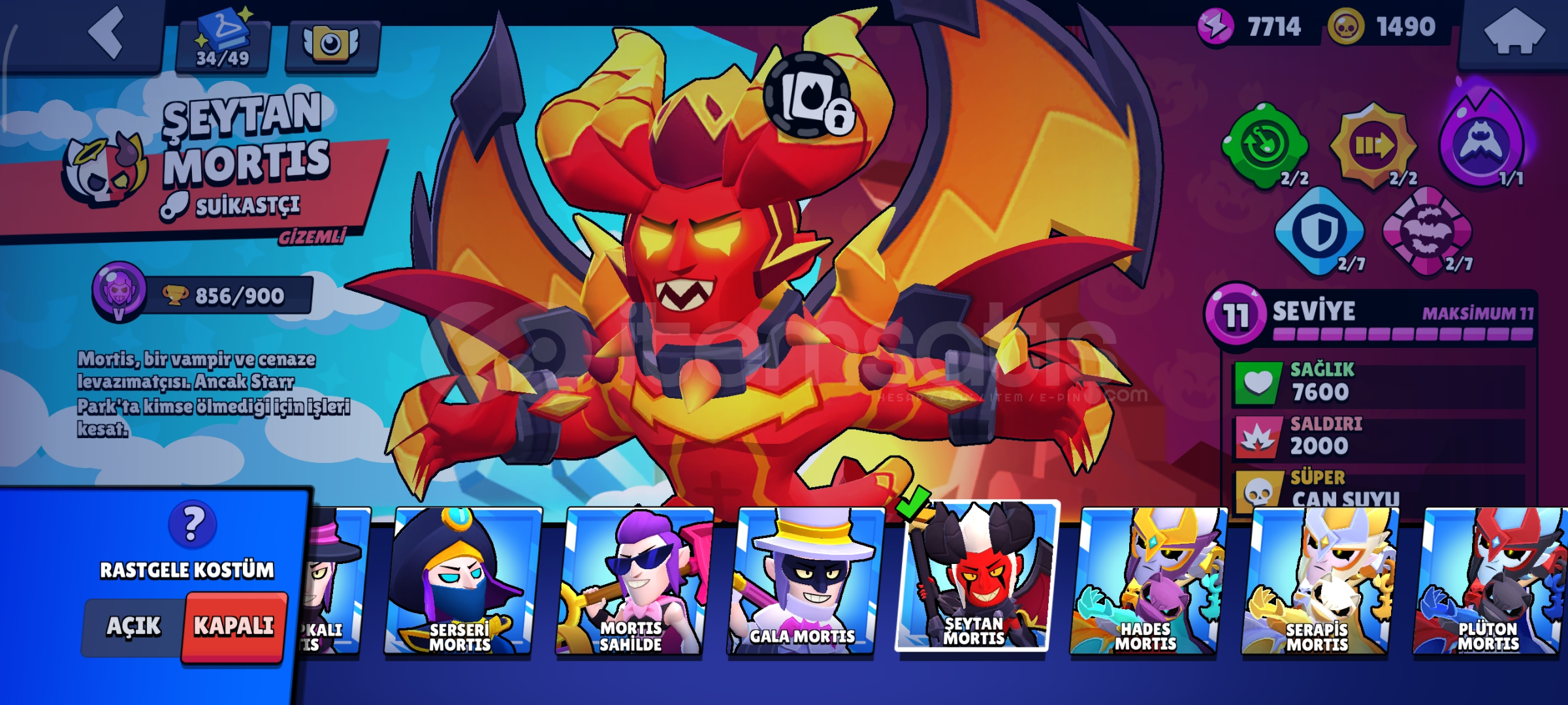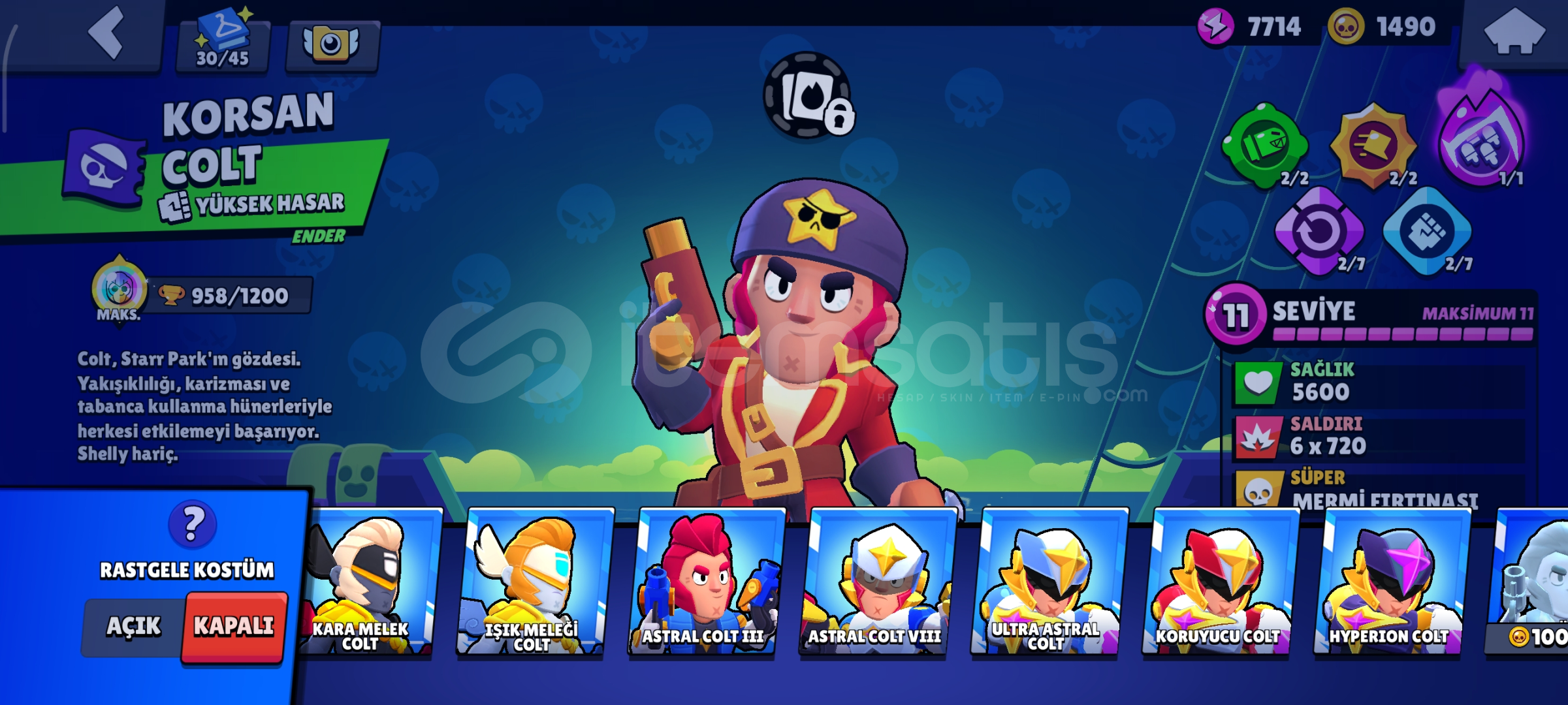 Çocukluk hesabım bol kostümlü nadir hesap Max karakter 30 hiperli Max seviye 36 eklentilerinde açık