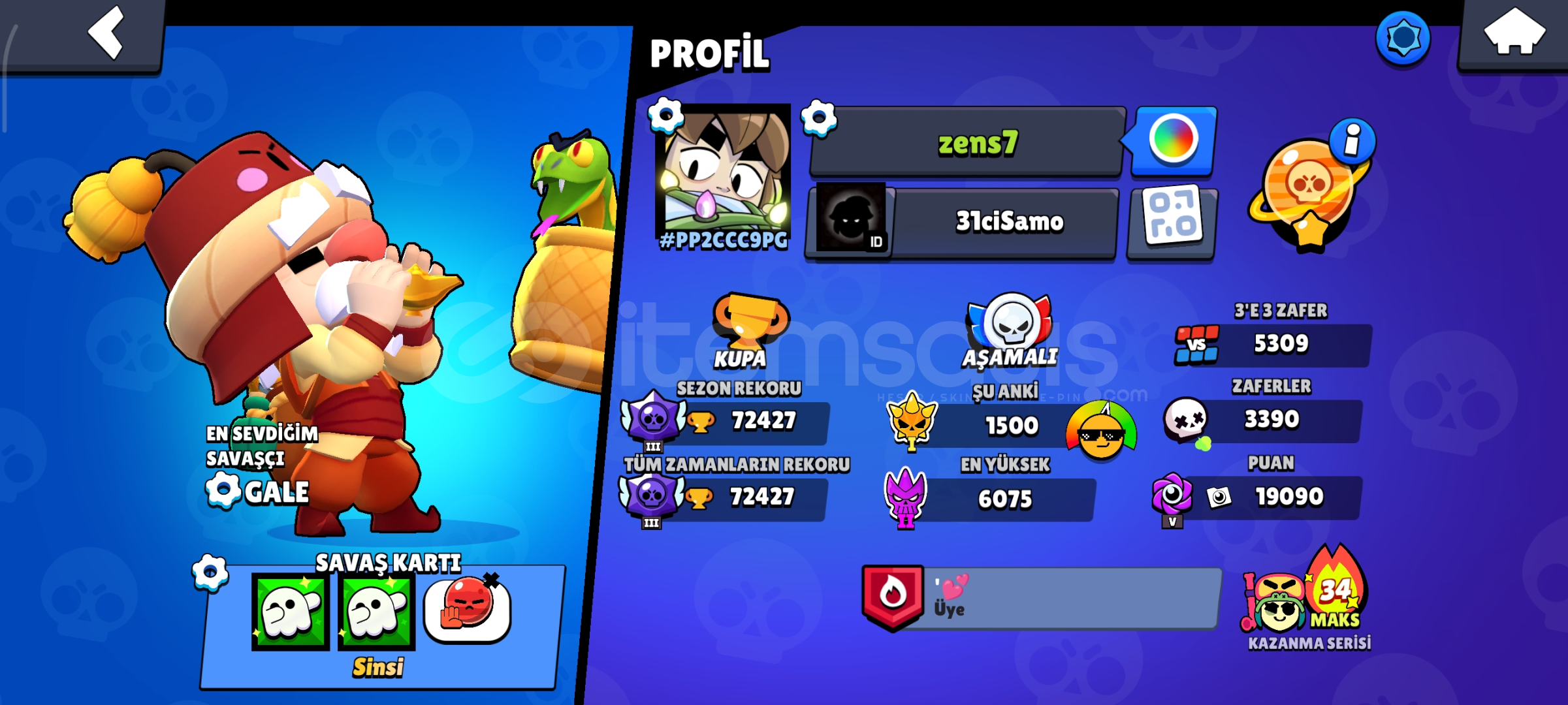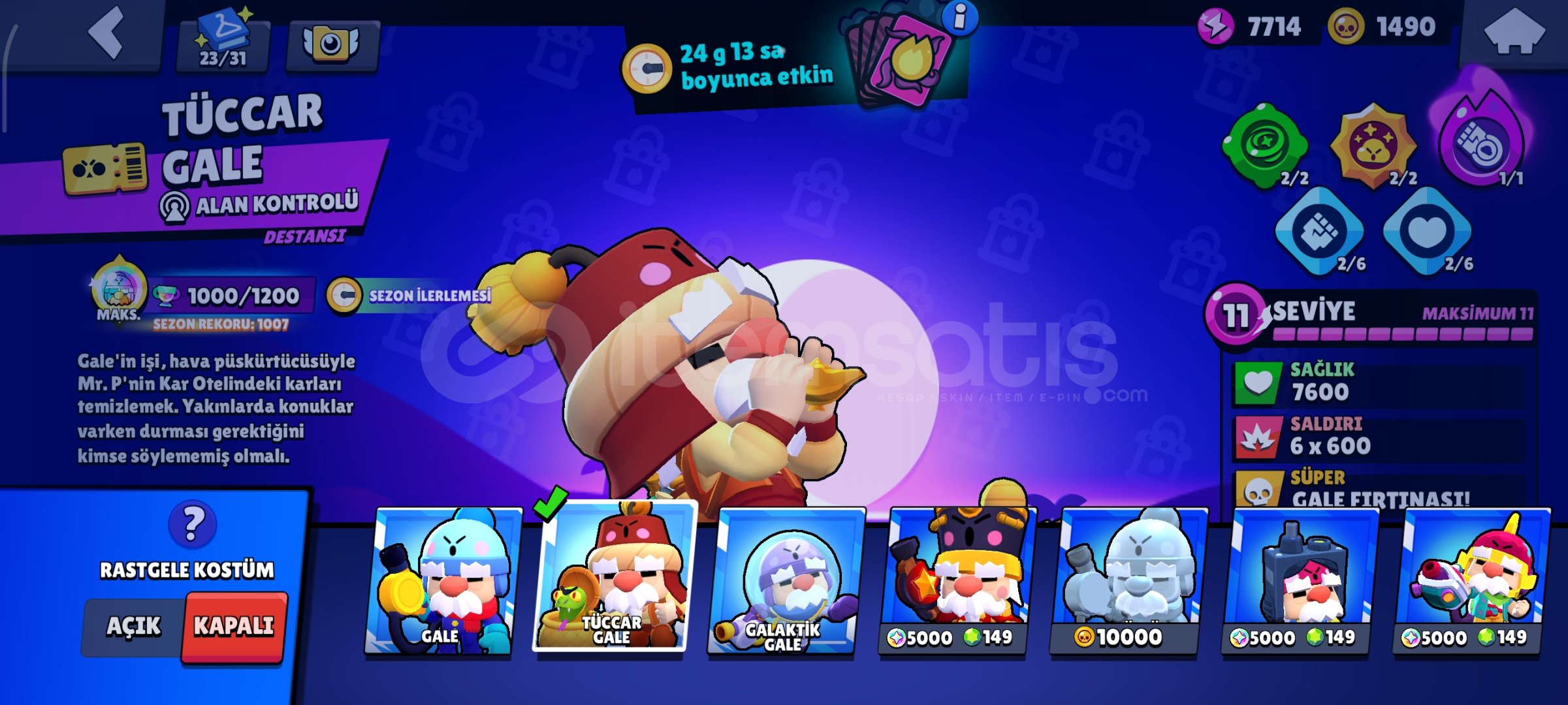 Çocukluk hesabım bol kostümlü nadir hesap Max karakter 30 hiperli Max seviye 36 eklentilerinde açık89 nadir kostüm75 Süper Ender kostüm 96 destansı kostüm 8 gizmeli kostüm 6 efsanevi kostüm8 hiperli kostum Satürn şöhreti 1 bitmeye yakın Bol nadir emotlu Şahsıma ait hesap En nadir olan sezon 1 pas tucccar hale kostümü