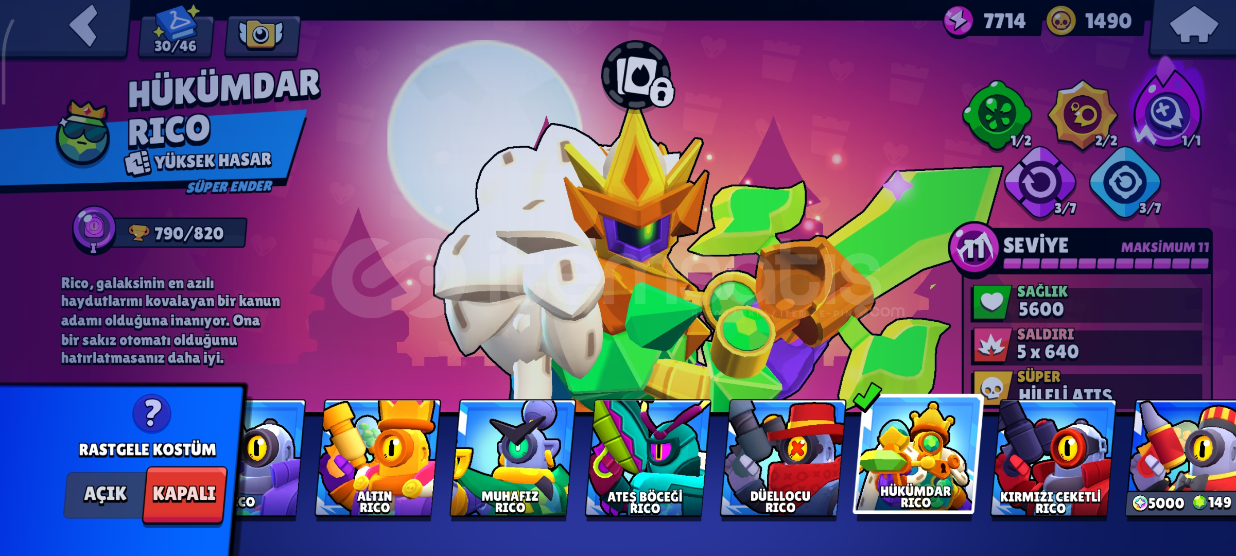 Çocukluk hesabım bol kostümlü nadir hesap Max karakter 30 hiperli Max seviye 36 eklentilerinde açık89 nadir kost&uum...