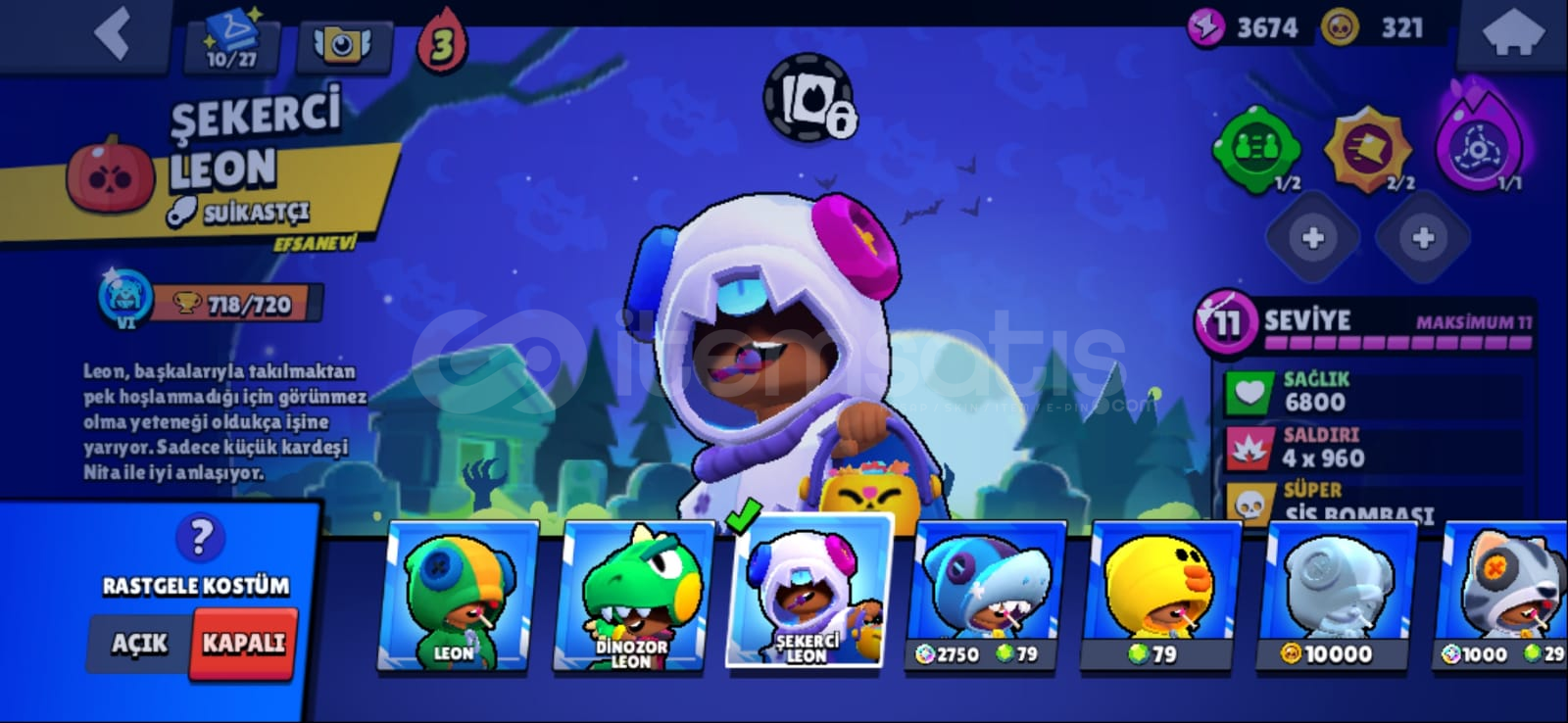 Hesapta retro skinleri bulunmaktadır ve cadılar bayramı noel kostümleri gibi skinlerde vardır.Hesaptaki skin sayısı...