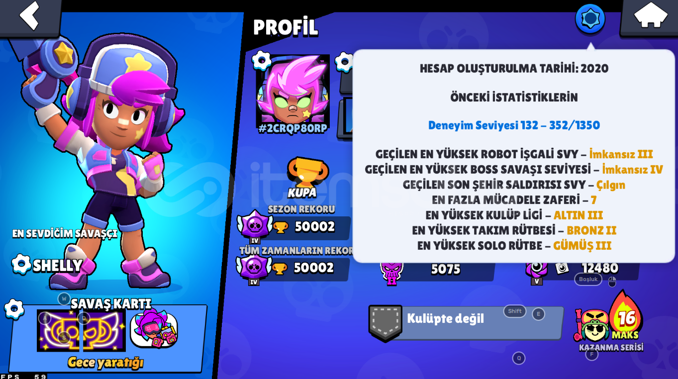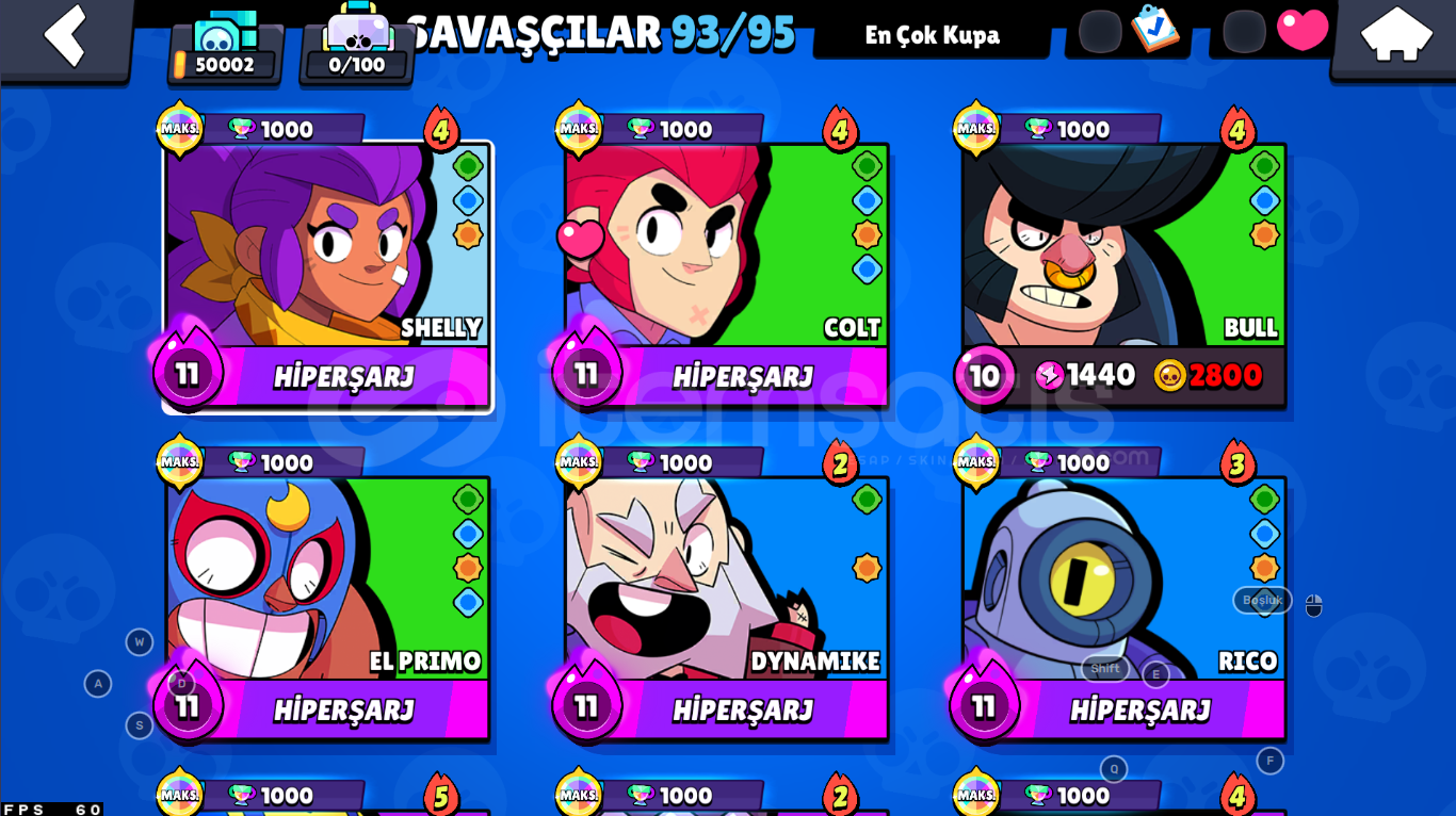 2020⭐50.000 Kupa Bs 93Karakter 186K Cr 5500kupa⭐