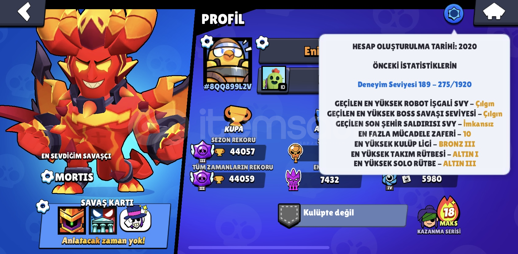 • 2020 hesabı•44k•80 karakter•131 kostüm•hesabın ilk sahibi benim•çok değerli kostümler vardır•75 elmas✨ Hesap Detayları & Güvenlik Bilgileri 🔹 Telefon Doğrulama: Hesapta telefon numarası bağlı değildir. 🔹 Erişim Bilgileri: Satın aldığınızda, hesabın orijinal e-posta adresi ve şifresi tarafınıza iletilecektir...