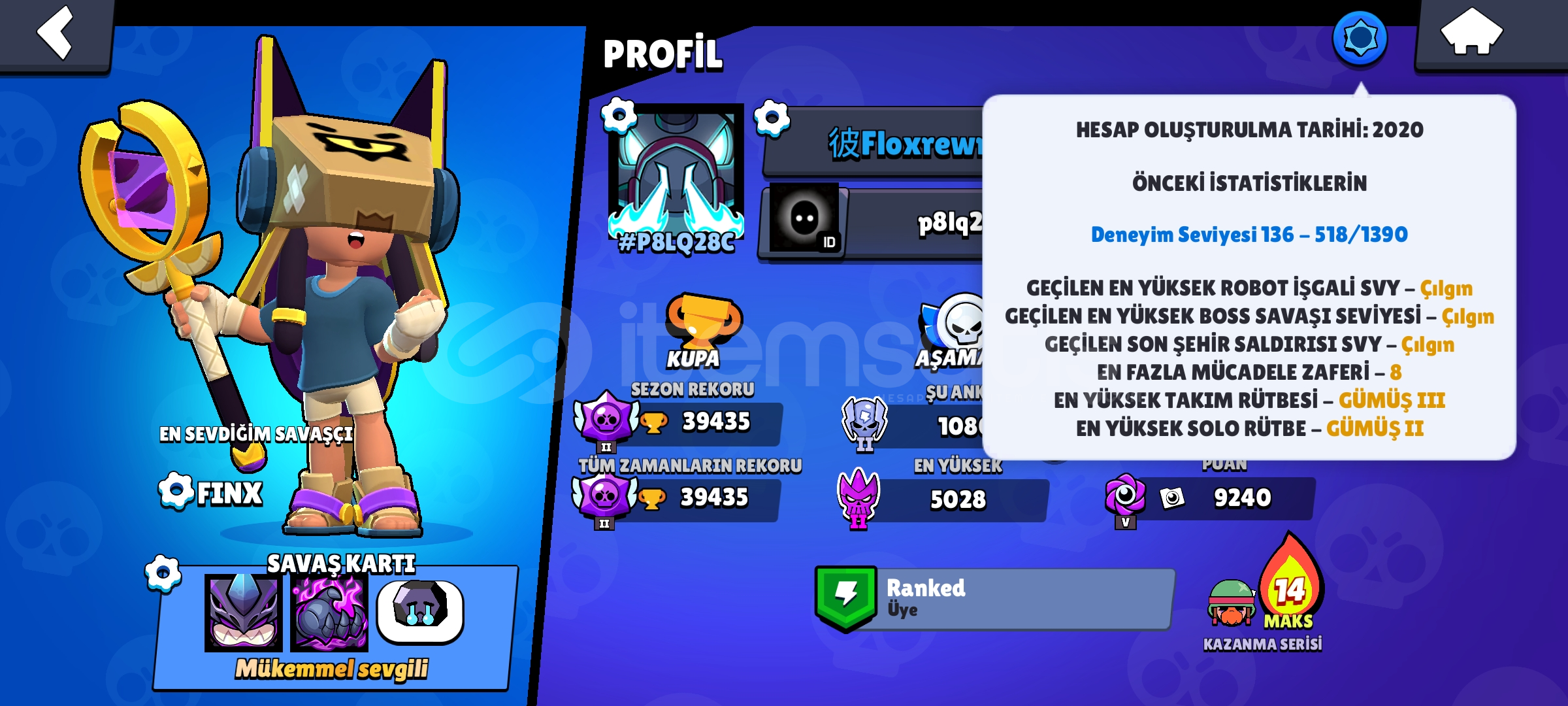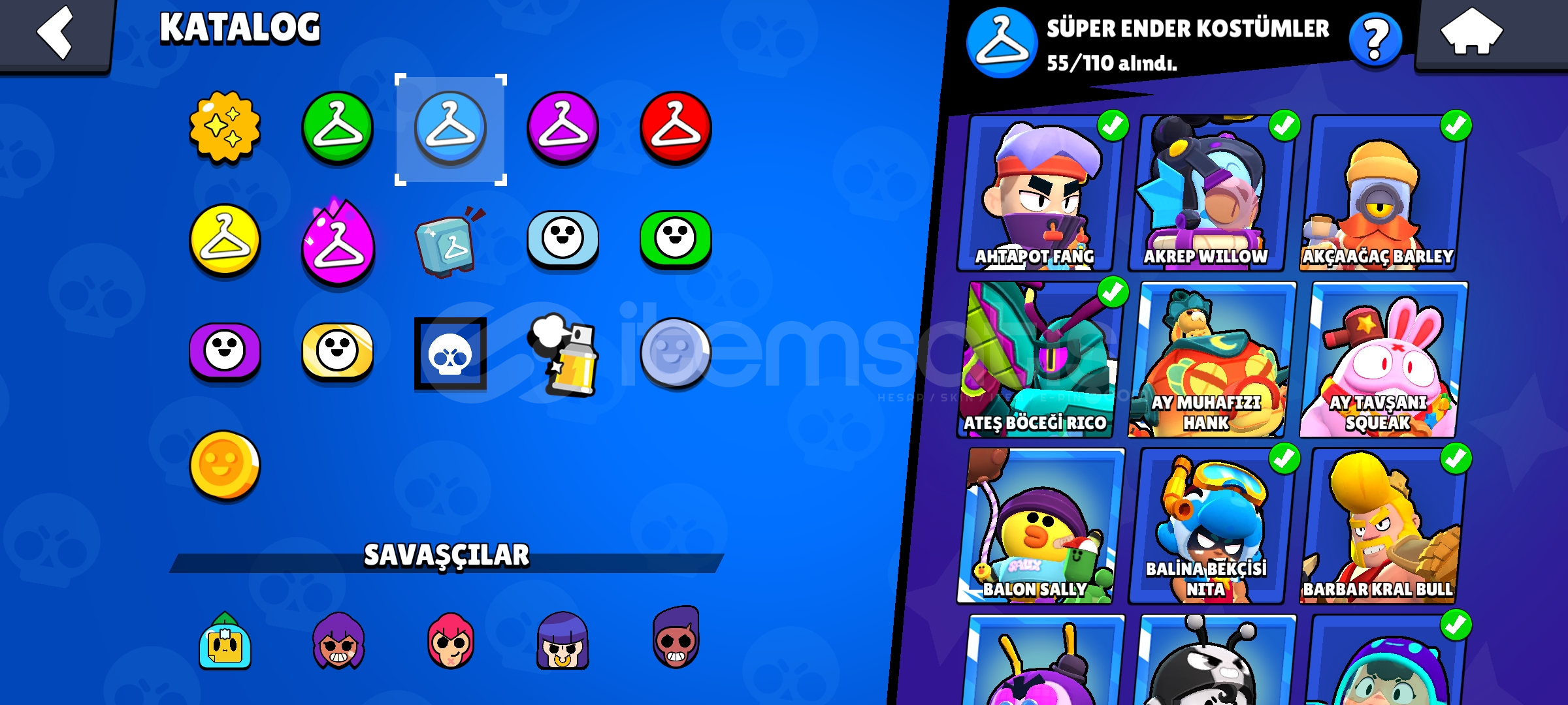 Hesap gayet iyi 10 küsur 1 k savasci 5-6 tane nadir kostum var bidaha gelmicek yeni efsanevi acilmasinada az kaldi baya zamaninda brawl pass açılmıştir paraya ihtiyacim var zararina satiyorum 3 tane hiper şarj kostumu var 500 elmas degerinde