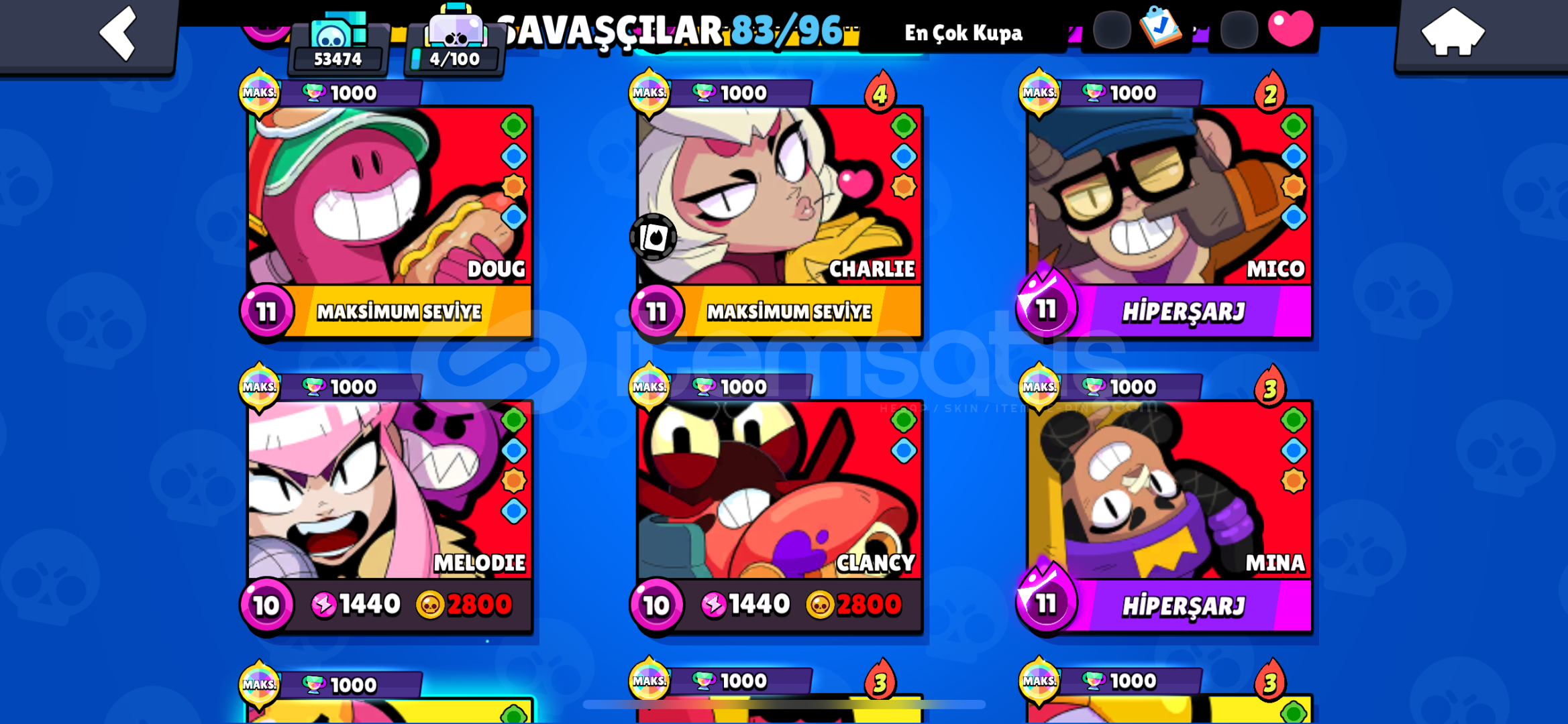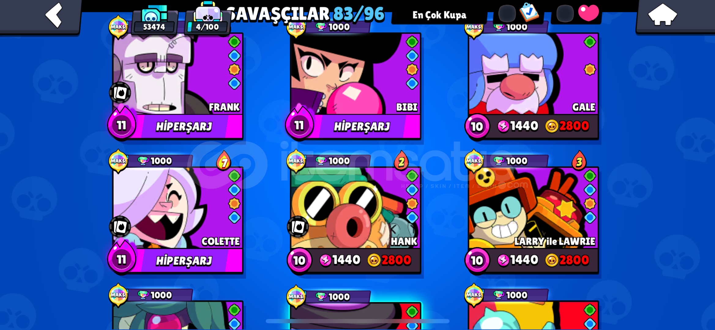 Hesapta 29 tane maks kupa karakter vardır 2024 te master olmustur 83 tane karakter vardı 51 tane ender,66 tane süper ender,63 tane destansı,6 tane efsanevi 4 tane hiperşarj kostümü vardır