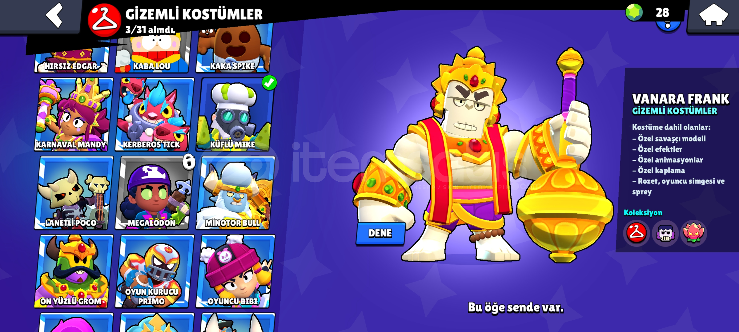 İçinde toplam 6 tane hipersarj kostümü varHerhangi bir sorunuz varsa Dm den sorabilirsiniz