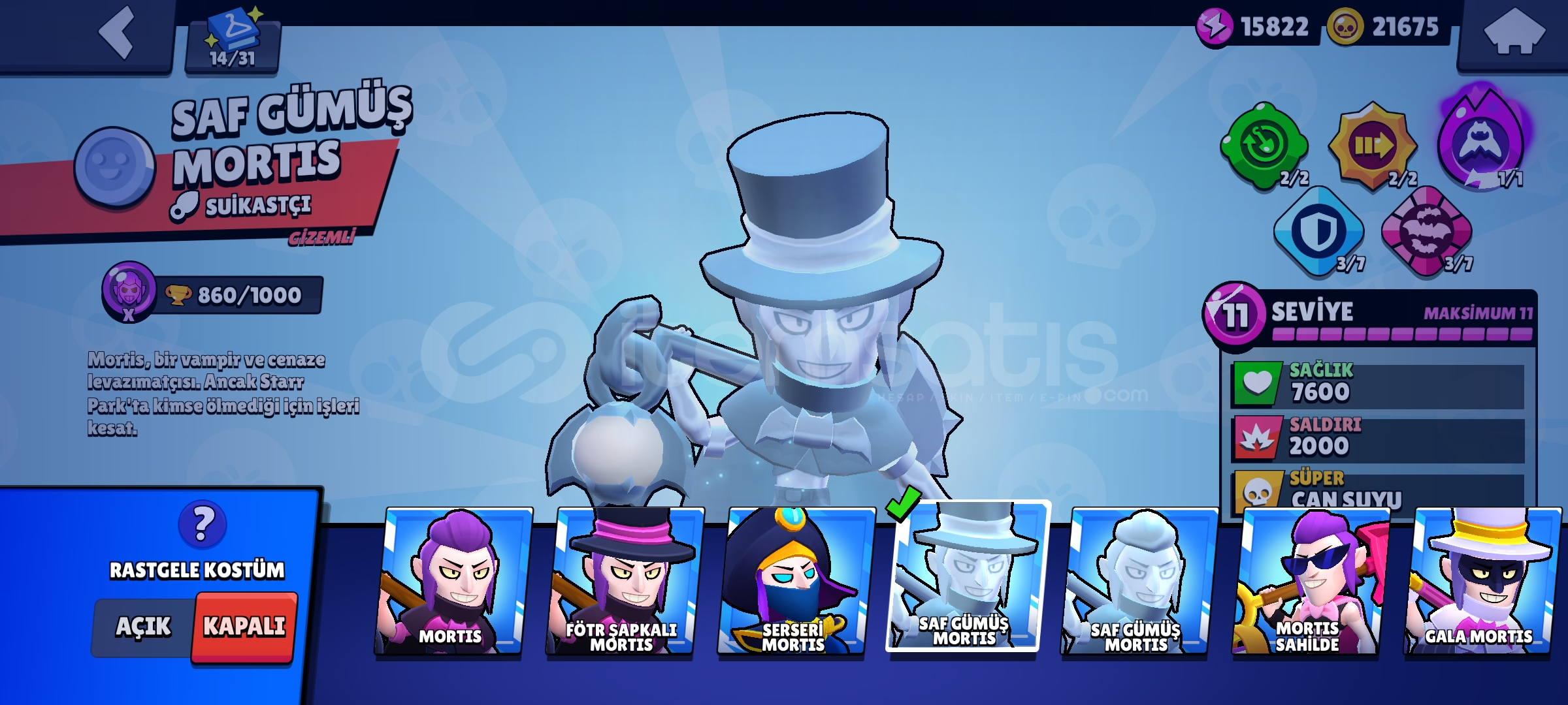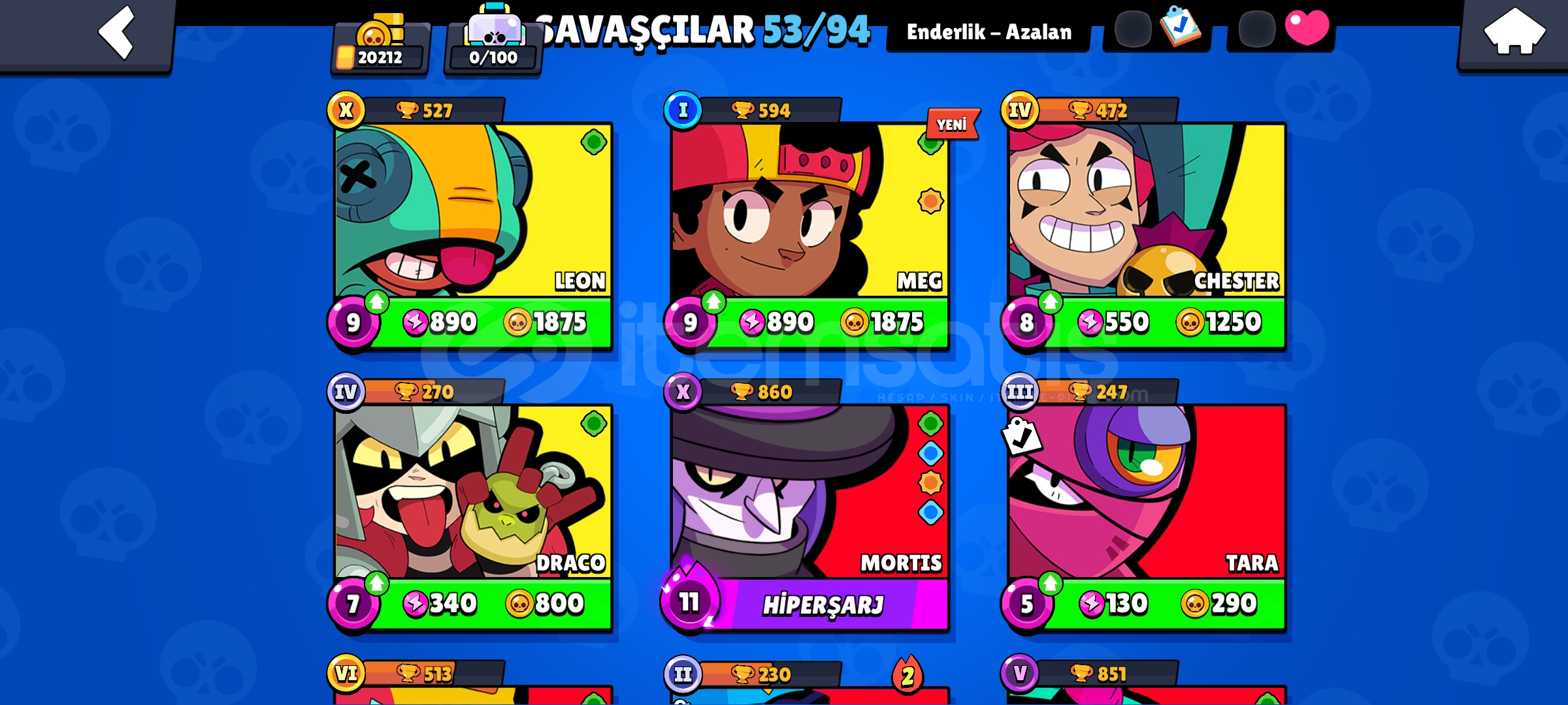 Hesabımızda 53 Karakter Vardır.~Ayriyeten Karakterleri Yükseltmek İçin21k Altın 15k Güç Puanı Mevcuttur ~4 Hiper Kostümü Mevcuttur~3 Gizemli Kostüm Mevcuttur~1 Adet Gümüş Kostümü Mevcuttur