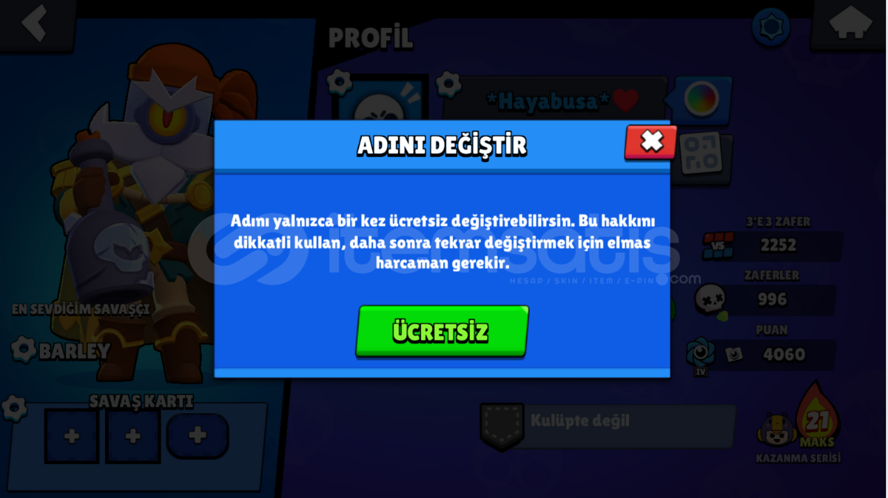 • Ücretsiz İsim Değiştirme Hakkı!!!
