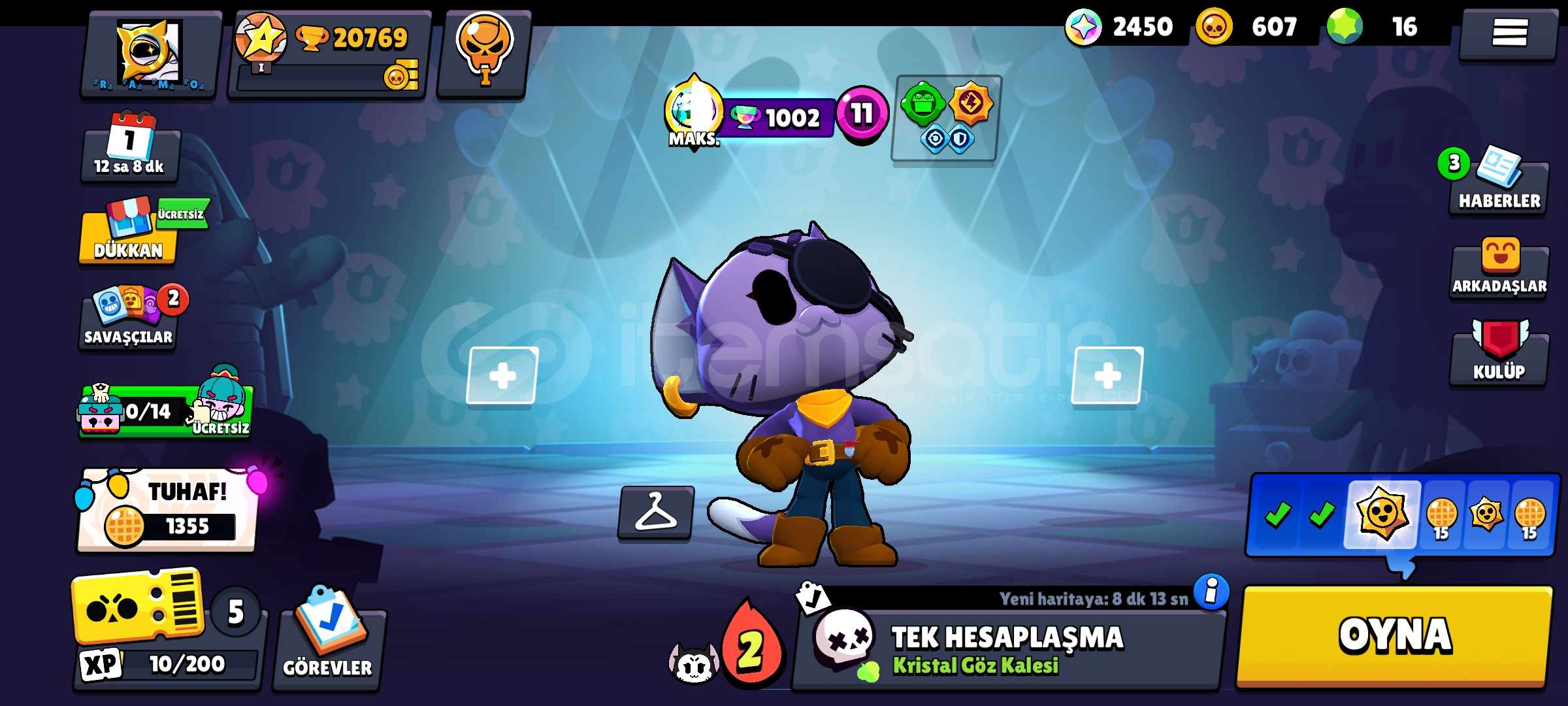 Hesapta 54 karakter ve 5 MAX karakter bulunmaktadır.