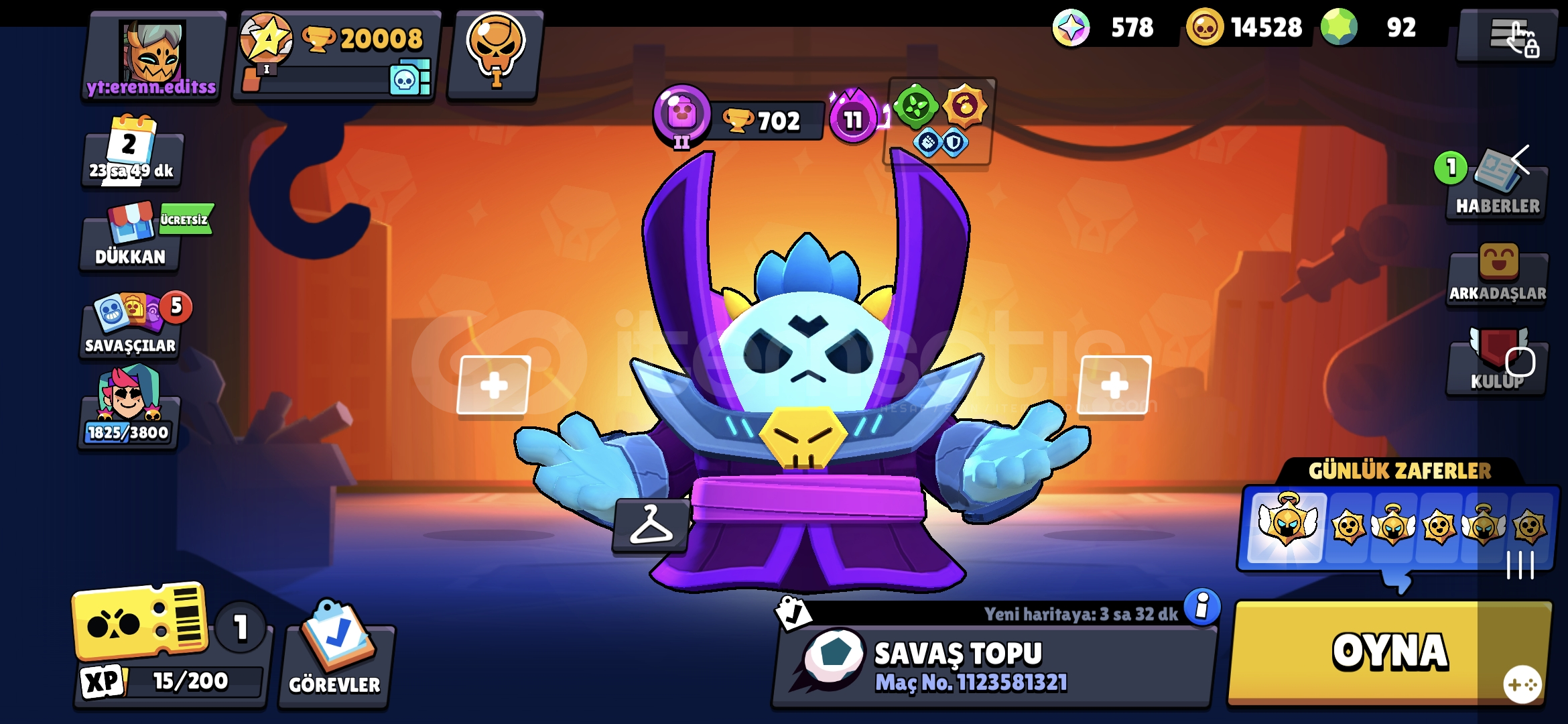Hesapta 84 kostüm vardır.Hesapta 578 mücevher, 14528 altın ve 92 elmas vardır.Hesabı uzun zamandır kullanmıyorum en son 11 ay önce oynamışım.Hesapta 63 karakter vardır.Eposta değişimi yapılacaktır .