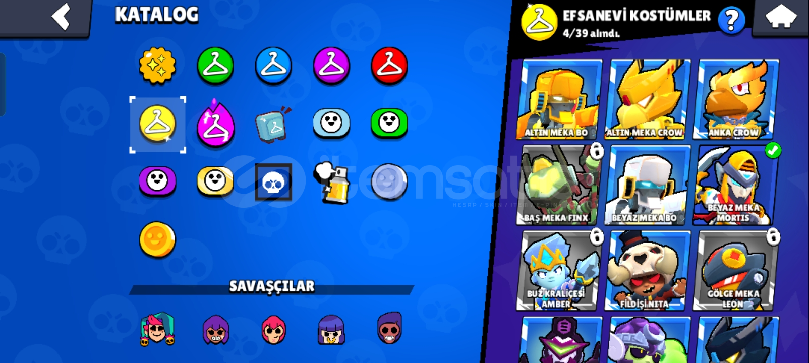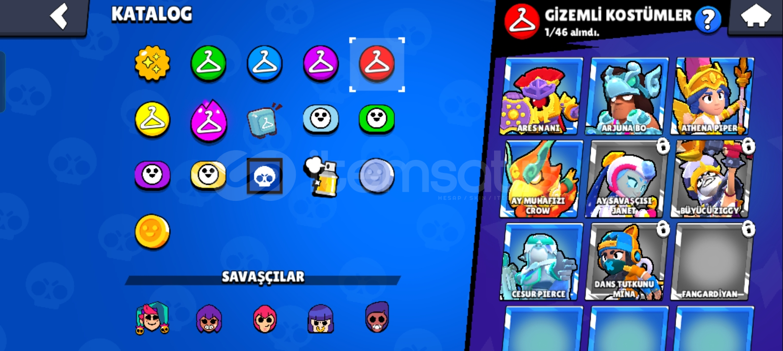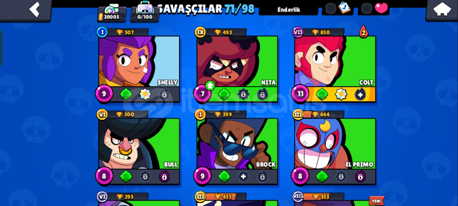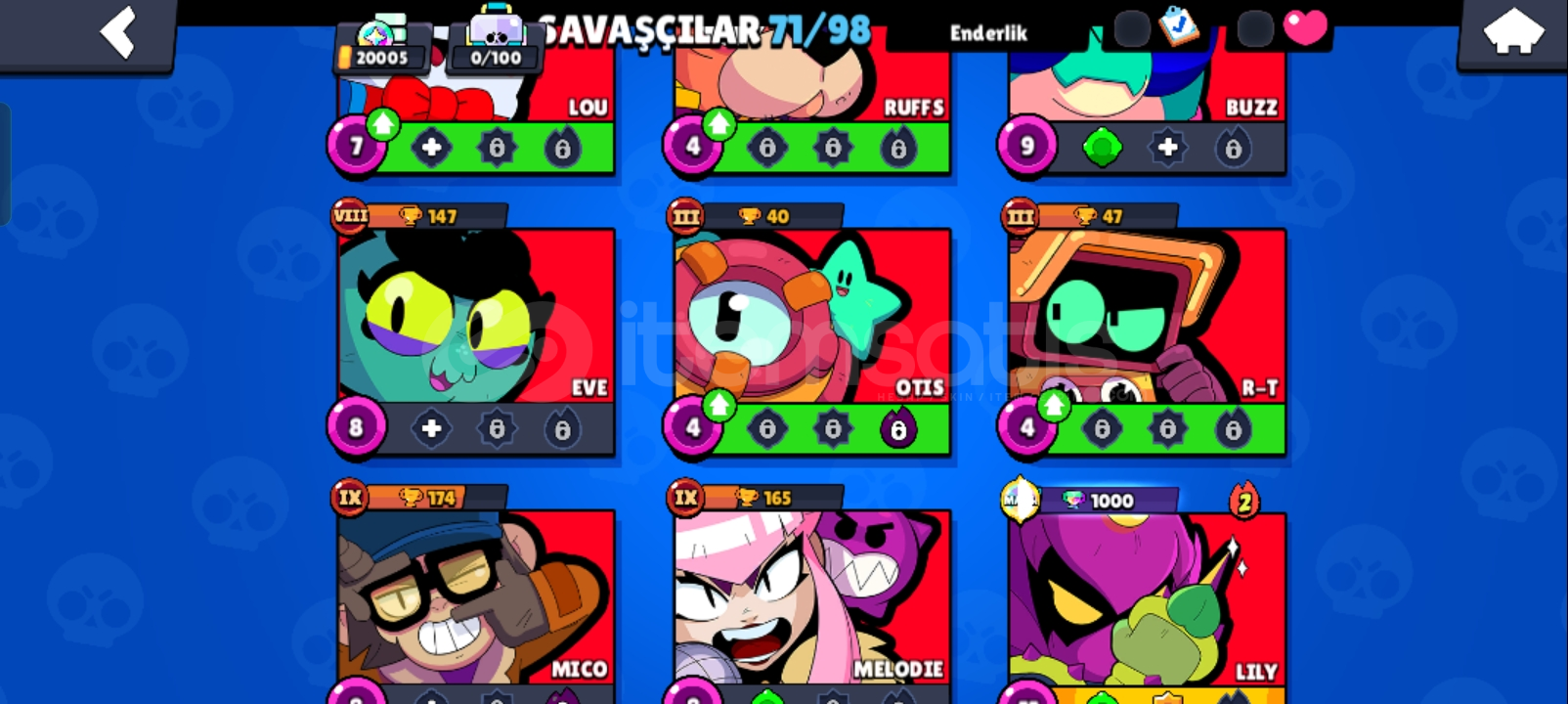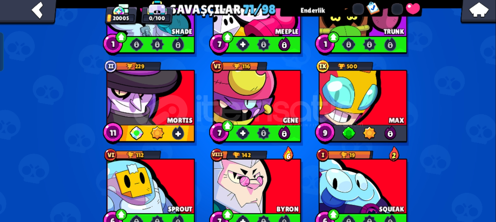 Hesapta 35 elmas1160 altın7906 güçlendirmeVardır baya fazla akın var 1 tane 1000 kupa var TR hesabı 71 karakterli yeni karakterde vardır
