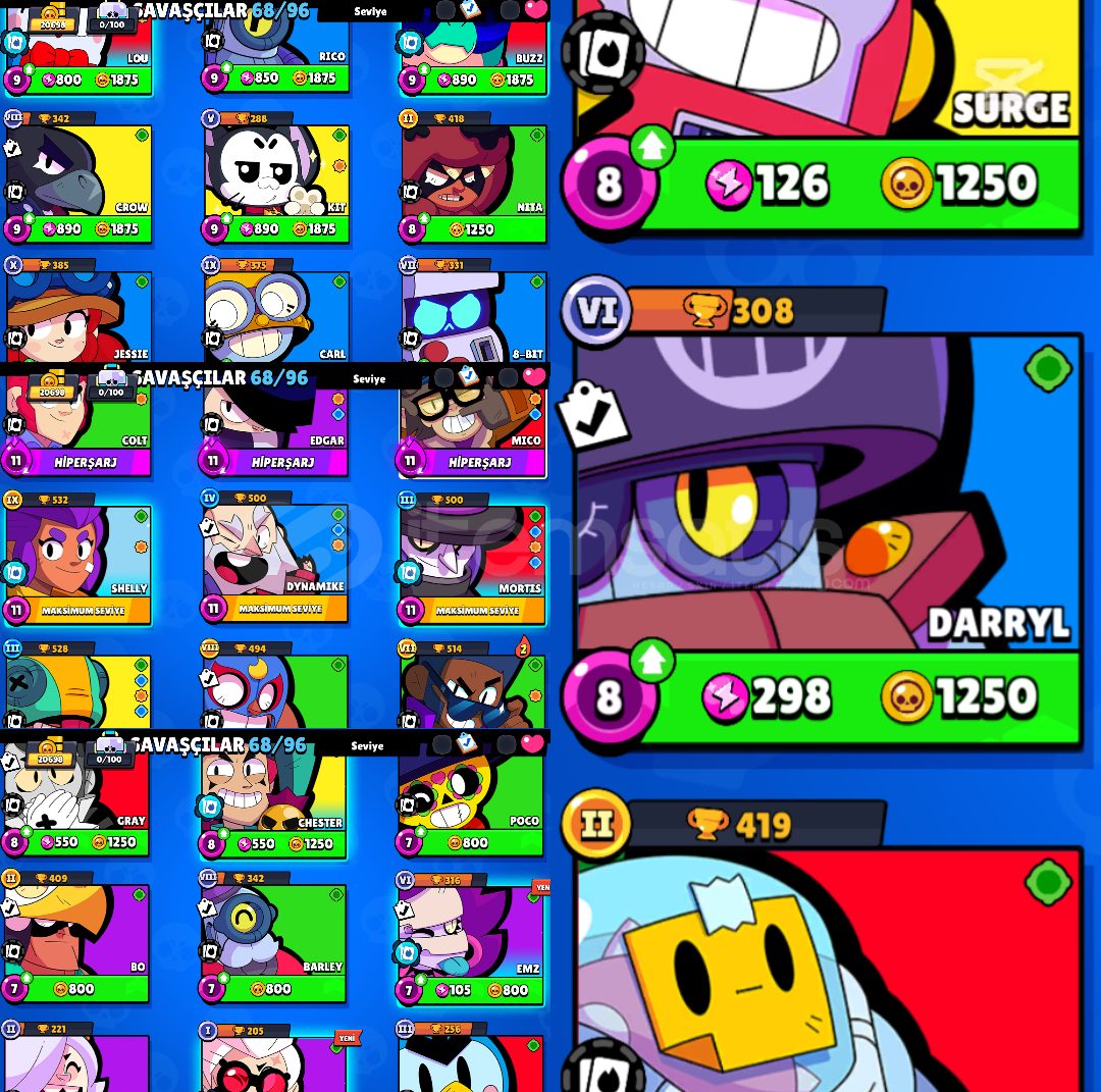(Satın almayı planlıyorsanız öncesinde dmden yazınız.)Hesap 20.698 kupadır. 68 karakter vardır. 6 efsanevi (fotoda gözükmeyen sandy var) Kostümler 60 civarıdır. 11'i Destansı 2 tane süperşarj kostümdür. pazarlık payı vardır.