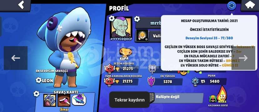 Şu anda sitemizde satış yapan bir kullanıcıdan hesap satın almaktasınız.