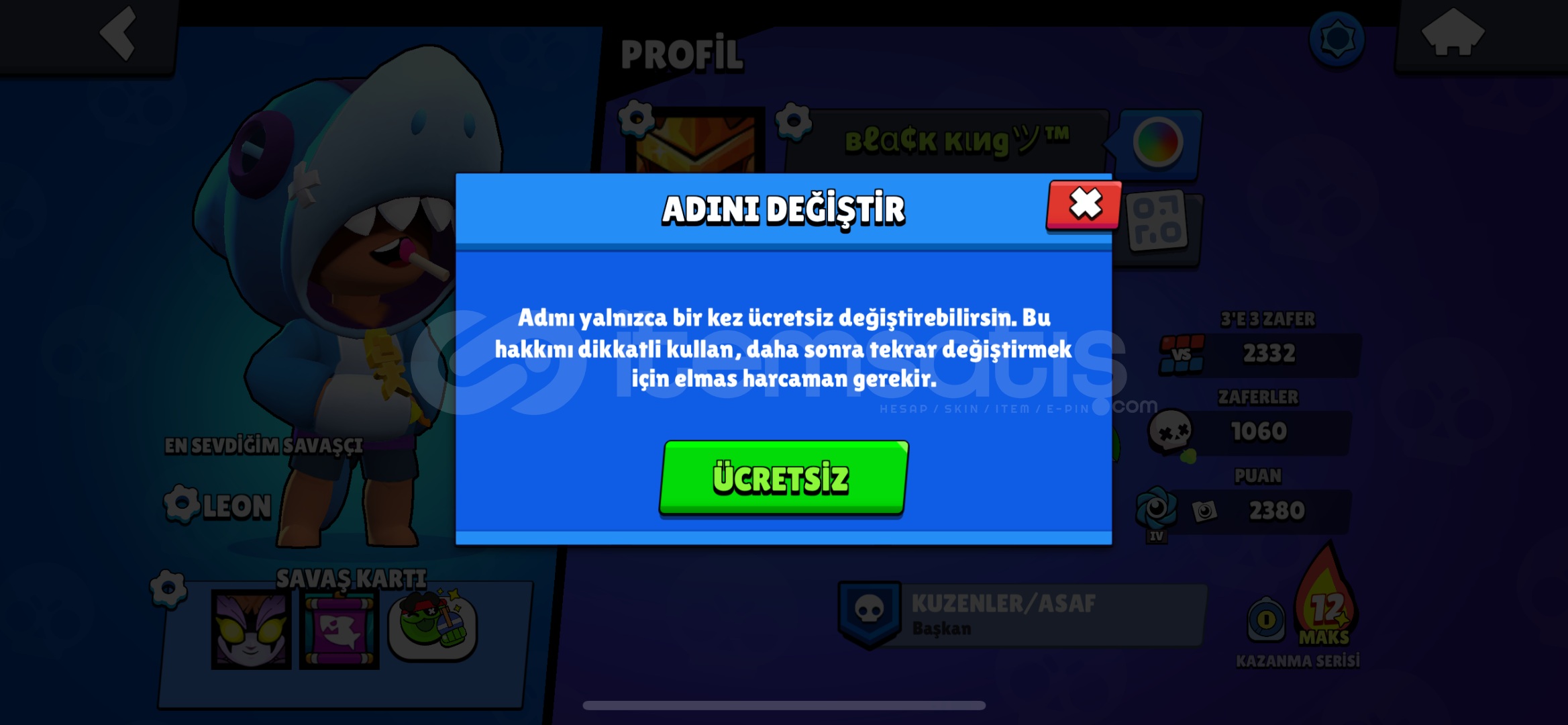 NOT: Hesapta Ücretsiz isim değiştirme vardır