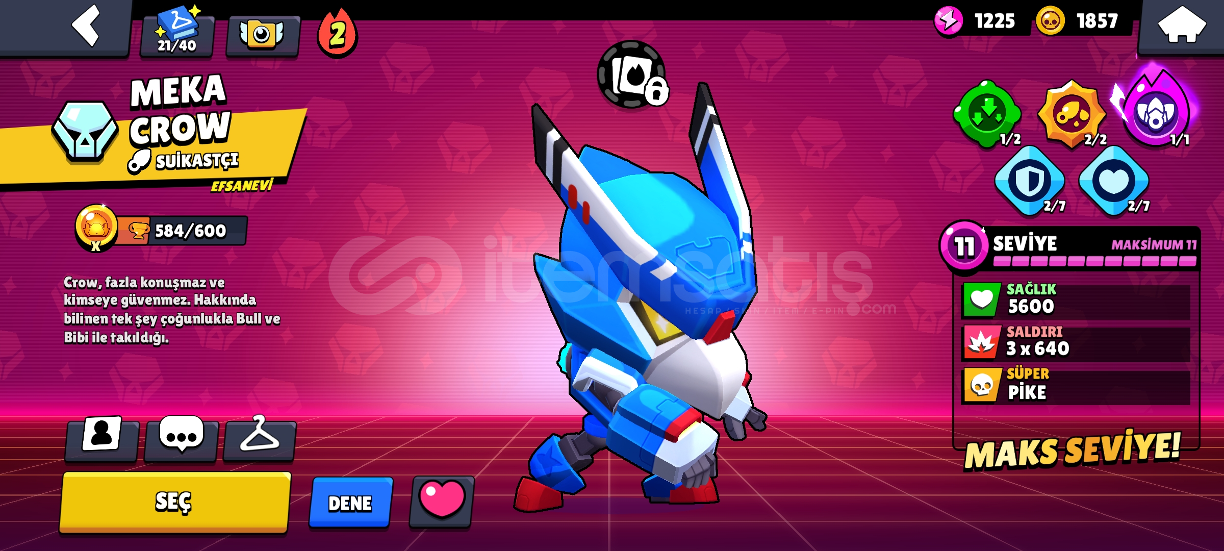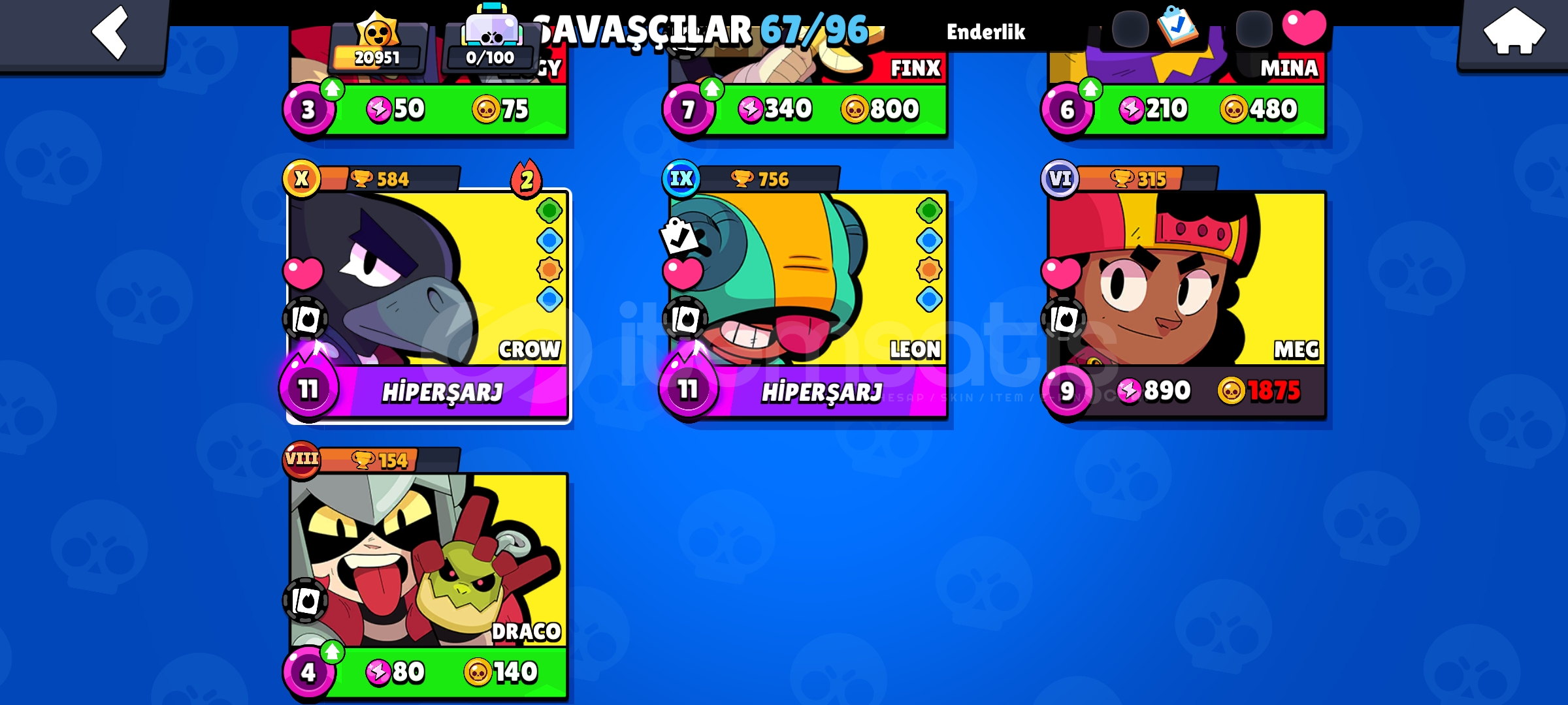 20950 kupa (21000 saydım)67 karakter4 efsanevi karakterMeka crow kostümü14 destansı kostüm34 Süper Ender kostüm47 Ender kostüm
