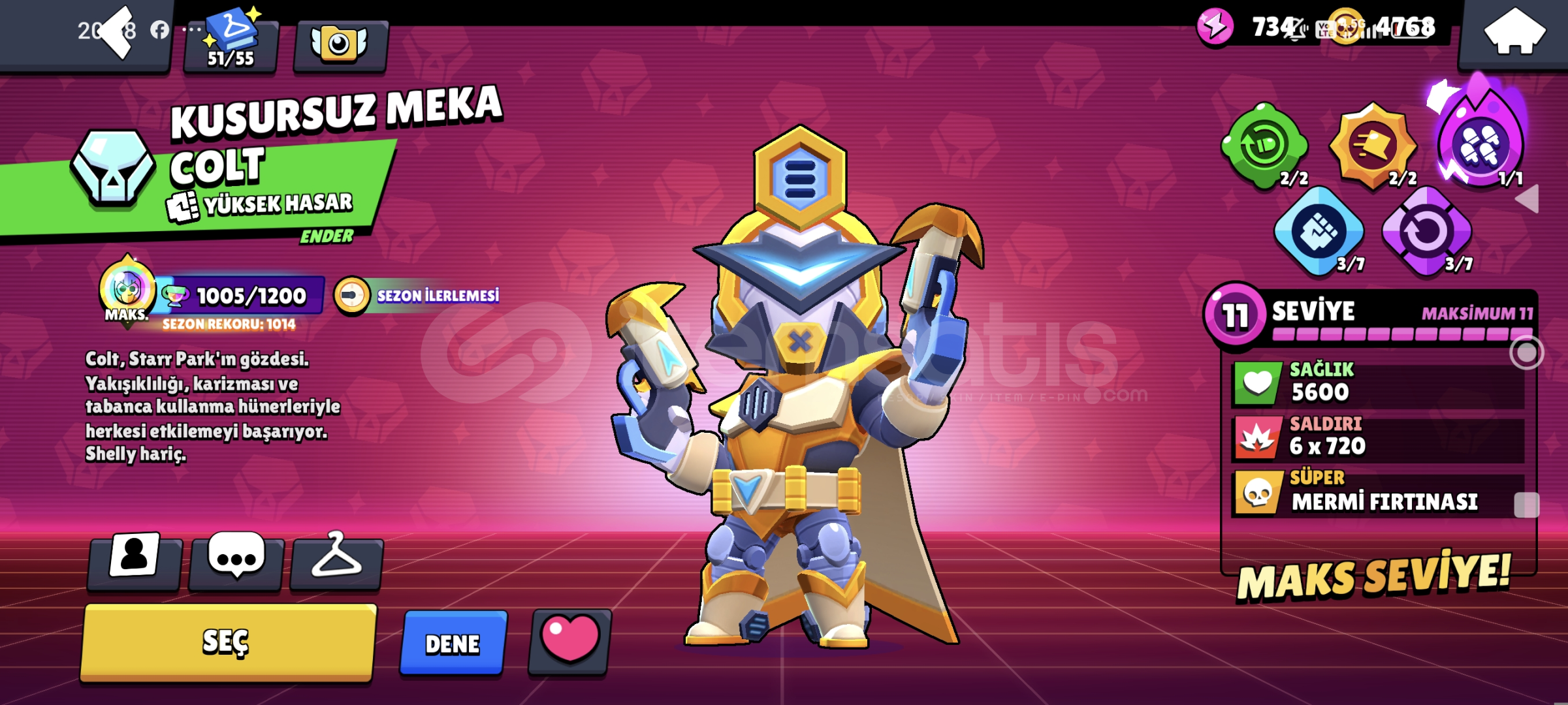 HESAP COLT MAİN BİR HESAPTIR COLTUN BÜTÜN KOSTÜMLERİ HESAPTA MEVCUTTUR HESAPTA 6 KERE BRAWL PASS+ ACILDI (2018) YILDIZ SHELY HARİKA HESAP 200+ KOSTÜM İKİ TANE HİPERSARJ KOSTÜMÜ NADİR HESAP ALMADAN KACMAYIN YİGİT EMRE ÖZER GÜVENCESİYLE HİZMETİNİZDEYİZ....
