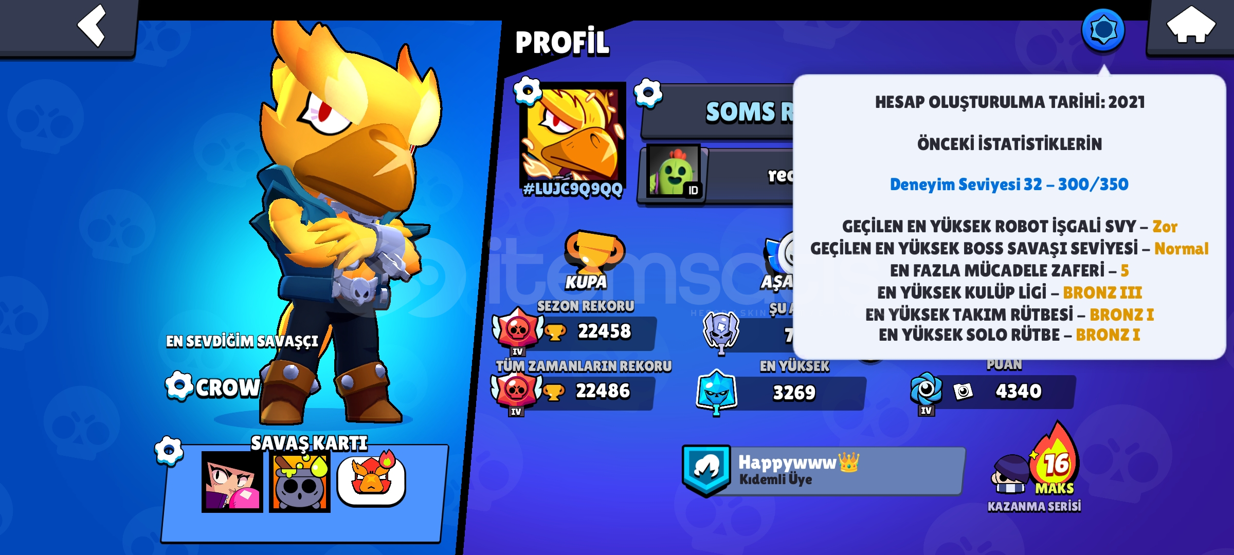 22K65 karakter 26 hiperşarjlı 13'ü 11 seviye değil 119 kostüm anka crow var2021 hesapıPazarlık var✅Değişebilir e posta1000 kupa Bibi ve 900 kupa Riko var.
