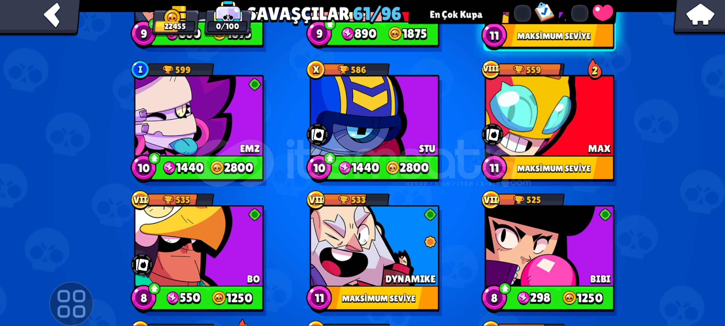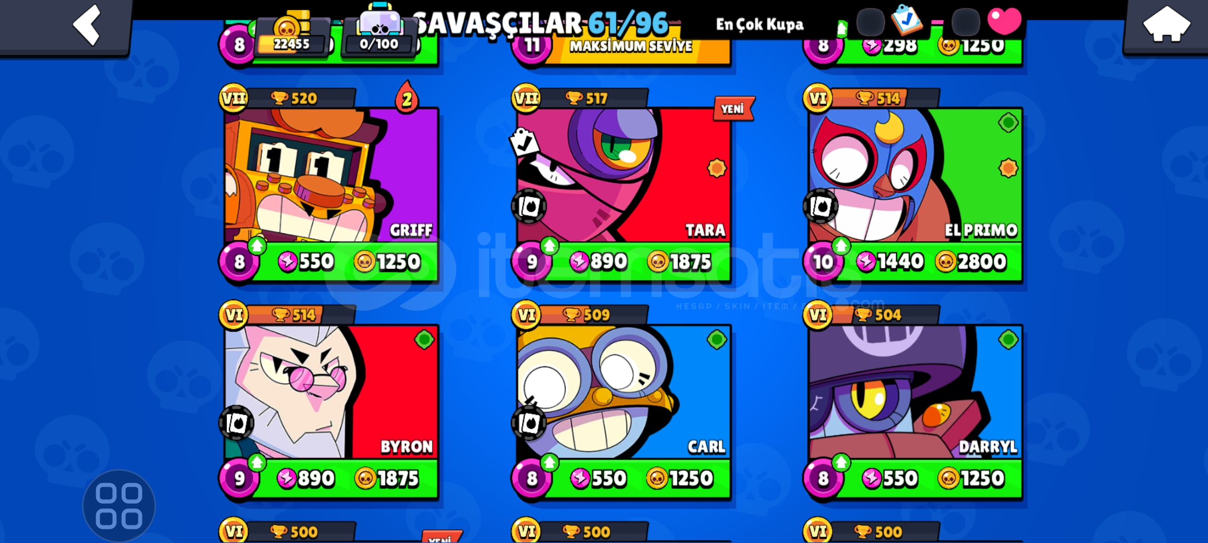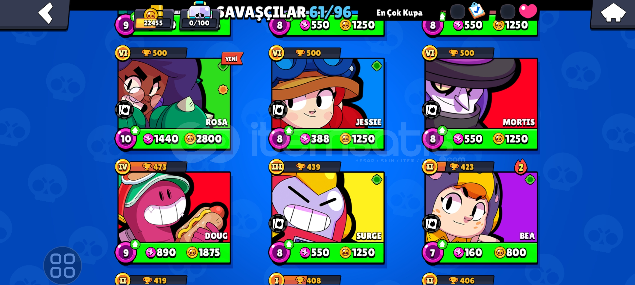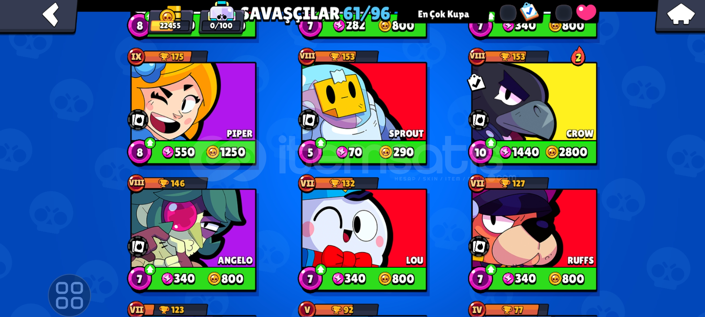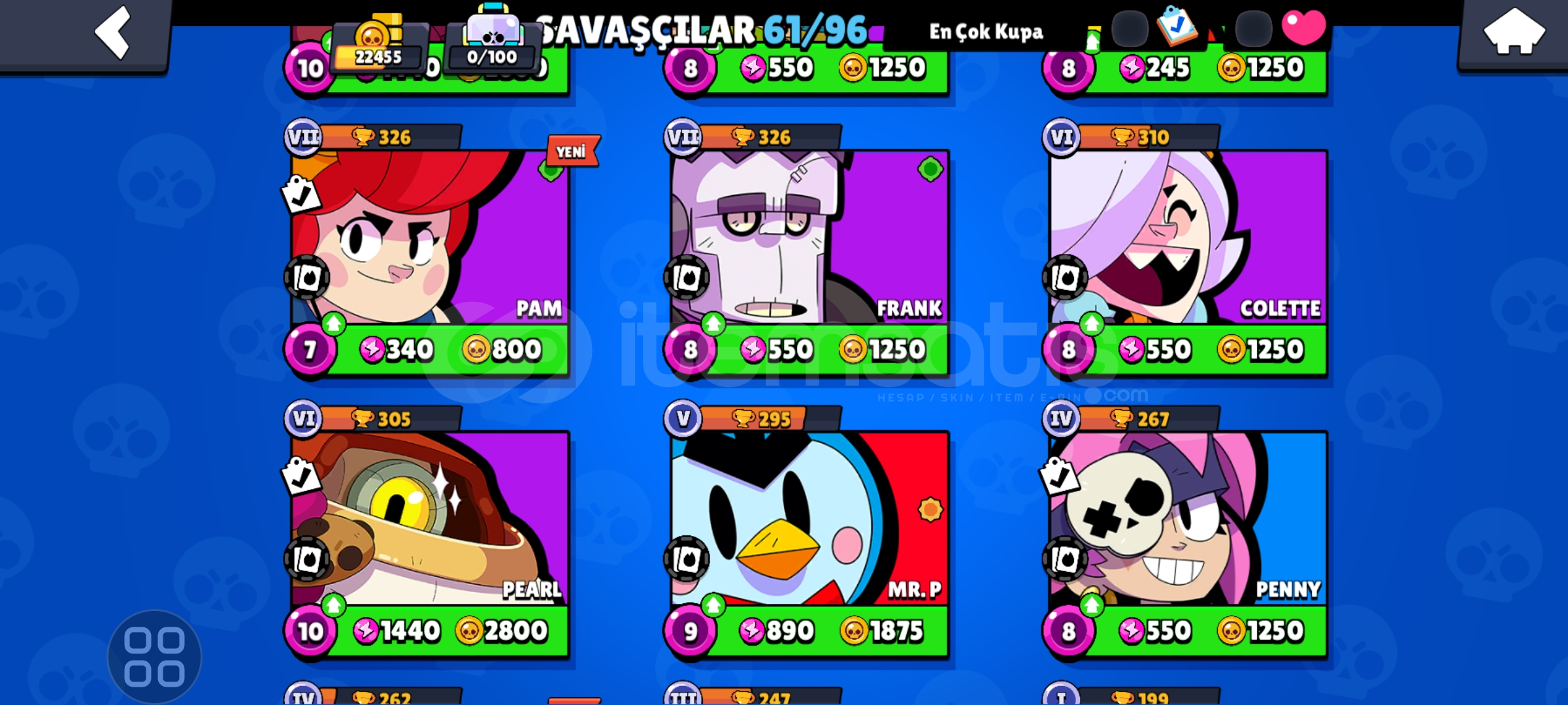 🔥 22K+ Kupa | 61 Karakter | 230 Elmas 💎Brawl Stars tutkunları için özel hesap! 💥⚡ 22.000+ kupa ile tam ...