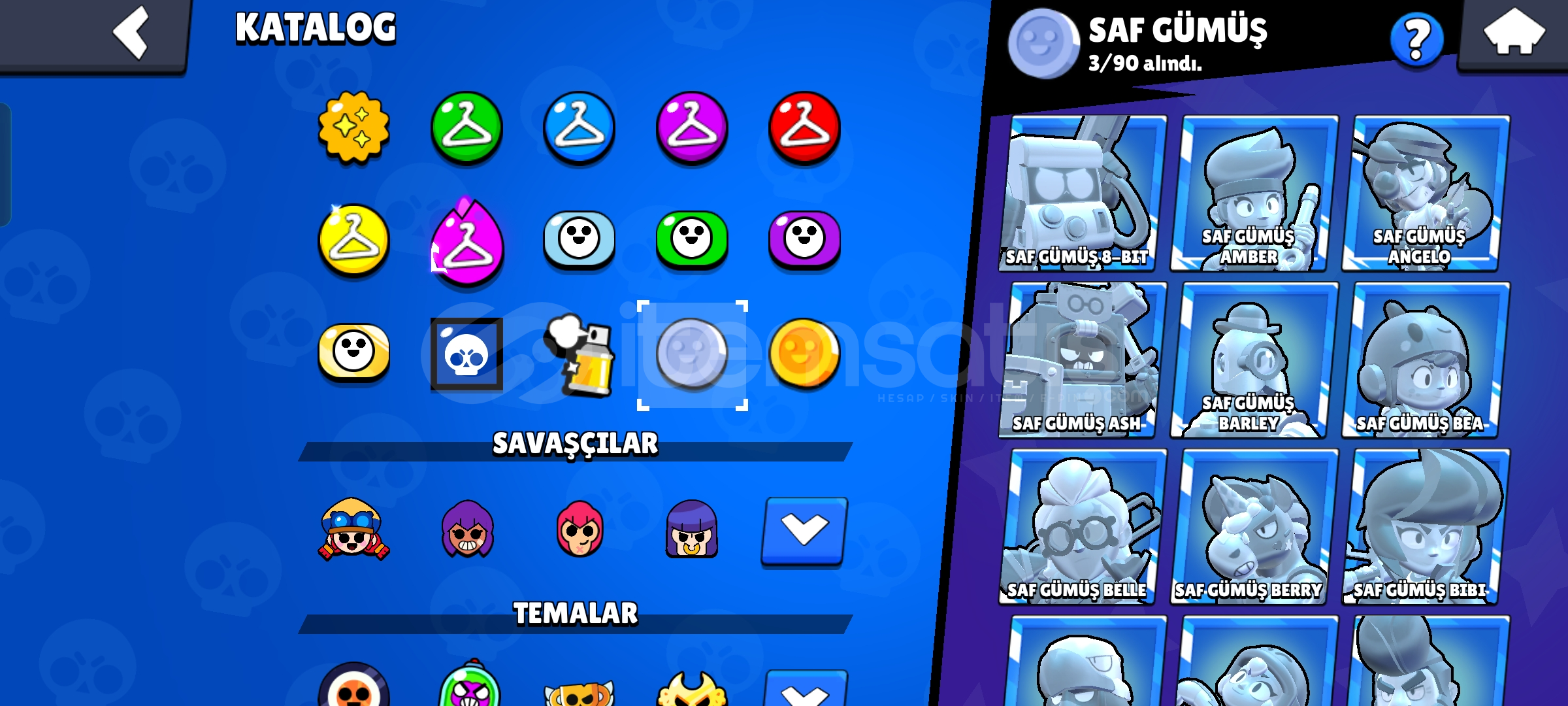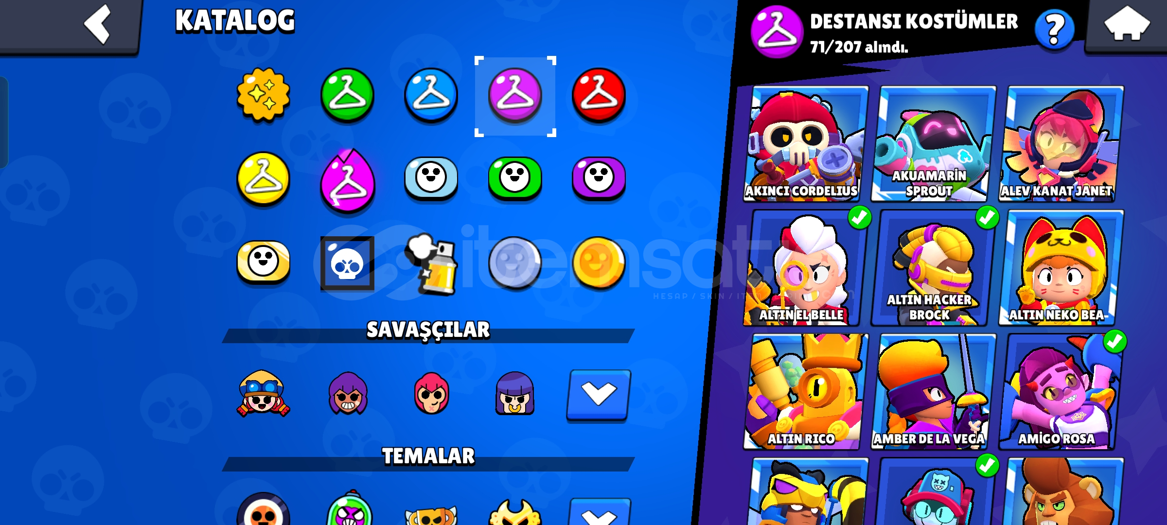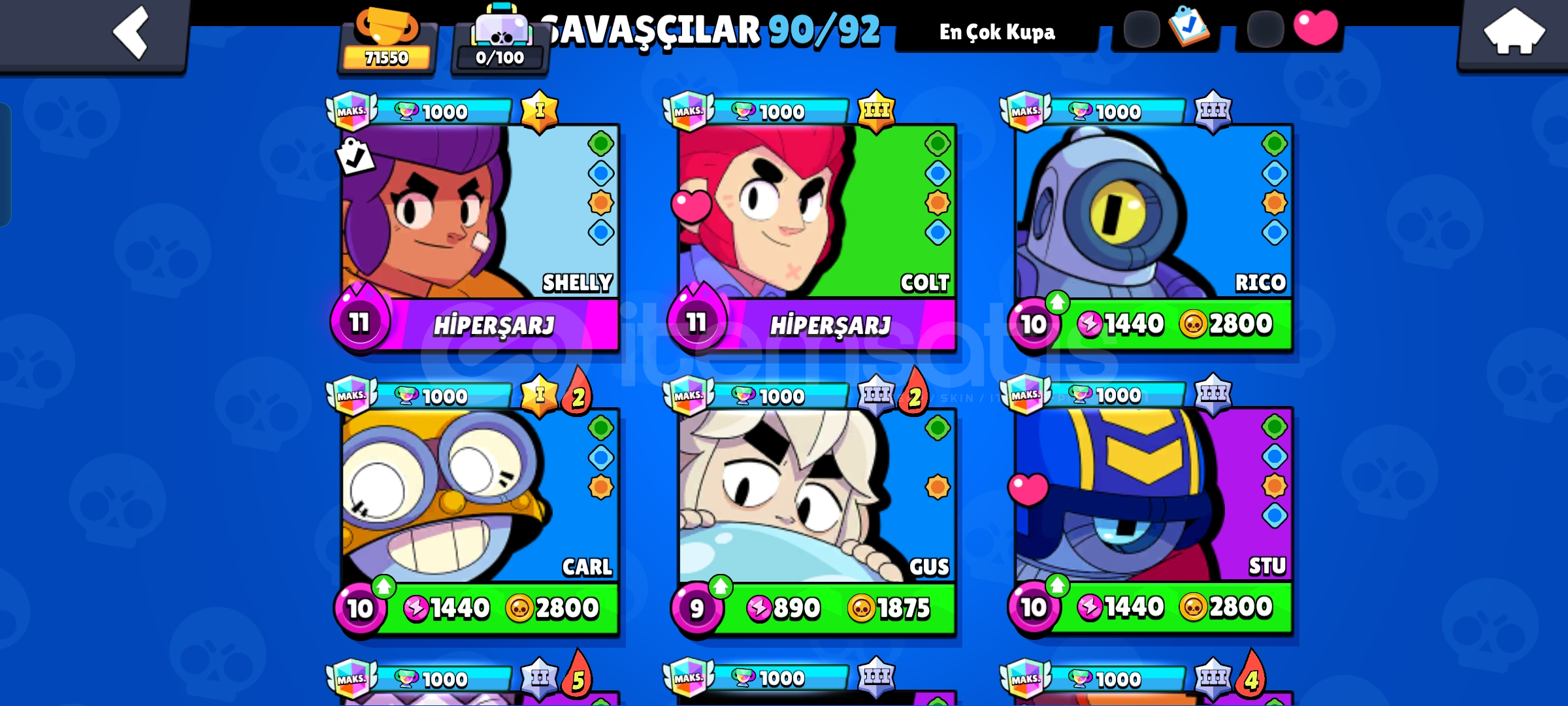 Hesapta 3 Brawl Pass+ vardır.72K Kupadır.2 Eski 30 Rank vardır.400₺ Satılan Fang Skini.400₺ Matcherino Pini.30 Tane Max Rank.230+ Skin.Eski Belle Sezonu Brawl Pass.Mars Şöhret.DETAYLI VİDEO ATILIR.PAZARLIK VARDIR.