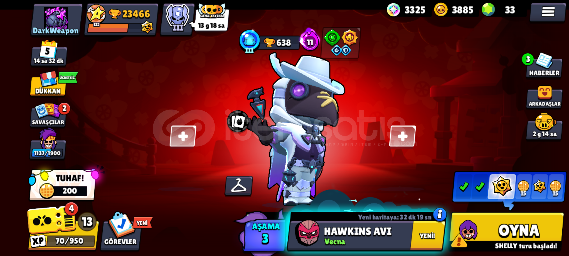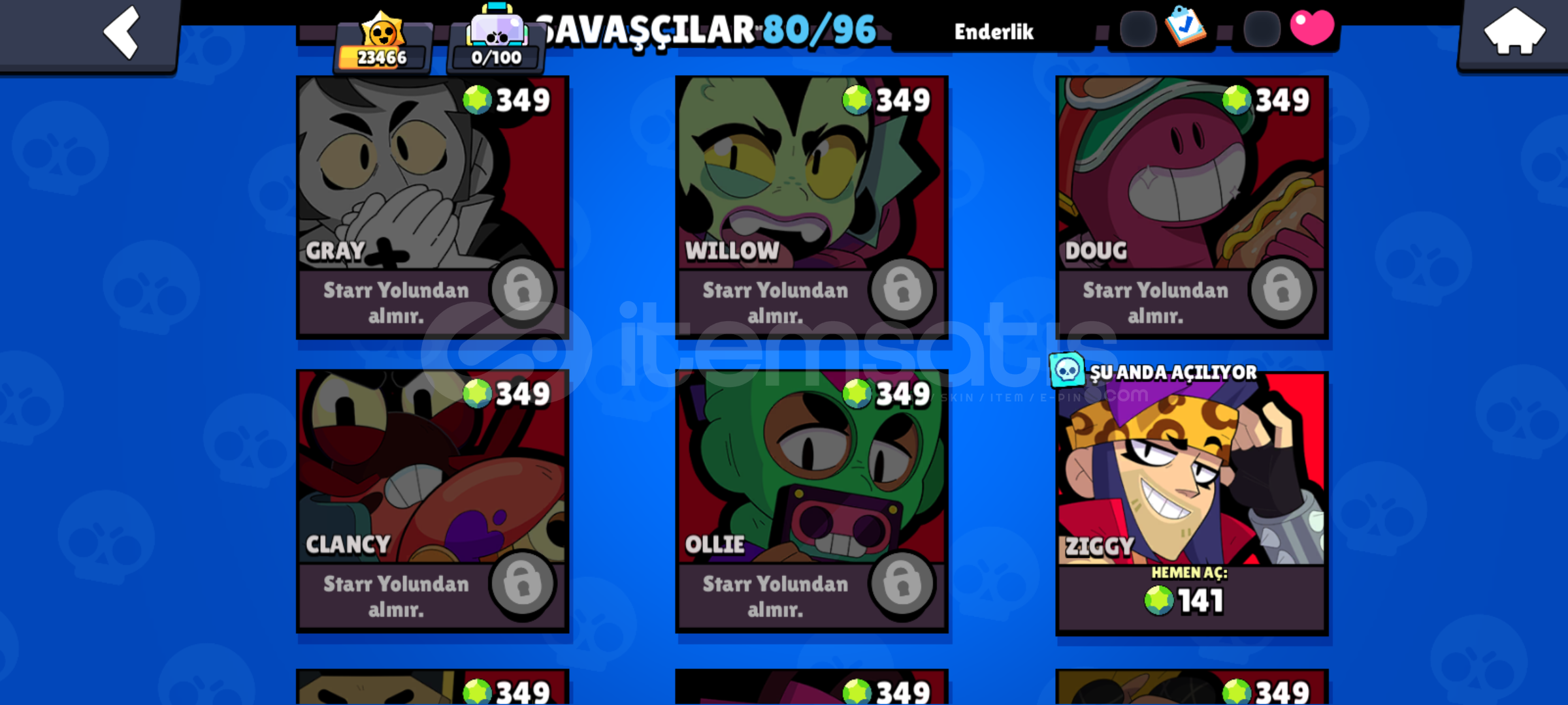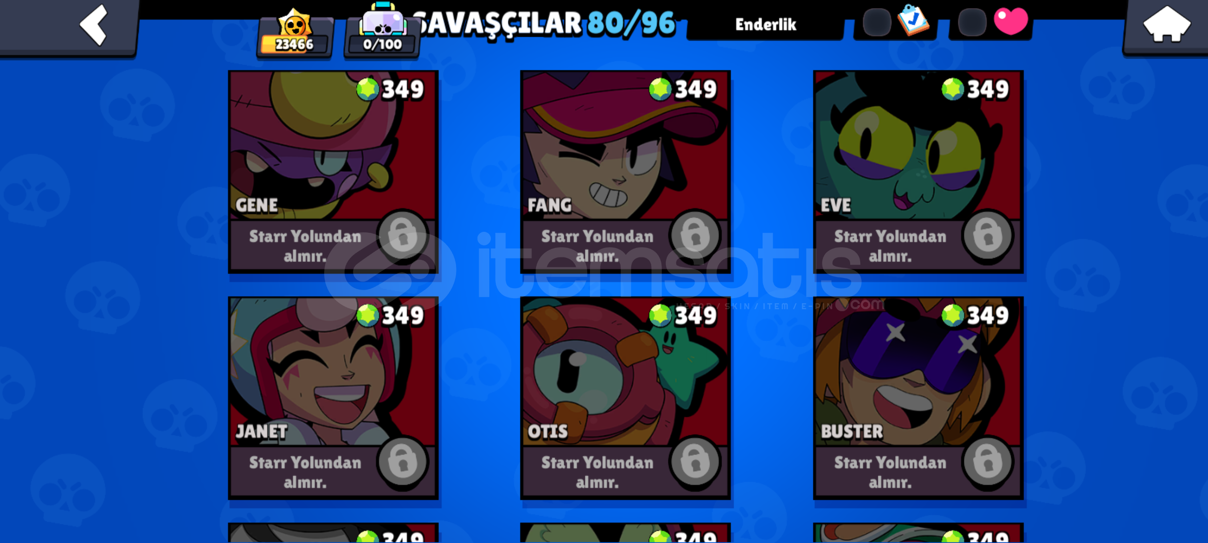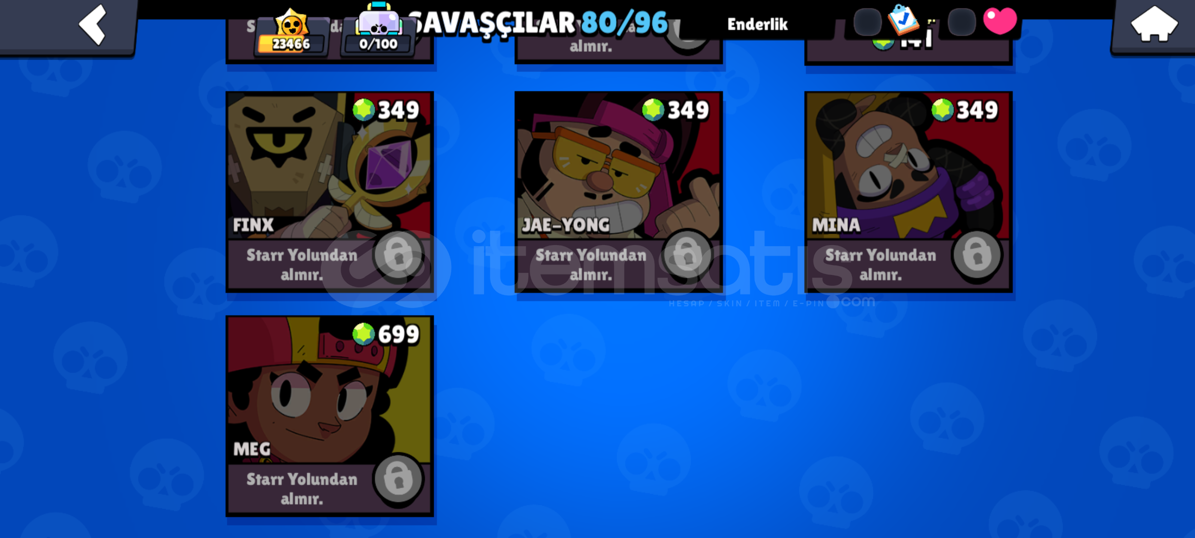 Hesapta bütün karakterler 10 sv üstü sadece resimde koyduğum karakterler yok 1 adet brawl pas 1 adet brawla pas plus açıldı