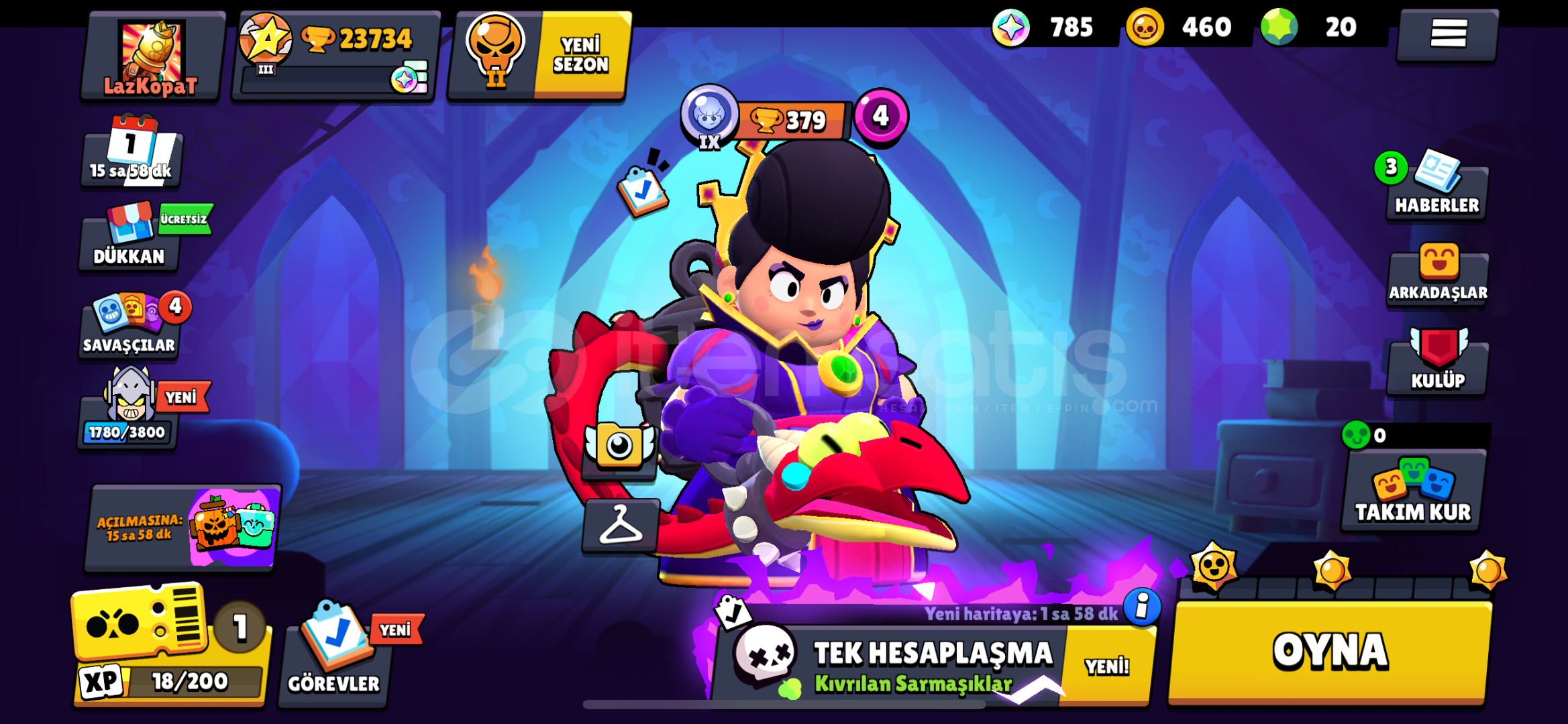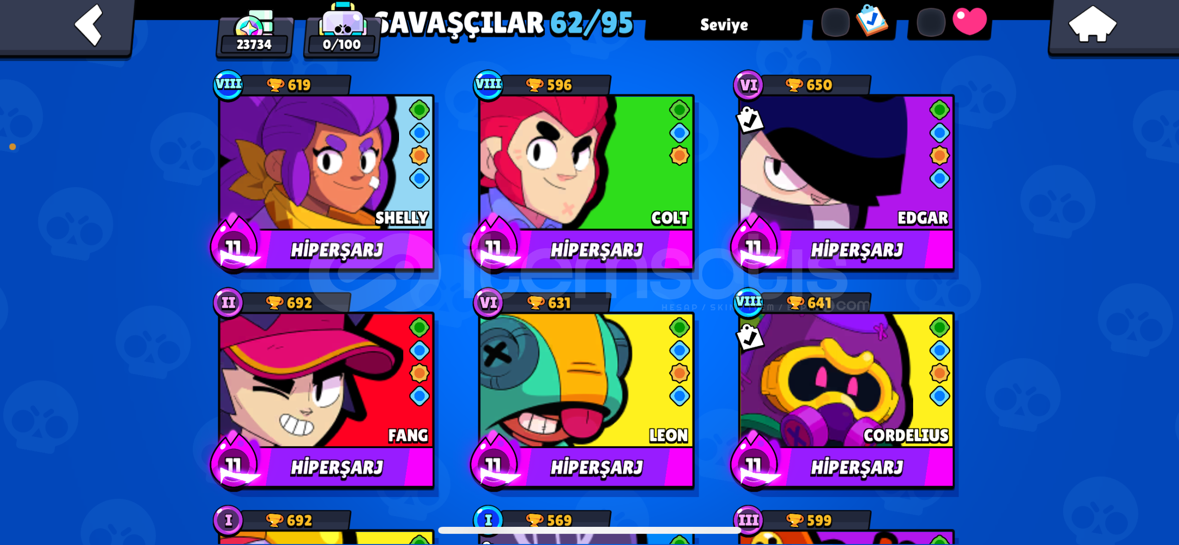 Hesaplarımız Nasıl Teslim Edilir ?İlanı satın aldıktan sonra, bize ilettiğiniz e-posta adresini hesaptaki bilgileri güncelliyip teslimatı tamamlıyoruz.✦ Hesap ÖzellikleriHesap 23.734 kupadır.Hesapta 62 savaşçı vardır.Hesapta 88 skin bulunmaktadır.2023 Kurulum Hesaptır.✦ Hesabın içerisindeki Kaynaklar20 Taş 460 Alt&#...
