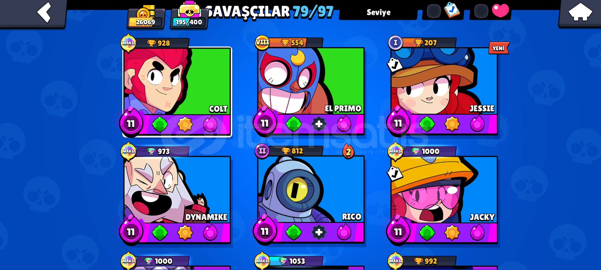 Hesab da 1 kere Brawl pas açıldı hesap 16 tane max kararkter toplam 80 karakter mevcut alıcısına hayırlı ols...