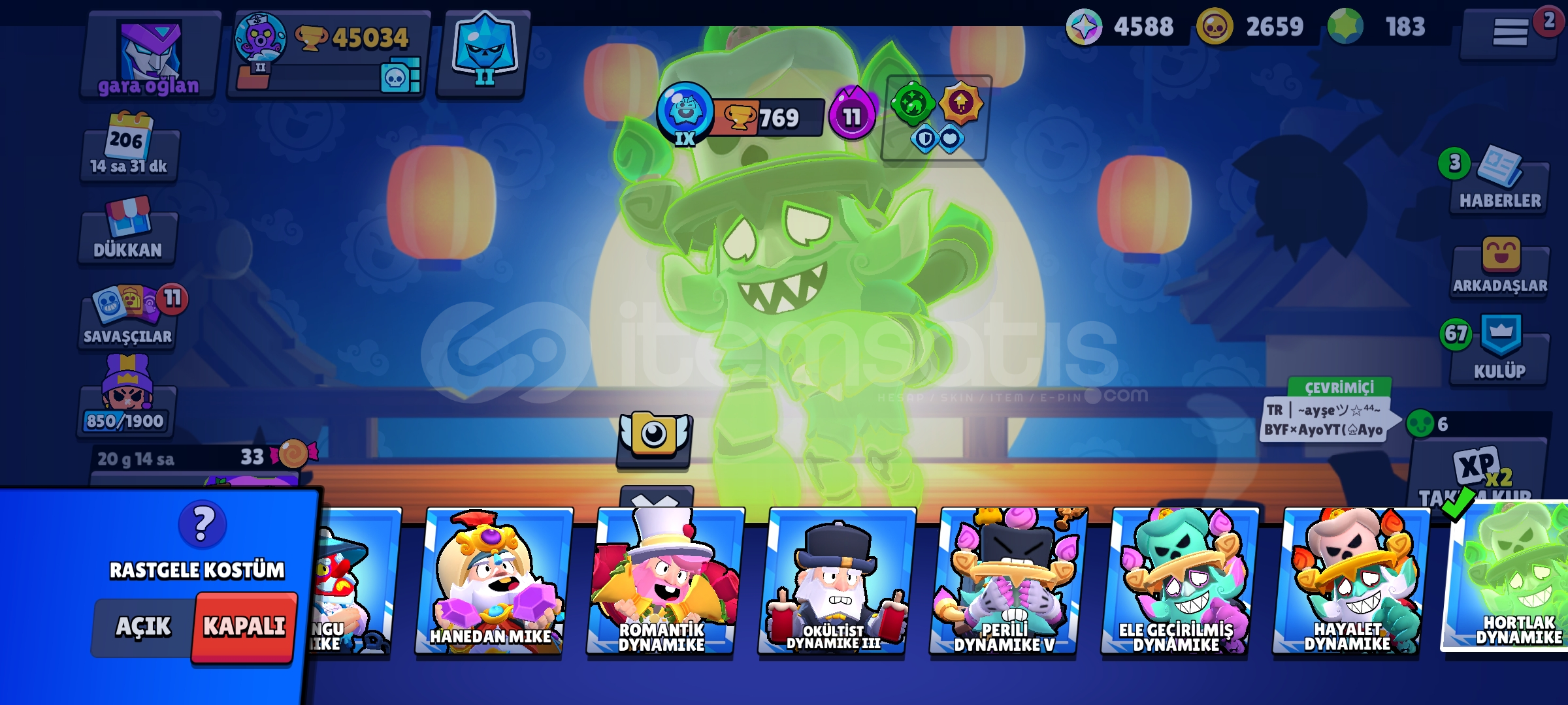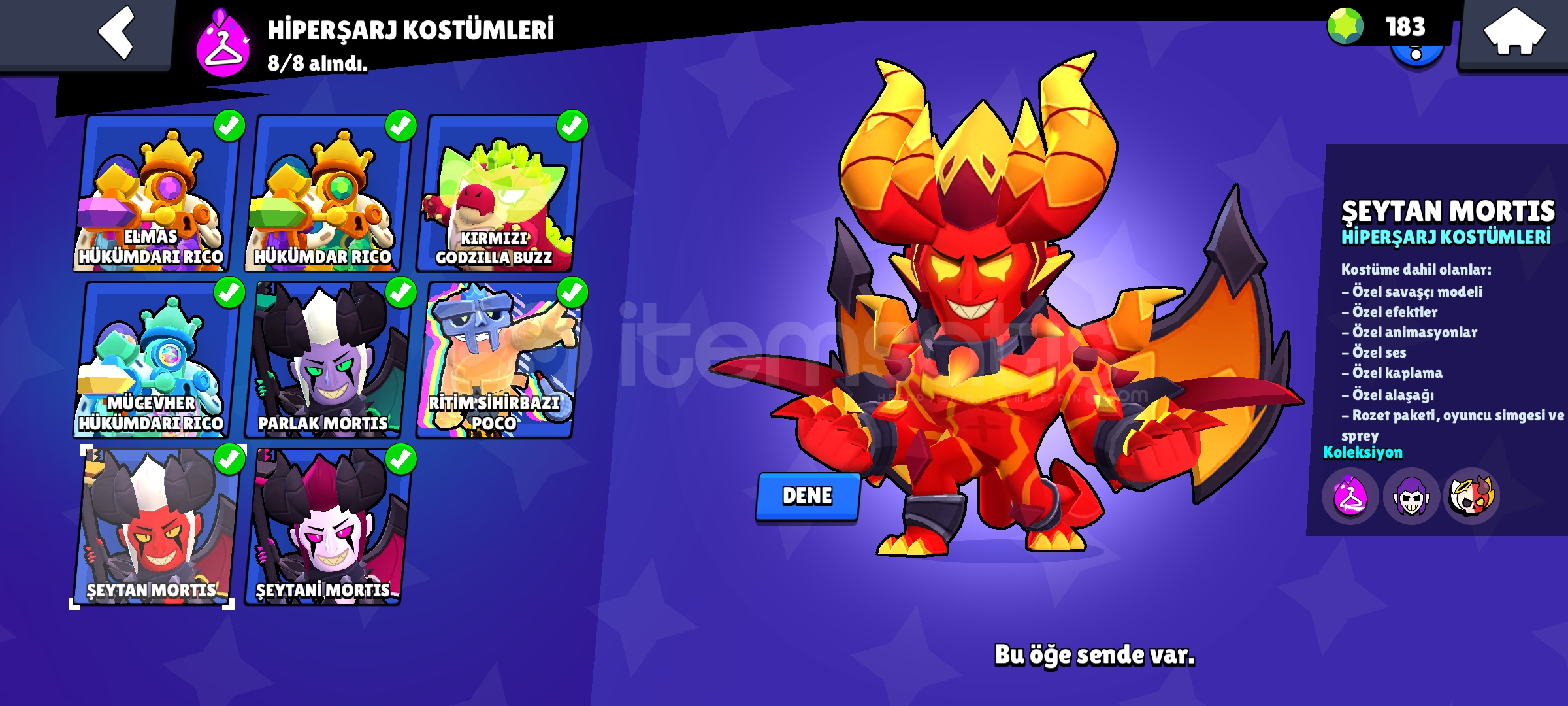 hesabda 250 den fazla kostüm bulunmaktadır 45000 kupadır bazı kostümlerin miktarı8 adet hiperjarj10 adet efsanevi kostüm9 adet gizemli kostüm ve sayamıyacağım kadar fazla kostüm bulunmaktadır bu fiyata hem böyle nadir hem böyle güzelini bulamazsınız3 kere pass pllus açıldı2 kere pro pass açıldıçok nadir kostümler vardır94 karakter vardır200 e yakı...