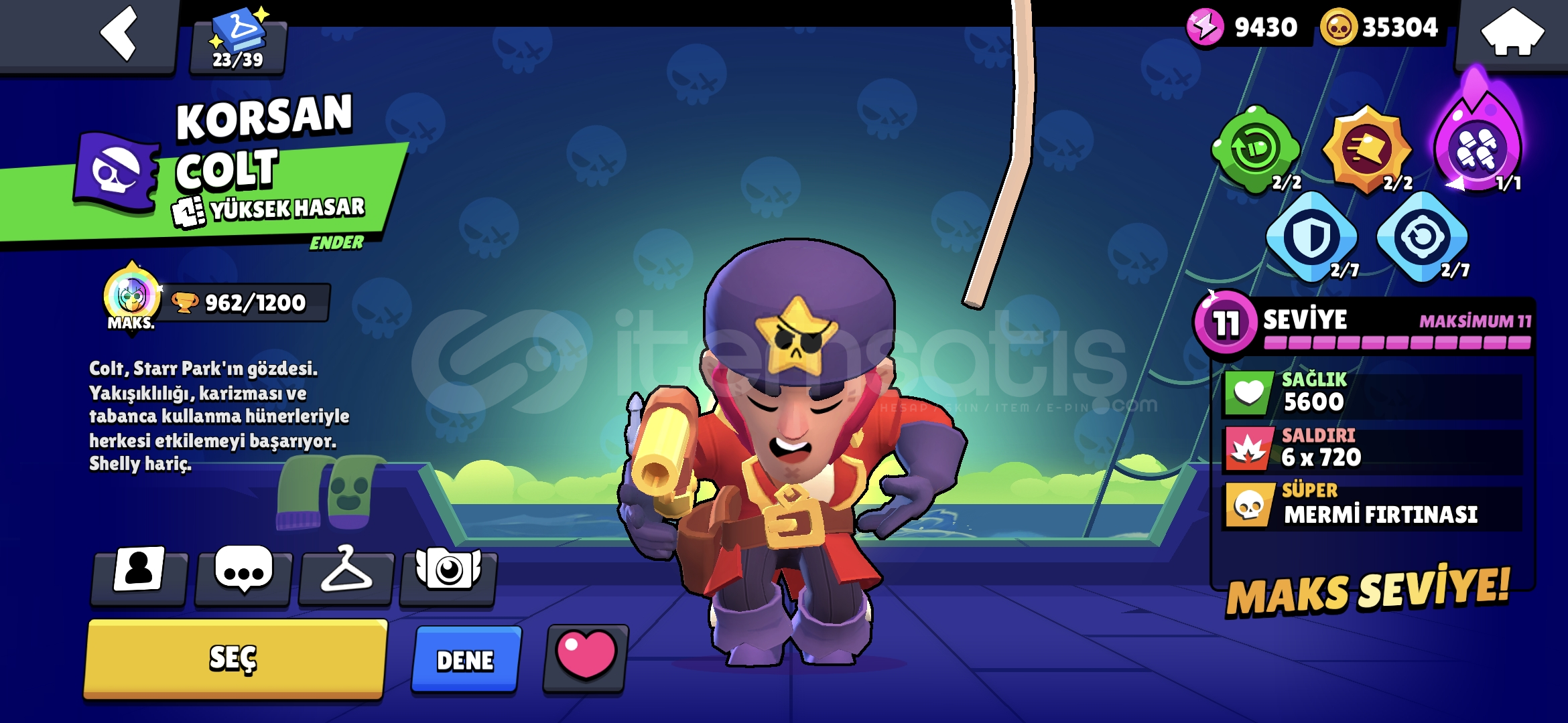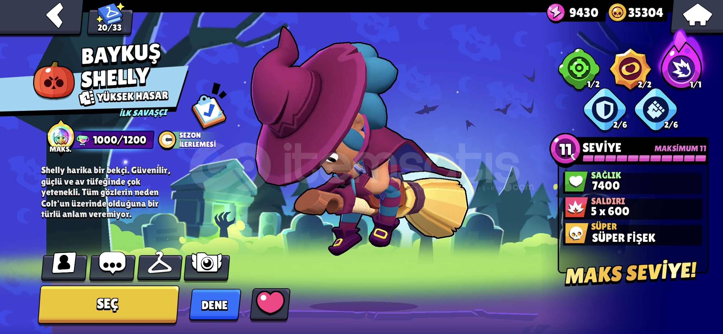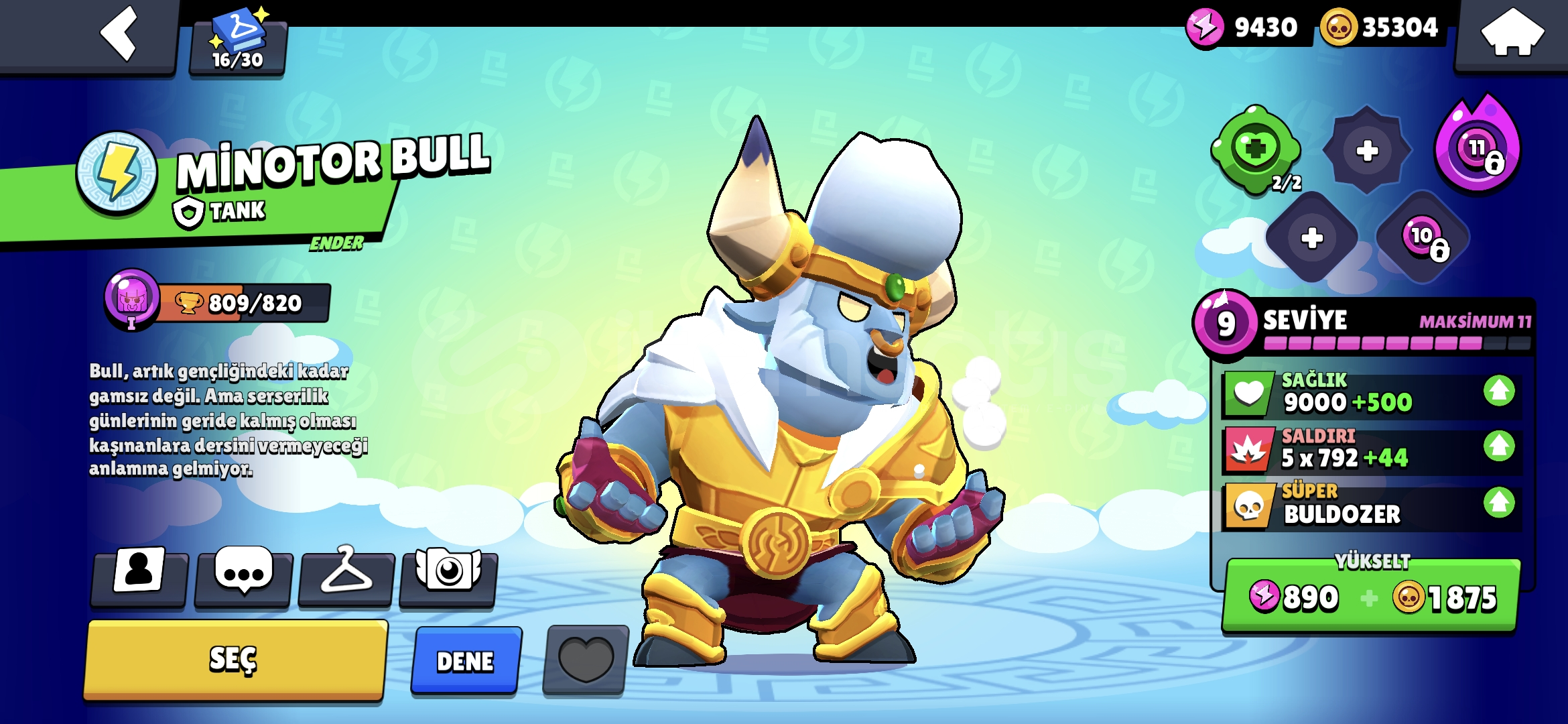 35k altin 300 Elmas 20k Mucevher 20 tane 11 seviye asamali kasilabilir pro pass ve brawl pass mevcuttur super hesap pazarlik olur.