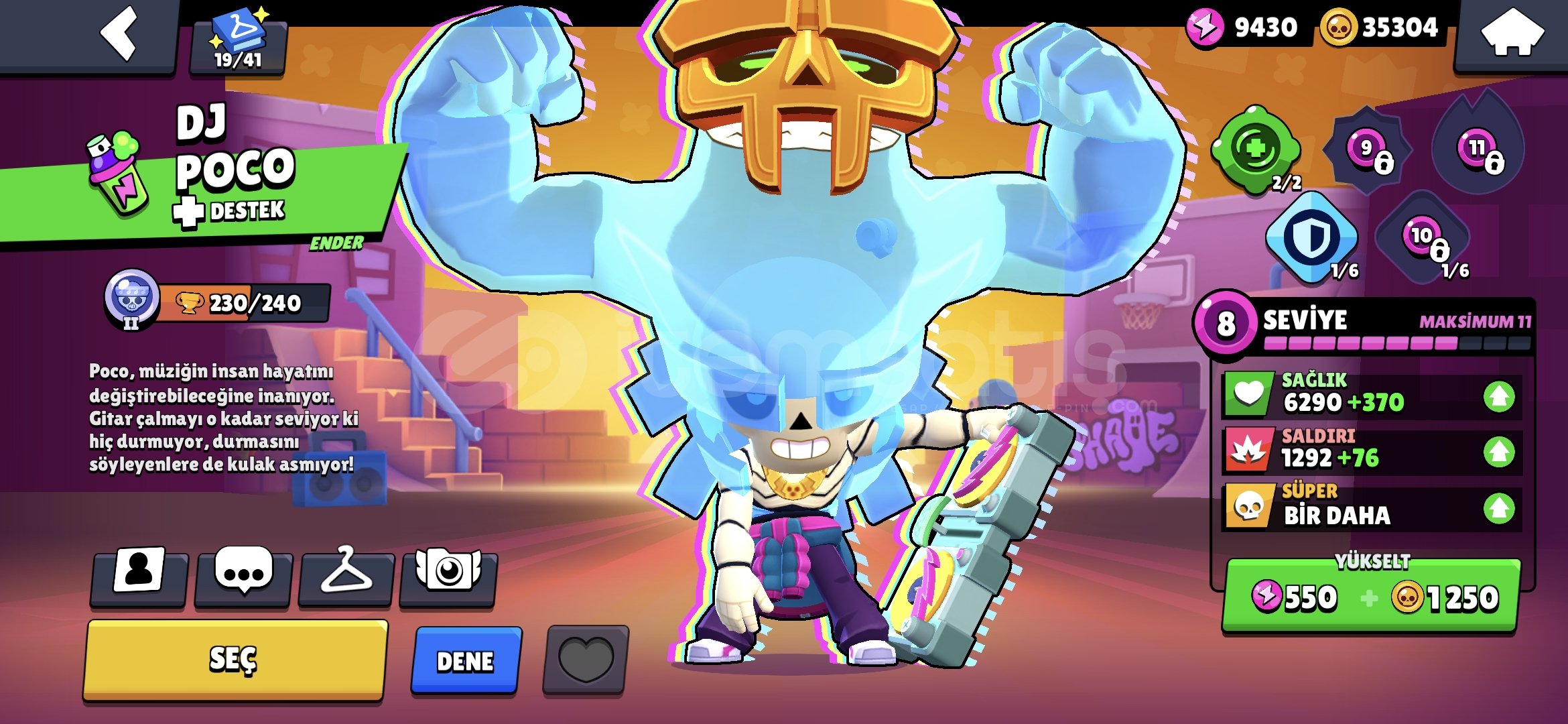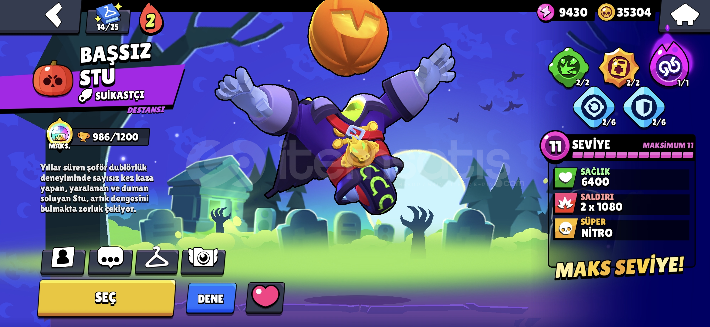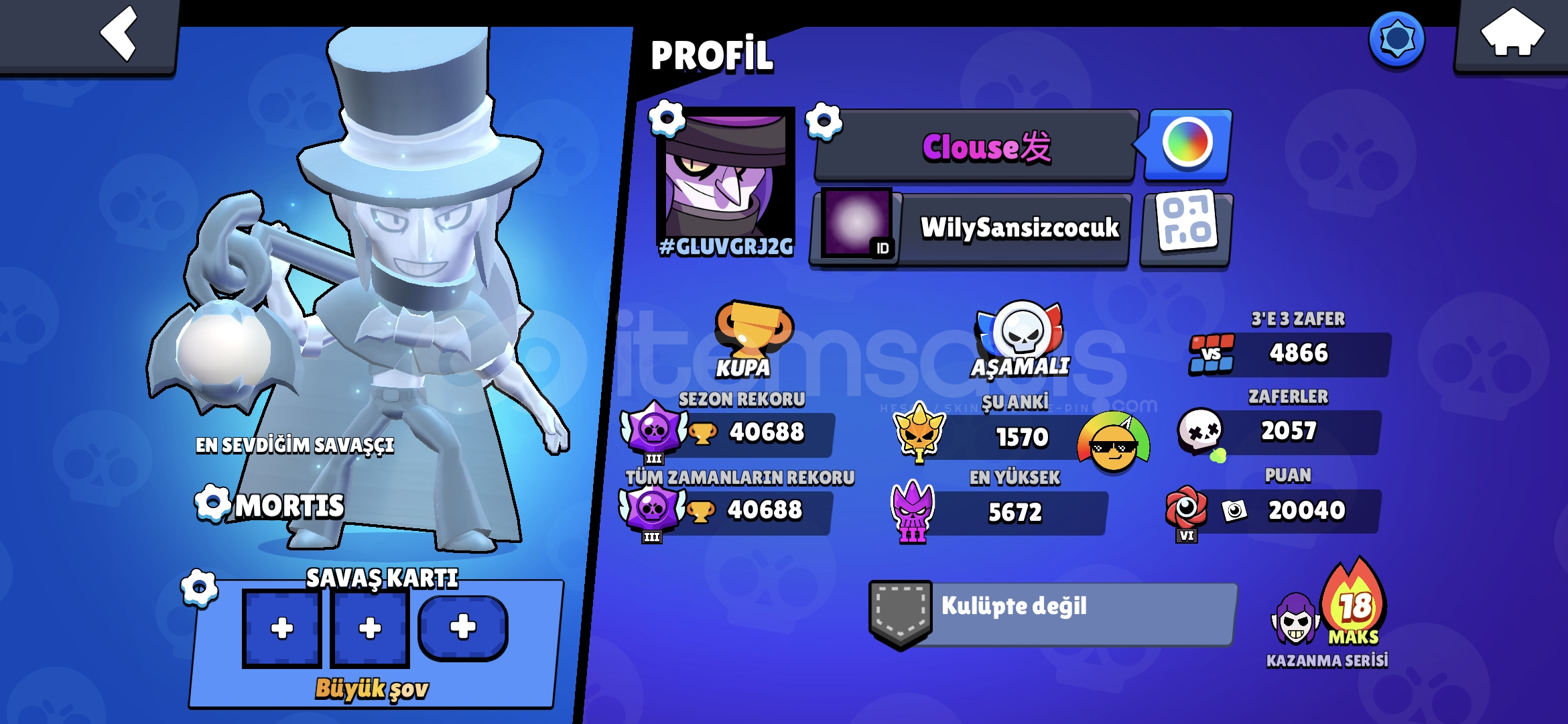 35k altin 300 Elmas 20k Mucevher 20 tane 11 seviye asamali kasilabilir pro pass ve brawl pass mevcuttur super hesap pazarlik olur.