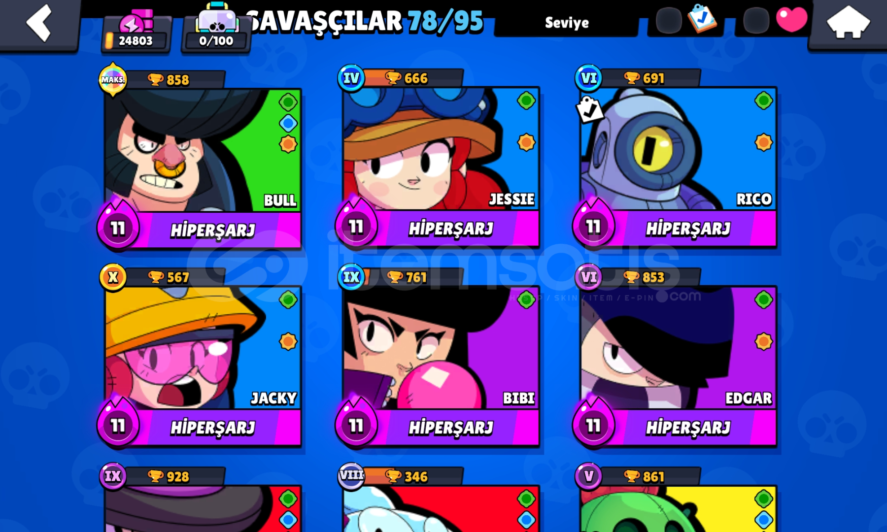 ⭐️ 24803 KUPA EFSANE BRAWL STARS HESAP ⭐️⚡️ 78 KARAKTER - 19 MAKS 15'TEN FAZLA HIPERŞARJ! ⚡️⚡️ 53 ENDER - 46 SUPER ENDER - 39 DESTANSI - 4 GIZEMLI - 1 EFSANEVI - 2 HIPERSARJ - 2 GUMUS - 1 SAF ALTIN SKINLER VARDIR!⚡️⚡️2020 - 2. SEZON HESAP ⚡️⚡️ 121 TAŞ - 1269 ALTIN - 5032 MÜCEVHER ⚡️⚡️ E-POSTA:ŞİFRE İLE TESLİM ⚡&#...