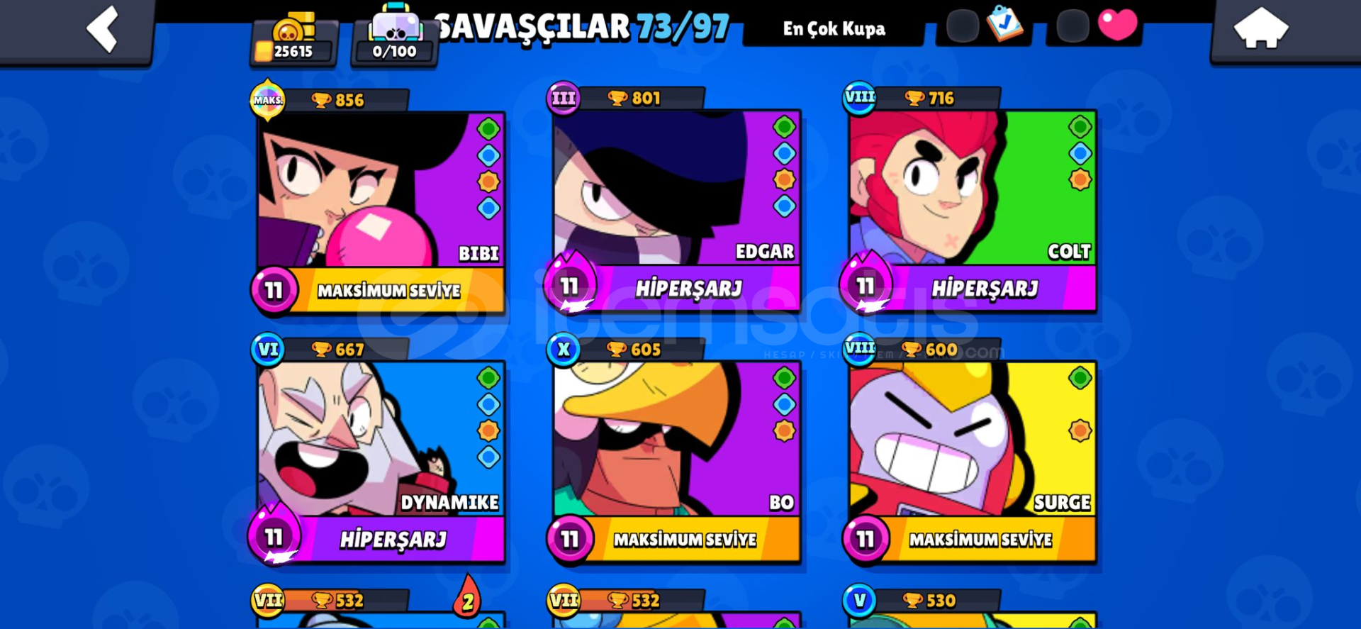 Mail Değişimi Yapılacaktır ve Hesap Tamamen Sizin Üzerinize Olacaktır.Hesaptan Çıkış Videosu Atılacaktır.Hesap 2020 Yılında Kurulmuştur.Hesapta 134 Skin Bulunmaktadır.Hesapta 73 Karakter Bulunmaktadır.Hesapta 1 Ünvan Bulunmaktadır.11 Seviye ve Hiperşarjı Bulunan Çok Fazla Karakter Vardır.4 Hiperşarj , 1 Efsanevi , 2 Gizemli Kostüm Bulunmakta.Hesap Elmas 2 Görm&uum...
