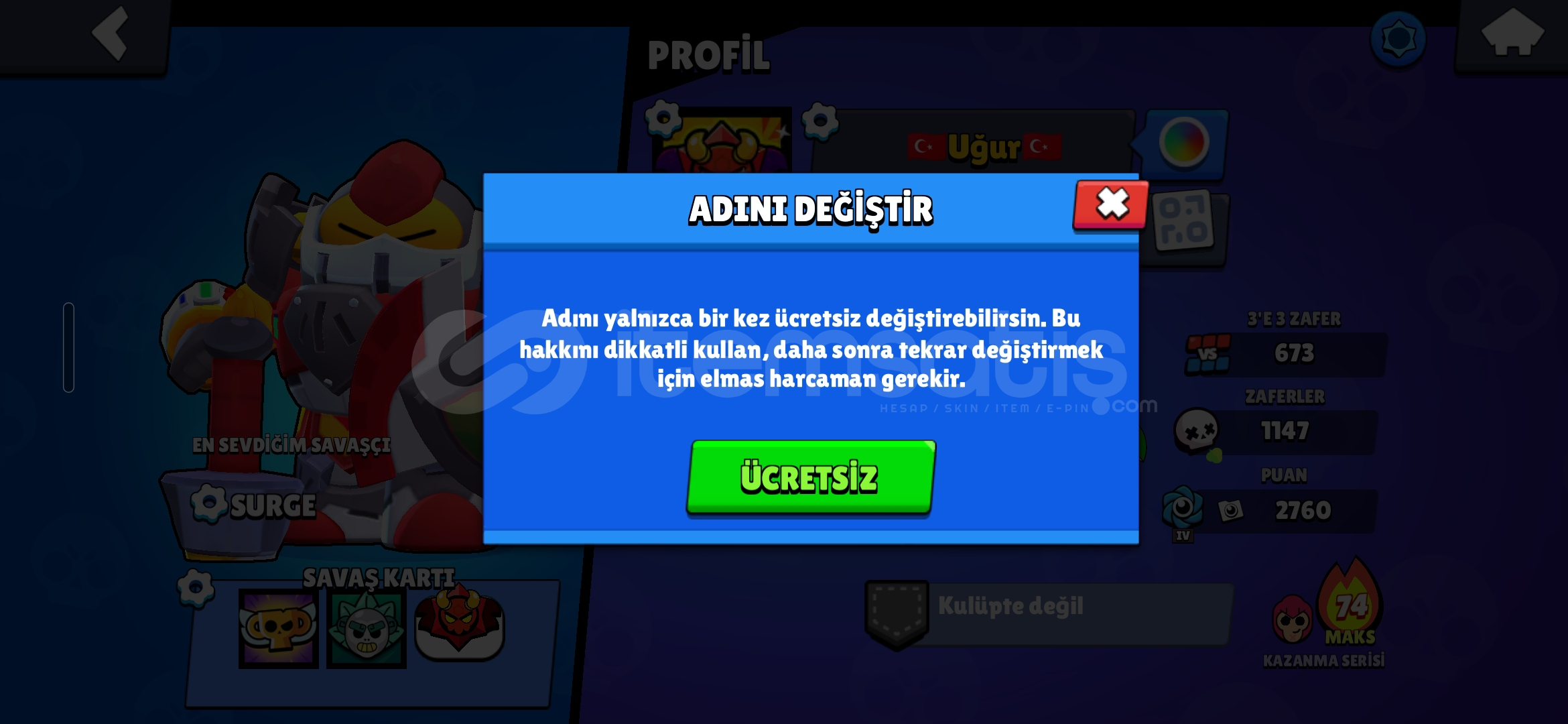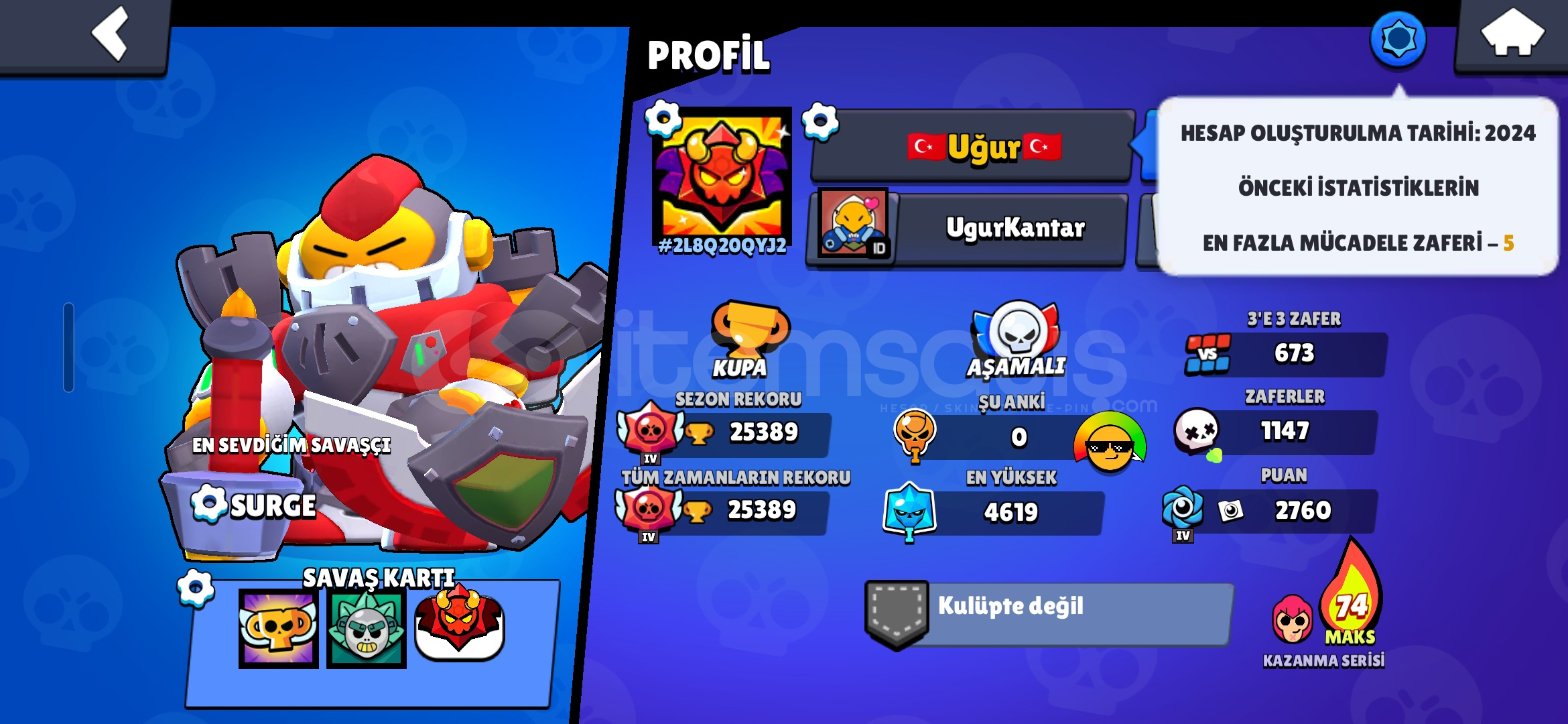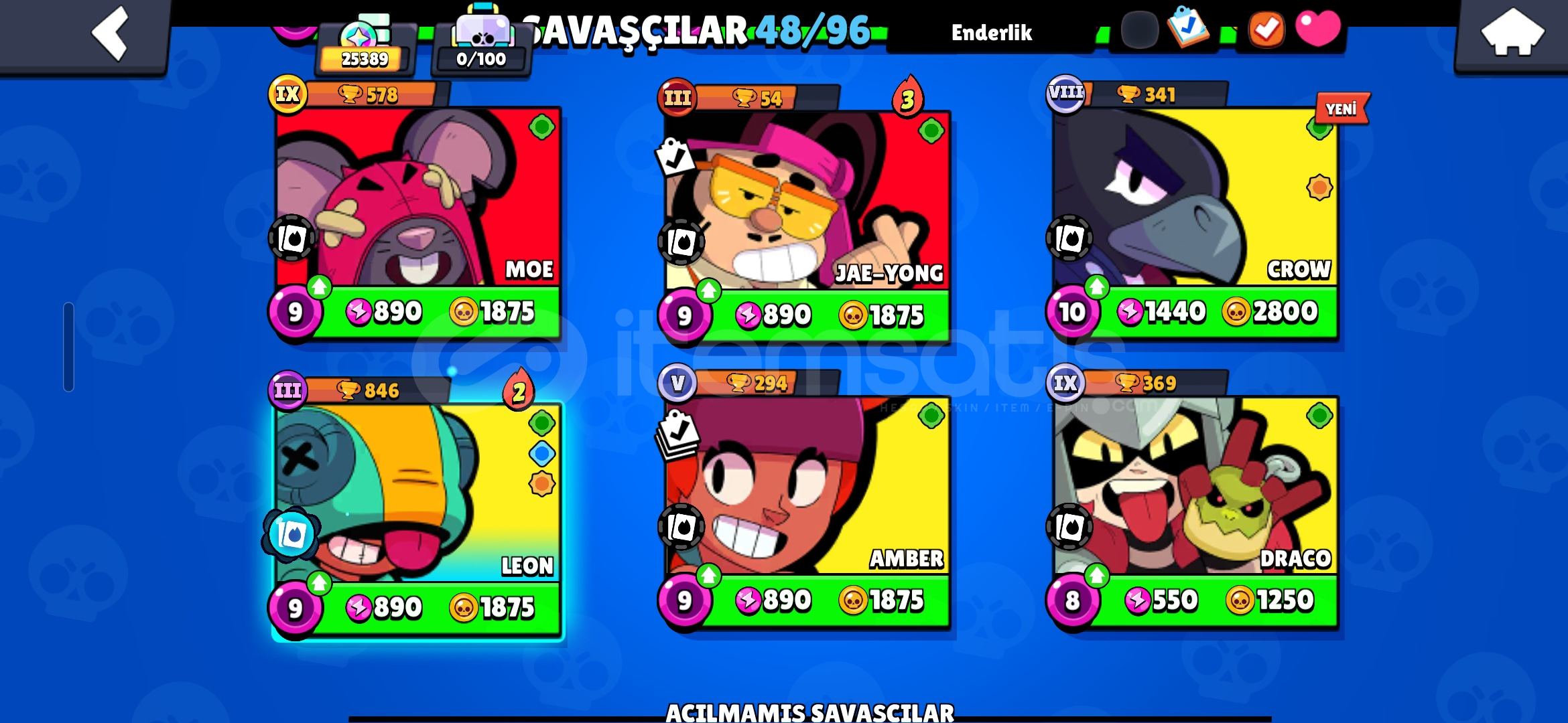 HESAP ÖZELLİKLERİ :25.389 KUPATOPLAM 48 SAVAŞÇI | 8 ENDER | 10 SÜPER ENDER | 16 DESTANSI | 8 GİZEMLİ | 5 EFSANEVİTOPLAM 71 KOSTÜM | 30 ENDER | 28 SÜPER ENDER | 8 DESTANSI | 3 GİZEMLİ | 1 EFSANEVİ | 1 HİPERŞARJ1 TANE MAKS SEVİYE SAVAŞÇI | 3 TANE 10 SEVİYE SAVAŞÇI | 18 TANE 9 SEVİYE SAVAŞÇI2024 HESABIÜCRETSİZ İSİM DEĞİŞTİRME HA...