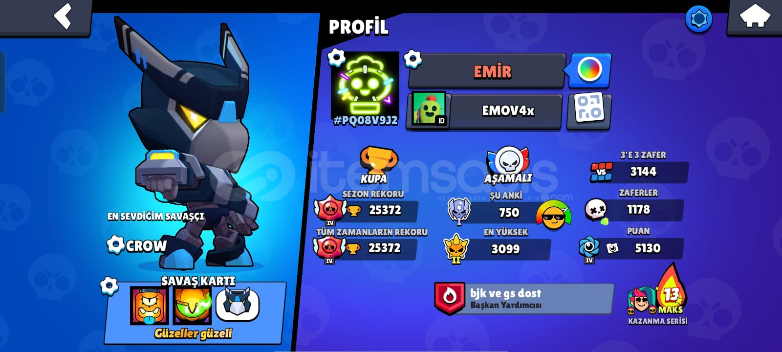 Temiz hesap 4 efsanevi 2 gizemli kostum var 25k kupa 80 karakter mail değişiyor.