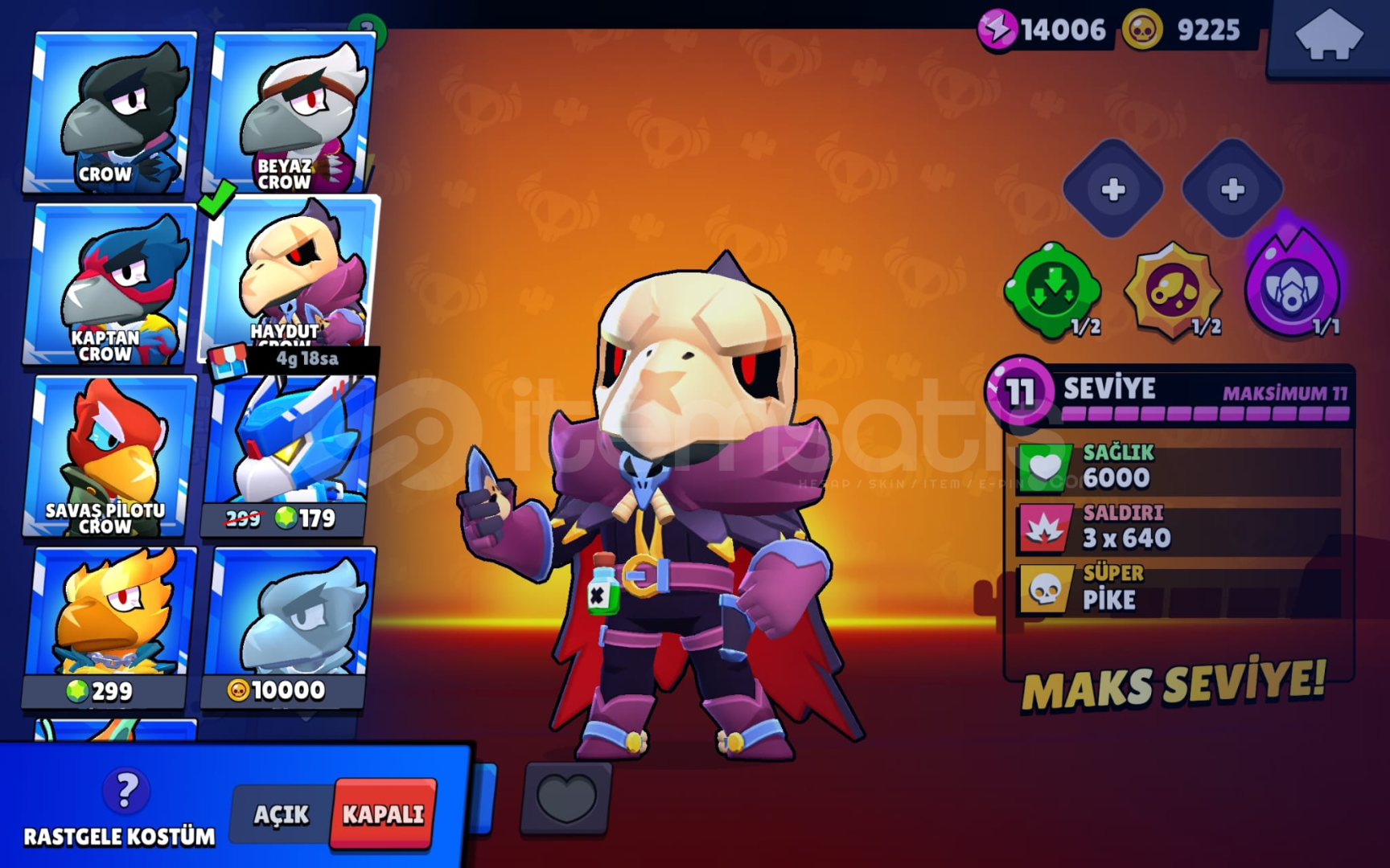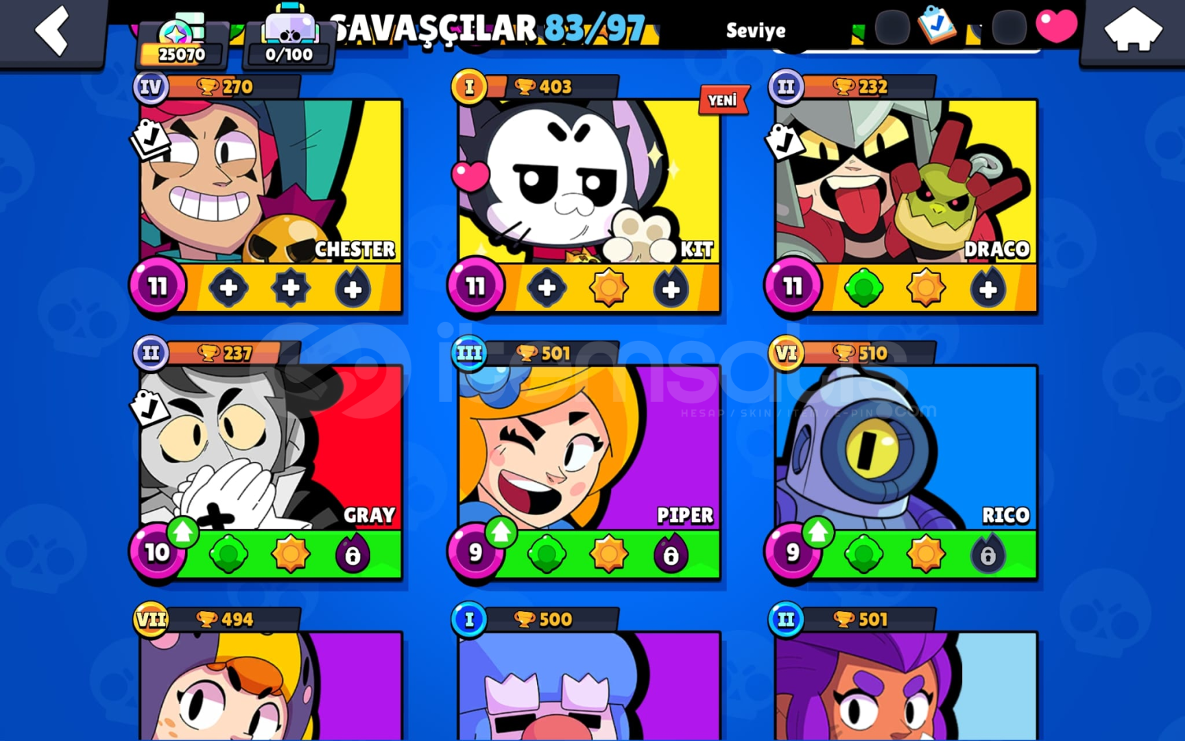 çoğu karakter superşarjlı,ve 11 seviye çoğu mail ve tel no değişicek kısa zamanda teslim edilir 9k altın 38 elmas vardır çoğu karakterin kupası oldukça yüksektir mega kasılmış hesaptır toplam 83 karakter vardır bazı karakterler fulldür karakterlerin nerdeyse hepsi skinlidir ve skinler nadir ve eskidir ciddi alıcılar yazabilir fiyatı konuşabiliriz.