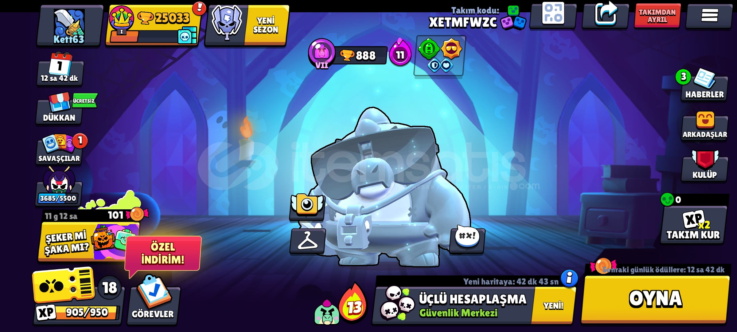 Mail İle Teslim Koruma yok 1 Ay garantili Kostümler:-49 Ender Kostüm -49 Super Ender Kostüm -19 Destansı Kostüm -2 Gizemli Kostüm -1 Efsanevi Kostüm -2 Hipersarz Kostüm -1 Saf Gümüş buzz