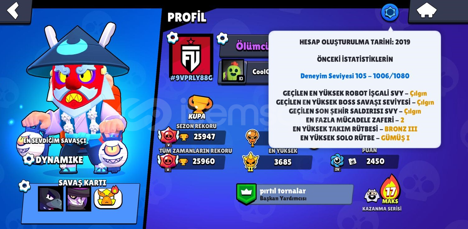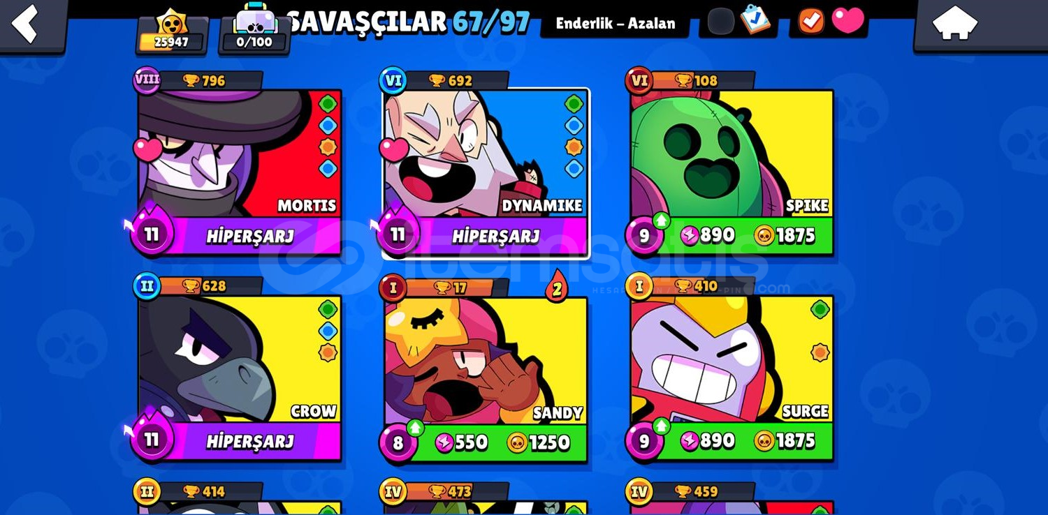 Mail Değişimi Yapılacaktır ve Hesap Tamamen Sizin Üzerinize Olacaktır.Hesaptan Çıkış Videosu Atılacaktır.Hesap 2019 Yılında Kurulmuştur.Hesapta 108 Skin Bulunmaktadır.Hesapta 67 Karakter Bulunmaktadır.Alıcısına Şimdiden Hayırlı Olsun :)